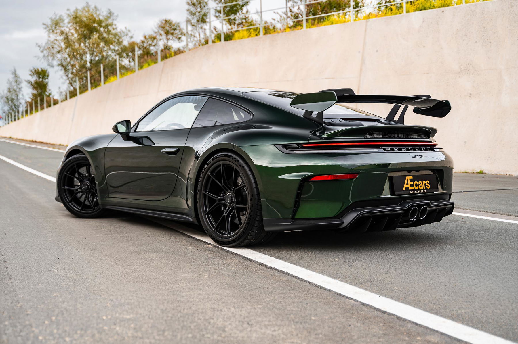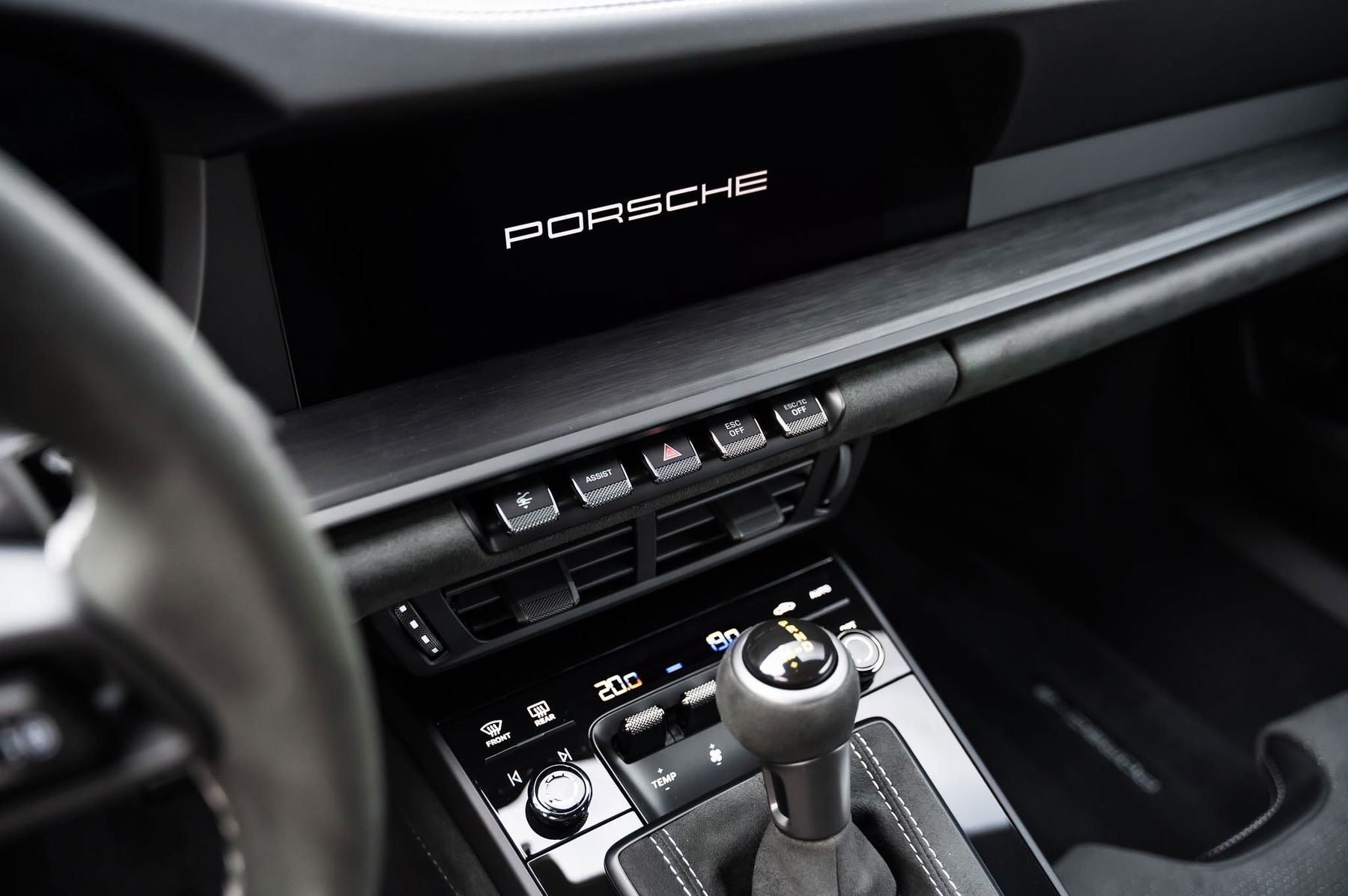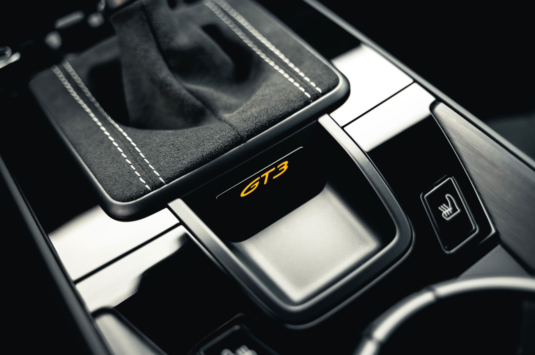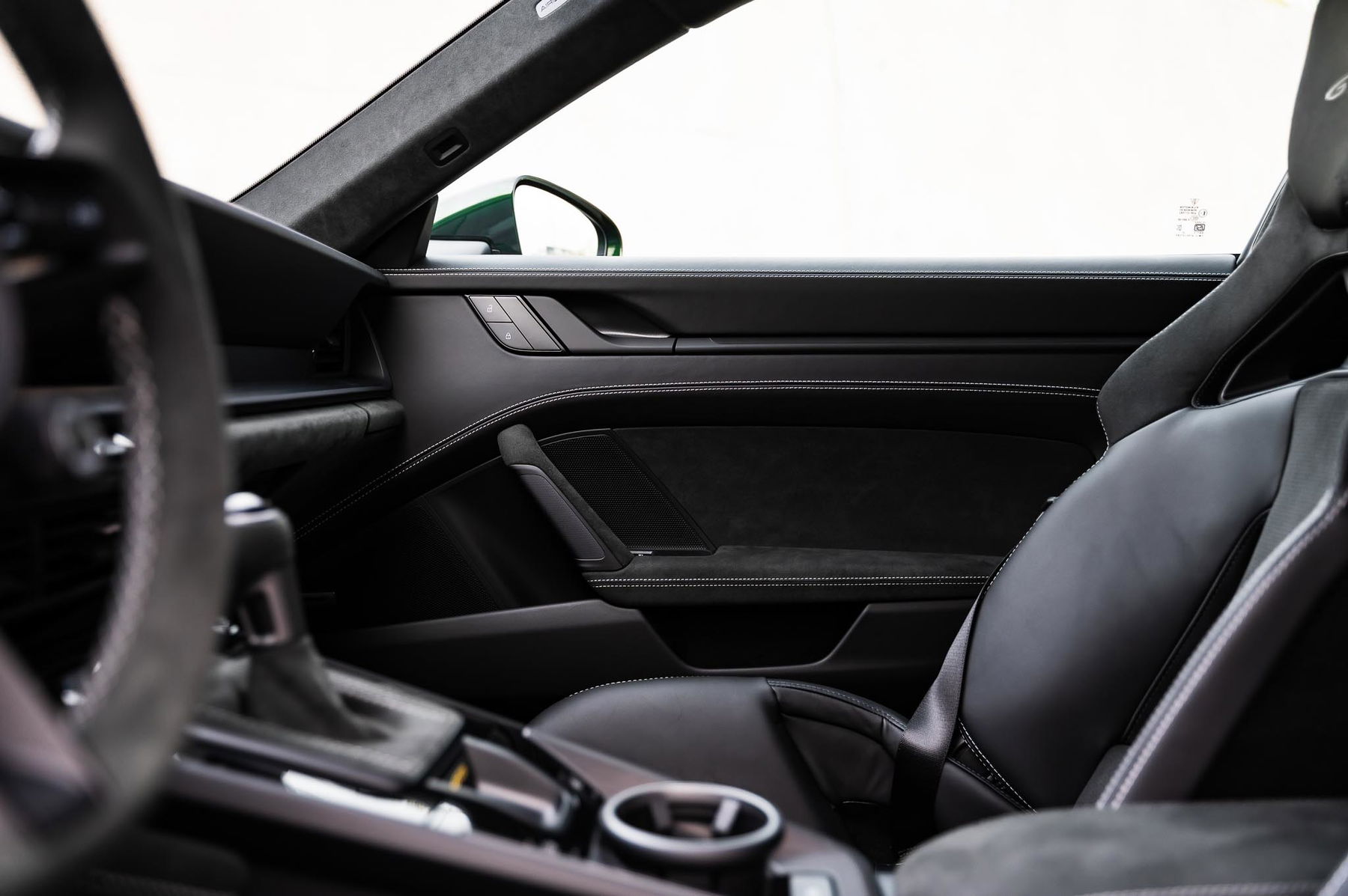 0P9 Auspuffendrohr hinten – 4UF Fahrer- und Beifahrerairbags, mit Beifahrerairbag-Deaktivierung – 6XA Außenspiegel, von außen verstellbar – 1X2 Hinterradantrieb – 9WT Mirror Link – QJ6 Aluminium-Paket – 7AK Alarmanlage, Innenraumüberwachung und Wegfahrsperre – 5TH Aluminium-Einlagen – UI2 Extern, Aux-In, USB Typ A, 2x USB-Anschluss – VL0 Fußgängerschutzmaßnahmen serienmäßig – 8K8 Zusatzbeleuchtung mit Coming-Home-Funktion – 8T1 Geschwindigkeitsregelsystem (SRS) – G1C 7-Gang-Automatikgetriebe – 6Y2 Geschwindigkeitsbegrenzer – GH3 Hinterachslenkung mit Querverriegelung (aktiv/passiv). -0N5 Hinterachslenkung – 6NN Alcantara-Dachhimmel – 8JU LED-Scheinwerfer mit variabler Lichtverteilung, getönt. – 4L6 Automatisch abblendender Rückspiegel – K8C Coupé – QK3 Mit Multifunktionskamera, mit Dashcam-Vorbereitung (nur für Porsche). -0Y1 Standard-Klimazonen – QR9 Mit Verkehrszeichenerkennung – KA2 Mit Rückfahrkamerasystem (Version 2) – 1N3 Geschwindigkeitsabhängige Servolenkung (Servotronic) – 8G5 Multipler Matrix Beam – 1XQ Sportlenkrad – 2C5 Lenksäule, axial und vertikal verstellbar – 7HC Lederausstattung 2 – FM7 GT3-Ausstattung – EM2 Ablenkungs- und Ermüdungserkennung – M1P 6-Zylinder-Boxermotor 4,0 l/375 kW FSI-Basismotor ist T6A – 7UG Navigationsgerät High – C2Q Leichtmetallräder 9J x 20 vorne, mit 12J x 21 hinten – 8VG LED-Rückleuchten – N2S Alcantara-Sitzbezüge – 4A3 Individuell einstellbare Sitzheizung für Vordersitze – 5Y2 Weiche Sitzpolster, vorne – QH1 Sprachsteuerung – 6I3 Spurhalteassistent – 8N7 Scheibenwischer-Intervallsteuerung mit Licht-/Regensensor – 4I6 Zentralverriegelung „Keyless-Go“ – QV3 Digitaler Radioempfang – 8LH Sportchrono-Paket Plus – Uhren UP3 Digitaluhr