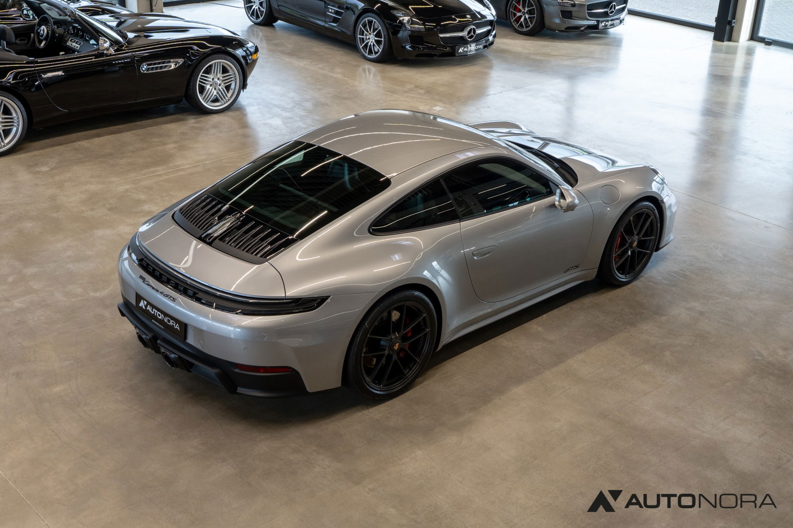 2 Ottopartikelfilter (OPF), 2-Zonen-Klimaautomatik, 20-/21-Zoll Carrera GTS Räder lackiert in Anthrazitgrau, 63 Liter Kraftstofftank, Akzent-Paket schwarz, Alarmanlage inklusive Innenraumüberwachung, Allradantrieb mit kennfeldgesteuerter Lamellenkupplung Porsche Traction Management (PTM), Aufmerksamkeitserkennung, Außenspiegel-Unterschale lackiert in Exterieurfarbe inklusive Spiegelfuß in Schwarz, Auto Start-Stop-Funktion, Bremsanlage mit Bremssätteln lackiert in Rot, Dachhimmel Race-Tex, Digitalradio, Elektrisch anklappbare Außenspiegel inklusive Spiegelumfeldbeleuchtung, Fahrlichtassistent inklusive Heimleuchtautomatik, Heckdeckelgitter mit längs angeordneten Lamellen in Schwarz (seidenglanz), Heckleuchtenband mit „Porsche“ Schriftzug, Hinterachslenkung, Innen- und Außenspiegel automatisch abblendend mit integriertem Regensensor, Intelligenter Leichtbau in Aluminium-Stahl-Verbundbauweise, ISOFIX-Befestigungssystem, Licht-Design-Paket, Matrix LED-Hauptscheinwerfer, Modellbezeichnung auf Heckteil in Schwarz (seidenglanz), Notrufsysteme eCall und bCall, ParkAssistent vorn und hinten mit optischer und akustischer Warnung, PASM Sportfahrwerk (-10 mm), Pedalerie und Fußstütze in Sportoptik, Porsche Communication Management (PCM) inklusive Online-Navigation, „Porsche“ Schriftzug lackiert in Schwarz (seidenglanz), Porsche Torque Vectoring Plus (PTV Plus), Radnabenabdeckungen mit farbigem Porsche Wappen, Reifendruckkontrollsystem (RDK), Rückfahrkamera, Seitenscheibenleisten in Schwarz, Seitlicher Dekorschriftzug „GTS“, Sitzheizung vorn, Smartphone-Ablage inklusive kabellosem Laden (bis zu 15 W), Sound Package Plus, Sportabgasanlage (Endrohrblenden in schwarz), Sport Chrono Paket inklusive Porsche Track Precision App & Reifentemperaturanzeige, SportDesign Paket, Sprachsteuerung, Spurhalteassistent, Tempostat, Türeinstiegsblenden aus gebürstetem Aluminium in Schwarz mit Modellbezeichnung, Türgriffe in Exterieurfarbe lackiert, Verkehrszeichenerkennung, Zifferblatt Drehzahlmesser schwarz, Zifferblatt Kompass/Sport Chrono Stoppuhr schwarz