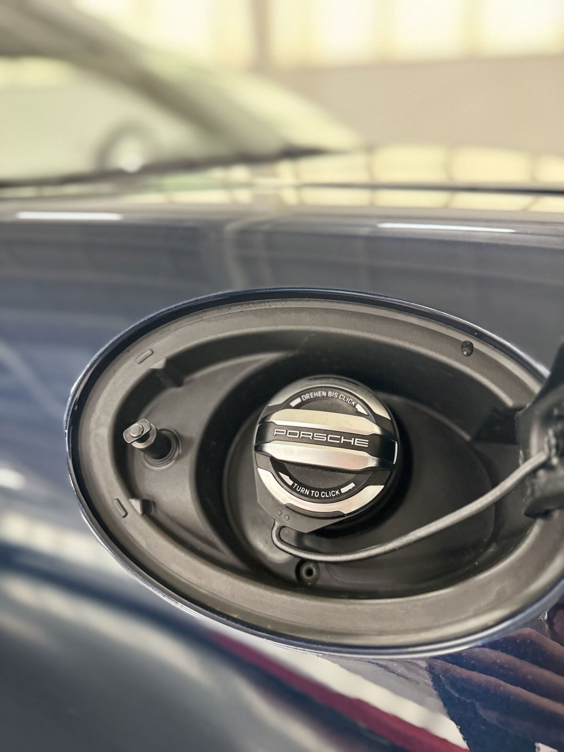 Der Erstbesitzer stattete den Wagen richtig üppig aus, mit viel Feingefühl, Fachwissen, Sachkenntnis und Erfahrung. Angefangen von den silbernen Fensterleisten und Endrohrblenden, über das edle graphitblaue Interieur, gepaart mit gelben Bremszangen (PCCB!) und ohne Privacy-Verglasung (was für ein Segen!) zieht sich die Eleganz des Wagens von außen bis innen durch.