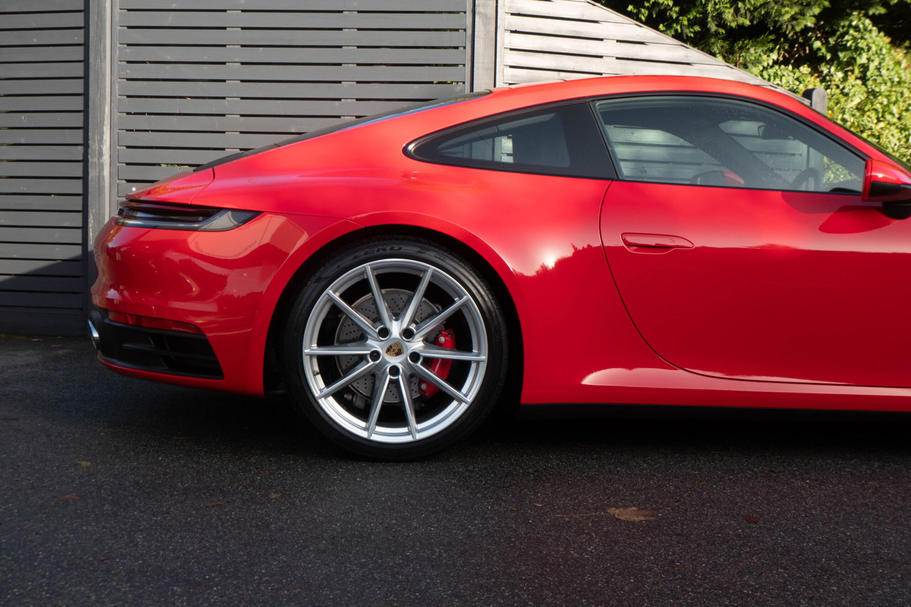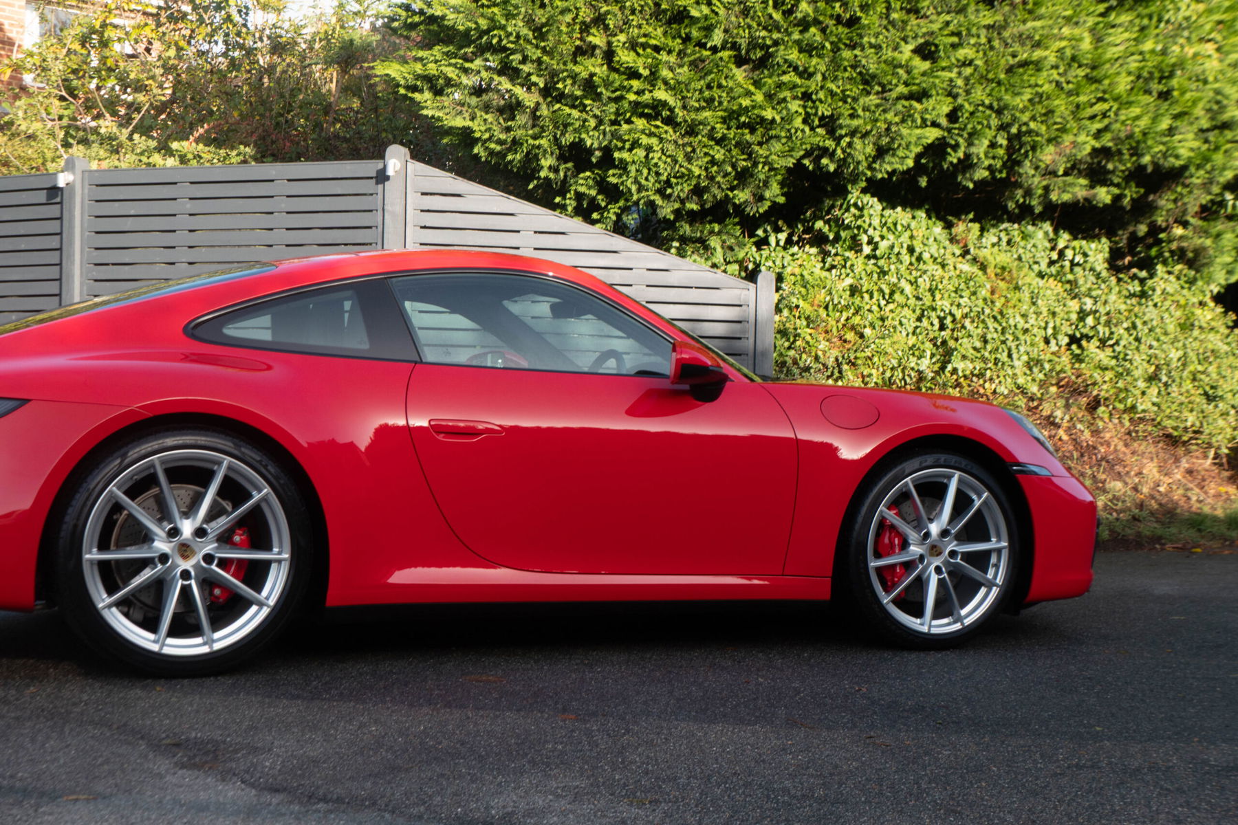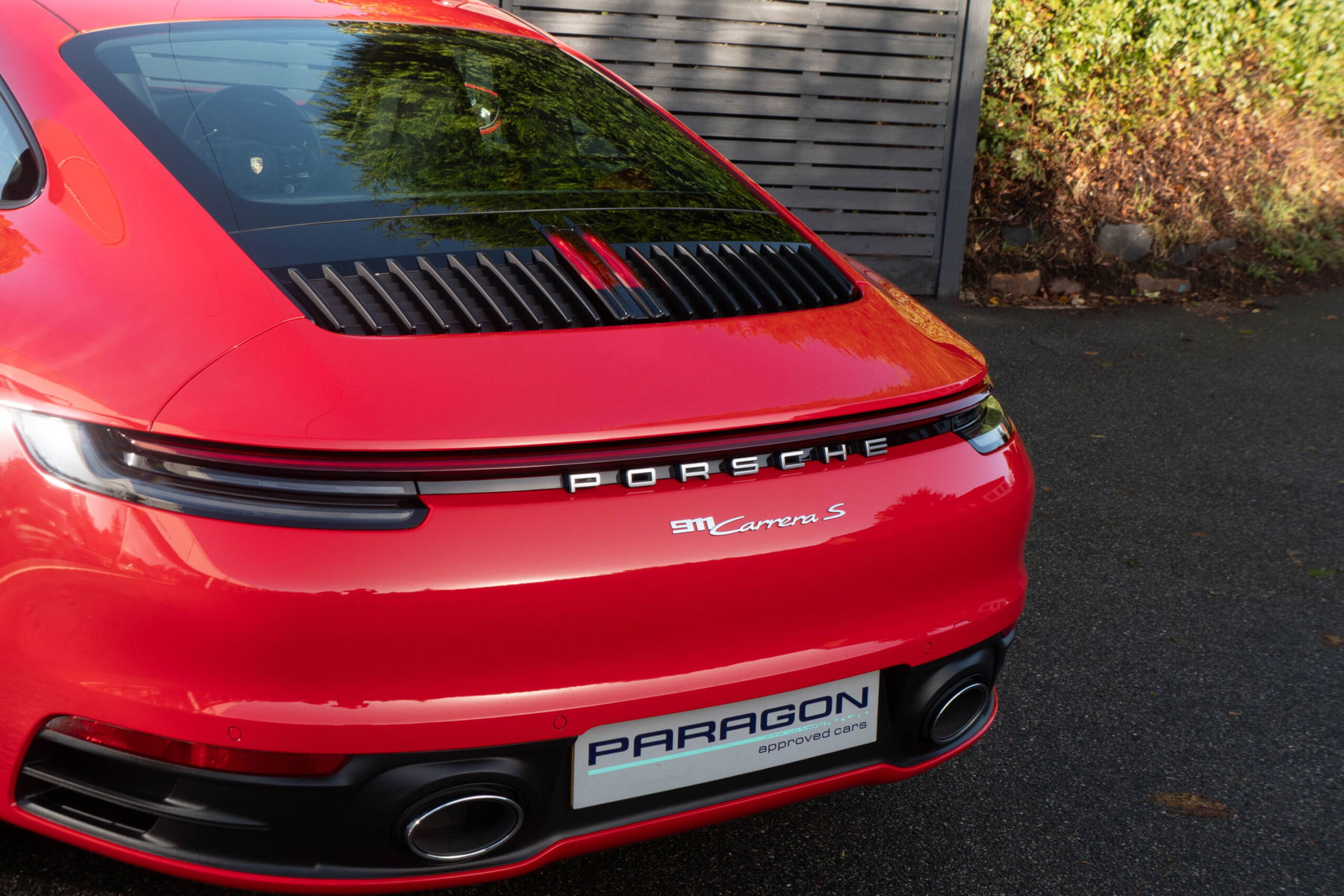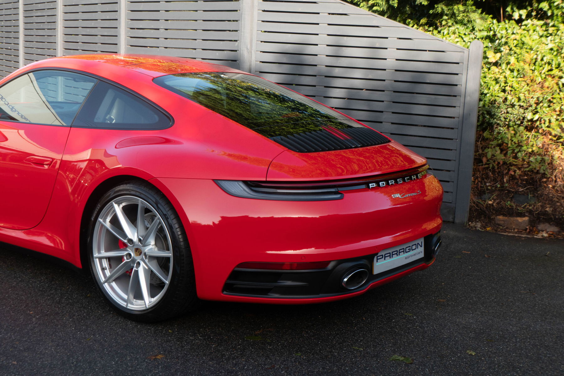 Porsche 911 Carrera 2 S Coupe (992) 8-Gang PDK, Indischrot, schwarze Ledersitze, Klimaanlage, Multifunktionslenkrad, sprachgesteuerter Computer, Porsche Active Suspension Management & Porsche Stability Management, Touchscreen-Satellitennavigation mit Apple Car Play, Bluetooth-Telefon & DAB-Radio, Bi-Xenon-Scheinwerfer, LED-Tagfahrlicht, automatisches Fahrlicht, Stopp/Start-Funktion.