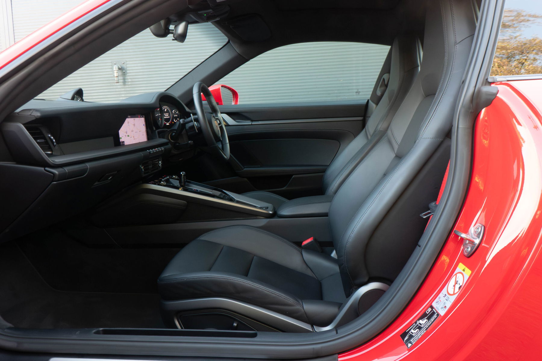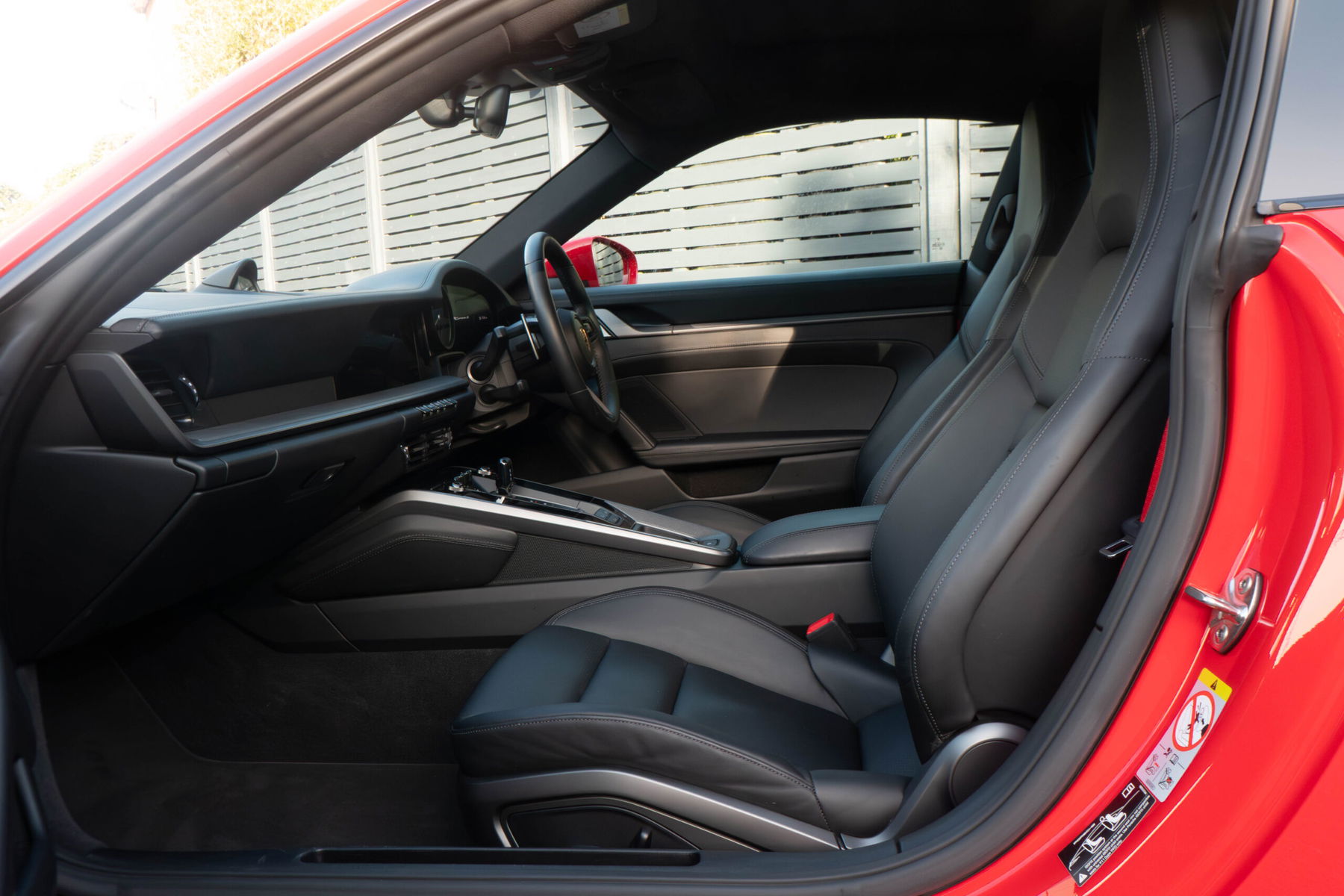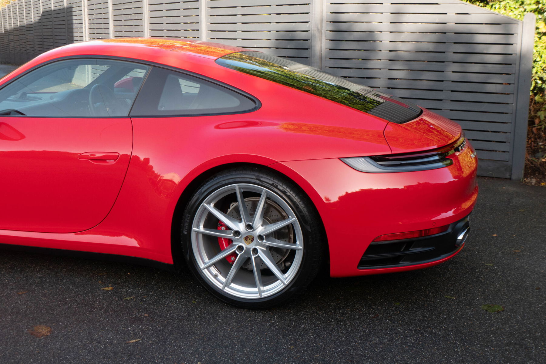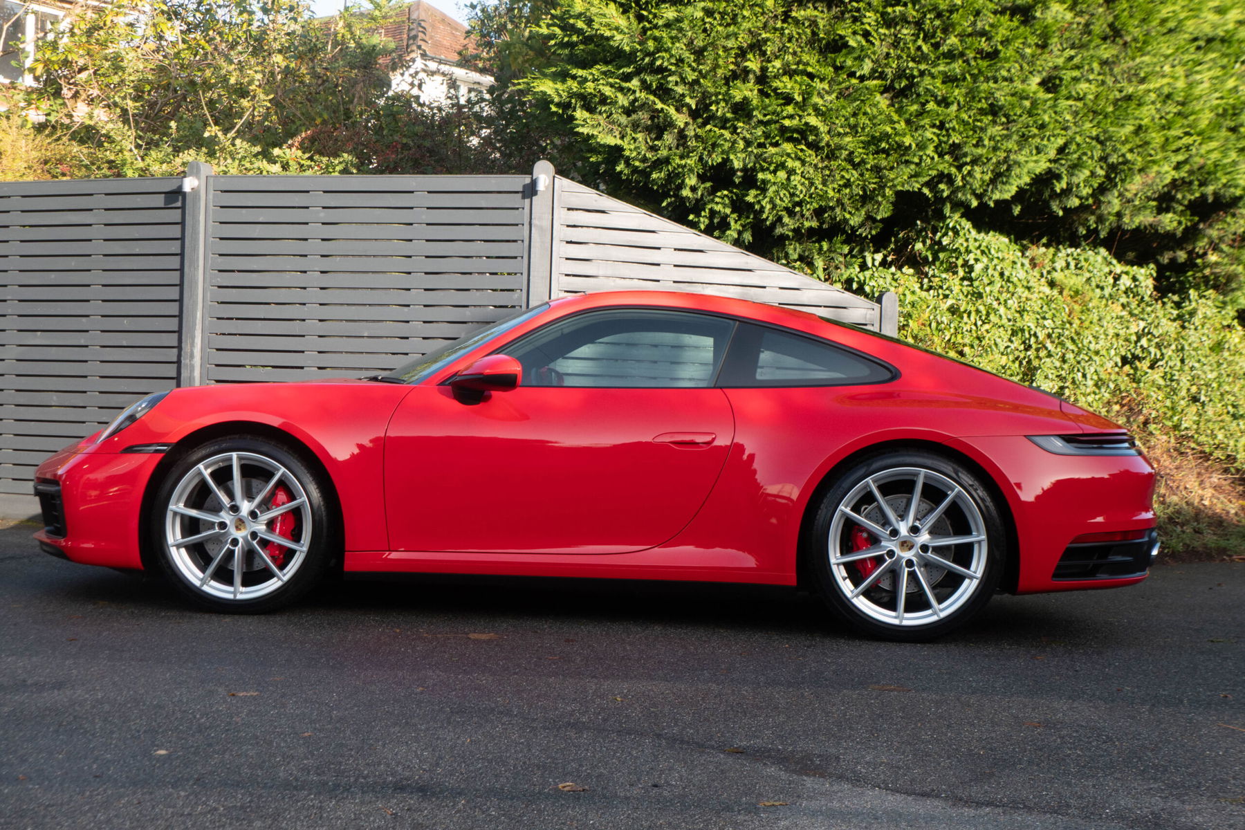 Porsche 911 Carrera 2 S Coupe (992) 8-Gang PDK, Indischrot, schwarze Ledersitze, Klimaanlage, Multifunktionslenkrad, sprachgesteuerter Computer, Porsche Active Suspension Management & Porsche Stability Management, Touchscreen-Satellitennavigation mit Apple Car Play, Bluetooth-Telefon & DAB-Radio, Bi-Xenon-Scheinwerfer, LED-Tagfahrlicht, automatisches Fahrlicht, Stopp/Start-Funktion.