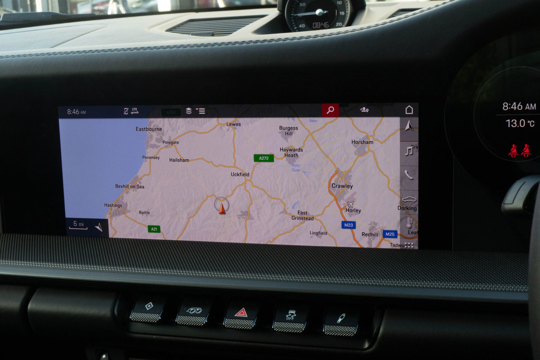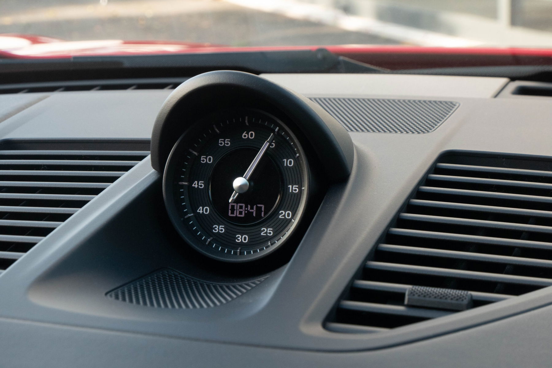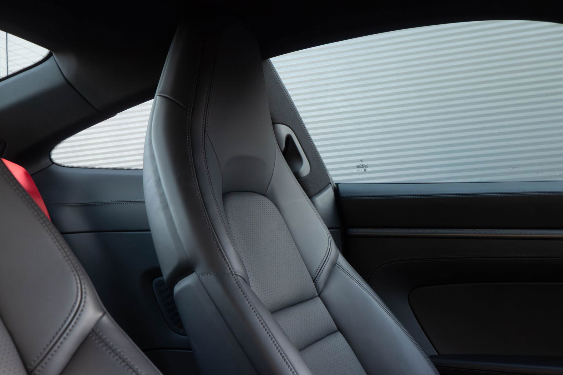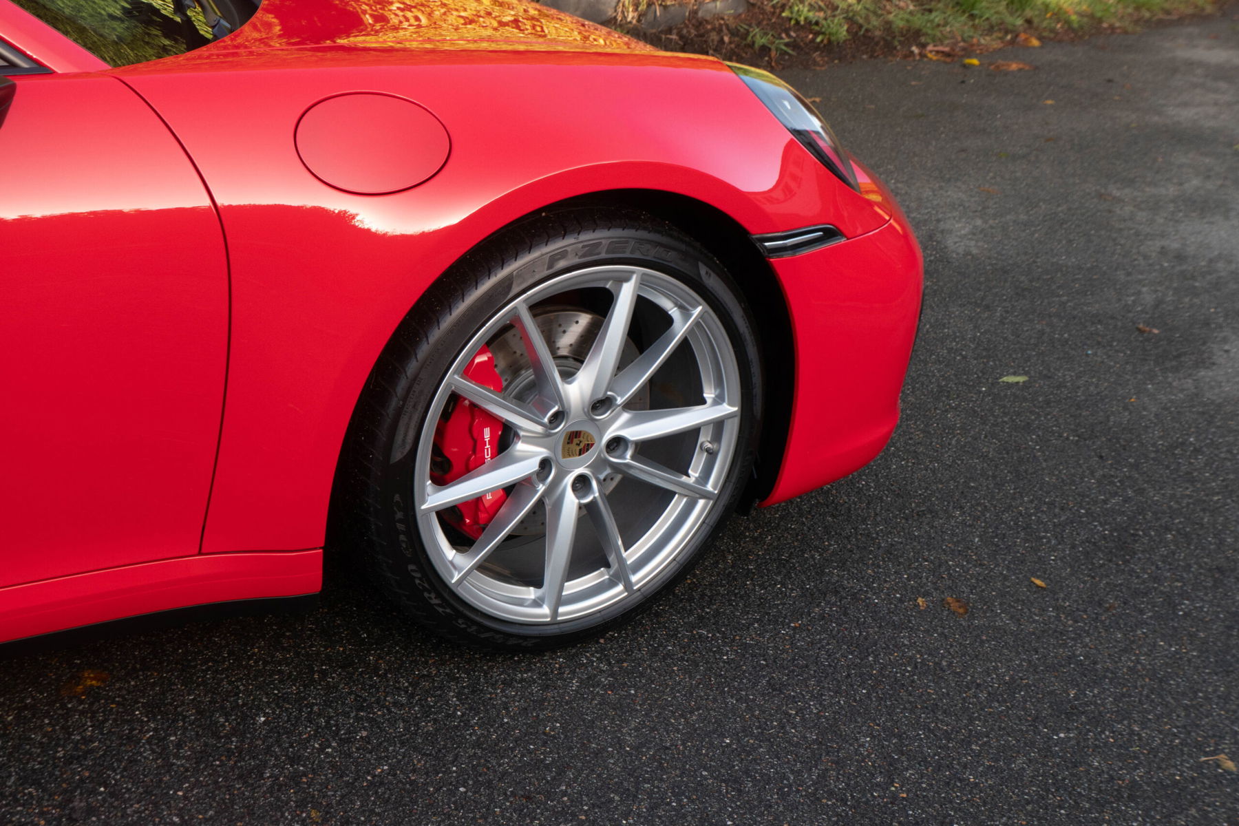 Zu den Optionen gehören: 20/21″ Carrera S Räder, zuschaltbarer Sportauspuff, Indischrote Sicherheitsgurte, elektrisches Schiebedach, Servotronic-Lenkung, Sitzheizung, Tempomat, Sport Chrono mit Sport Plus, Parksensoren vorne und hinten, 8-Gang PDK-Getriebe.