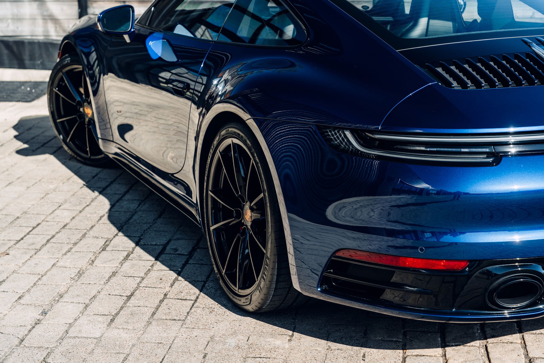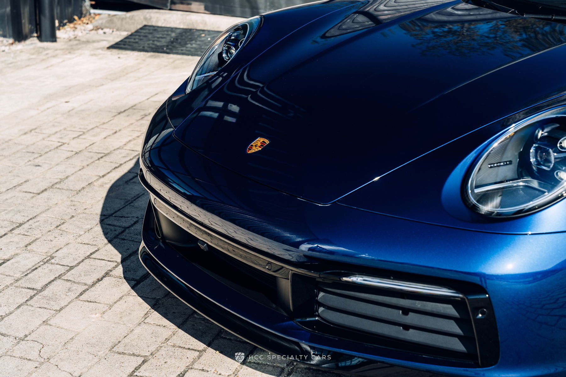 Ein Porsche 911 Carrera S aus dem Jahr 2024 in Gentian Blue Metallic mit schwarzem Leder und Kreide-Nähten, der nur einen Vorbesitzer hatte. Angetrieben von einem 3,0-Liter-Sechszylinder-Boxermotor mit Doppelturbo und 8-Gang-PDK, ist dieser 992.1 sowohl mit dem Sportpaket (Sport Chrono, Sportauspuff, PASM-Sportfahrwerk) als auch mit dem Premium-Paket (BOSE, PDLS+, belüftete Sitze, Surround View, Spurwechselassistent, Ambientebeleuchtung) ausgestattet. Weitere Highlights sind 18-fach verstellbare adaptive Sportsitze Plus, beheizbares GT-Sportlenkrad, elektrisches Glas-Schiebedach, exklusive Design-Rückleuchten und hochglänzende schwarze Außen-/Radakzente. Mit sauberem CARFAX, sauberem Texas-Titel und Werksgarantie bis 2027.