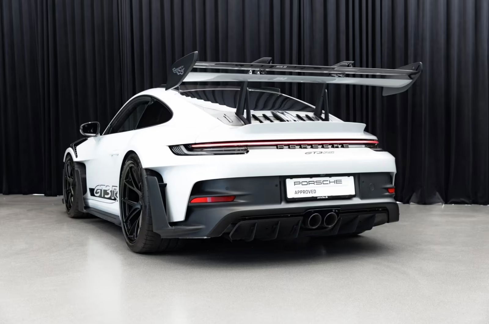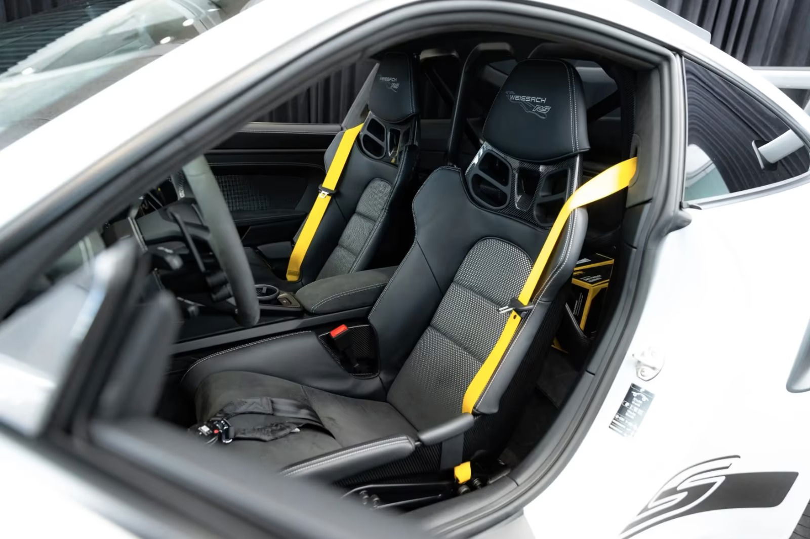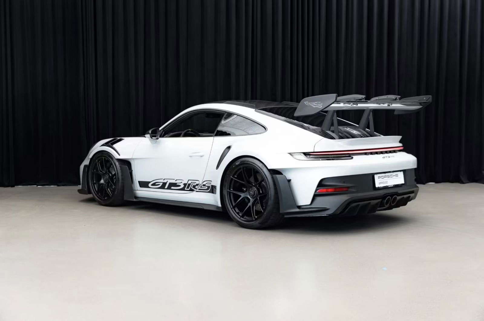 Sonderausstattung: 6-Punkt-Sicherheitsgurt Beifahrerseite, Ambiente-Beleuchtung fondorientiert, Außen-/Innenspiegel mit Abblendautomatik und Regensensor, Außenspiegel Oberschale Carbon, Blende Gurtaustritt B-Säule Race-Tex, Bremssättel schwarz (Hochglanz), Clubsport-Paket, Dach Carbon, Einstiegsblenden (Carbon) beleuchtet, Einstiegsleuchte mit LED-Projektor Porsche-Schriftzug, Fahrzeugschlüssel in Wagenfarbe lackiert inkl. Leder-Etui, Fensterdreieck Carbon, Heckleuchten Exclusiv Design, Innenausstattung: Weissach-Paket, erweitert, Innenraumlicht-Paket / Licht-Design-Paket, Kraftstofftank: 90 Ltr., Lenksäulenverkleidung Leder, Liftsystem Vorderachse, LM-Felgen (schwarz, seidenglänzend lackiert), LM-Felgen vorn/hinten: 10×20 / 13×21 (GT3 RS Magnesium Leichtbau Rad), Matrix-LED-Scheinwerfer, abgedunkelt, inkl. Porsche Dynamic Light System Plus (PDLS+), Metallic-Lackierung, Mittelkonsole, Deckel Ablagefach hinten Race-Tex mit Porschewappen, Pedalerie und Fußstütze aus Aluminium, Sicherheitsgurte farbig, Sonnenblenden Race-Tex, Sound-System BOSE, Türöffnerschlaufe in schwarz, Vehicle-Tracking-System Plus (PVTS Plus), Weissach-Paket, Ziffernblatt Drehzahlmesser, farbig, Ziffernblatt farbig, Sport Chrono Stoppuhr
