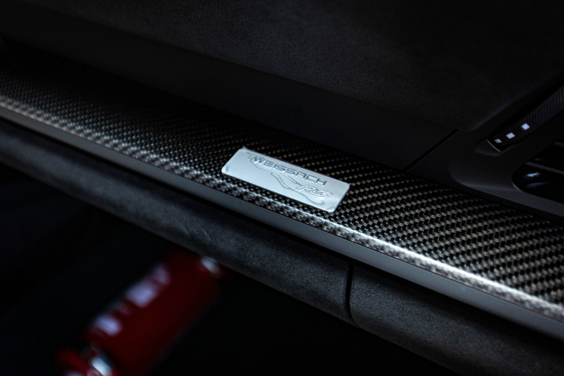 - Türschwellen aus Carbon mit hinterleuchtetem Manthey-Logo