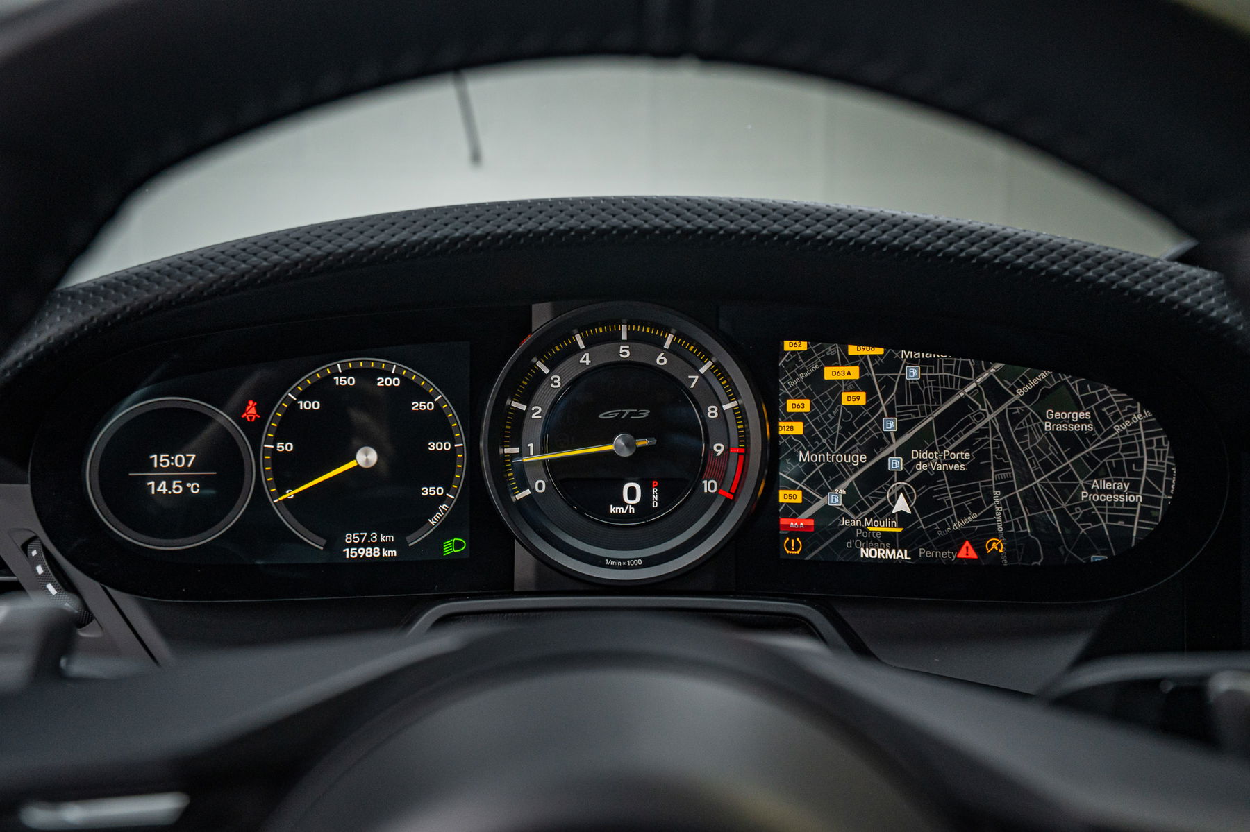 Dieser GT3 Touring ist ein Fahrzeug mit Zweitbesitz und hat 16.500 km auf dem Tacho. Das Auto präsentiert sich in neuwertigem Zustand und ist vollständig in seiner Originalfarbe lackiert. Die erste Inspektion wurde am 7. Januar 2025 vom Porsche Zentrum Levallois durchgeführt. Selbstverständlich verfügen wir über die detaillierte Rechnung, das Serviceheft und den Ersatzschlüsselsatz.