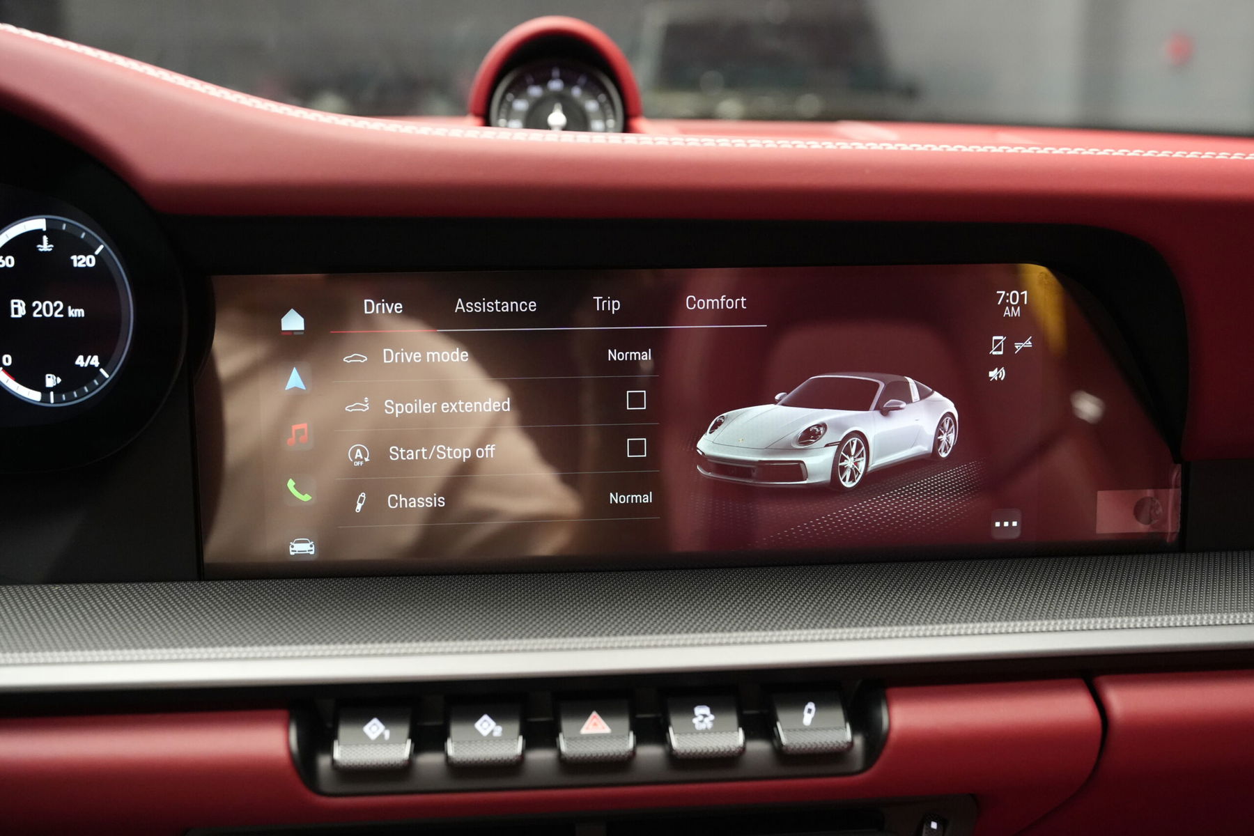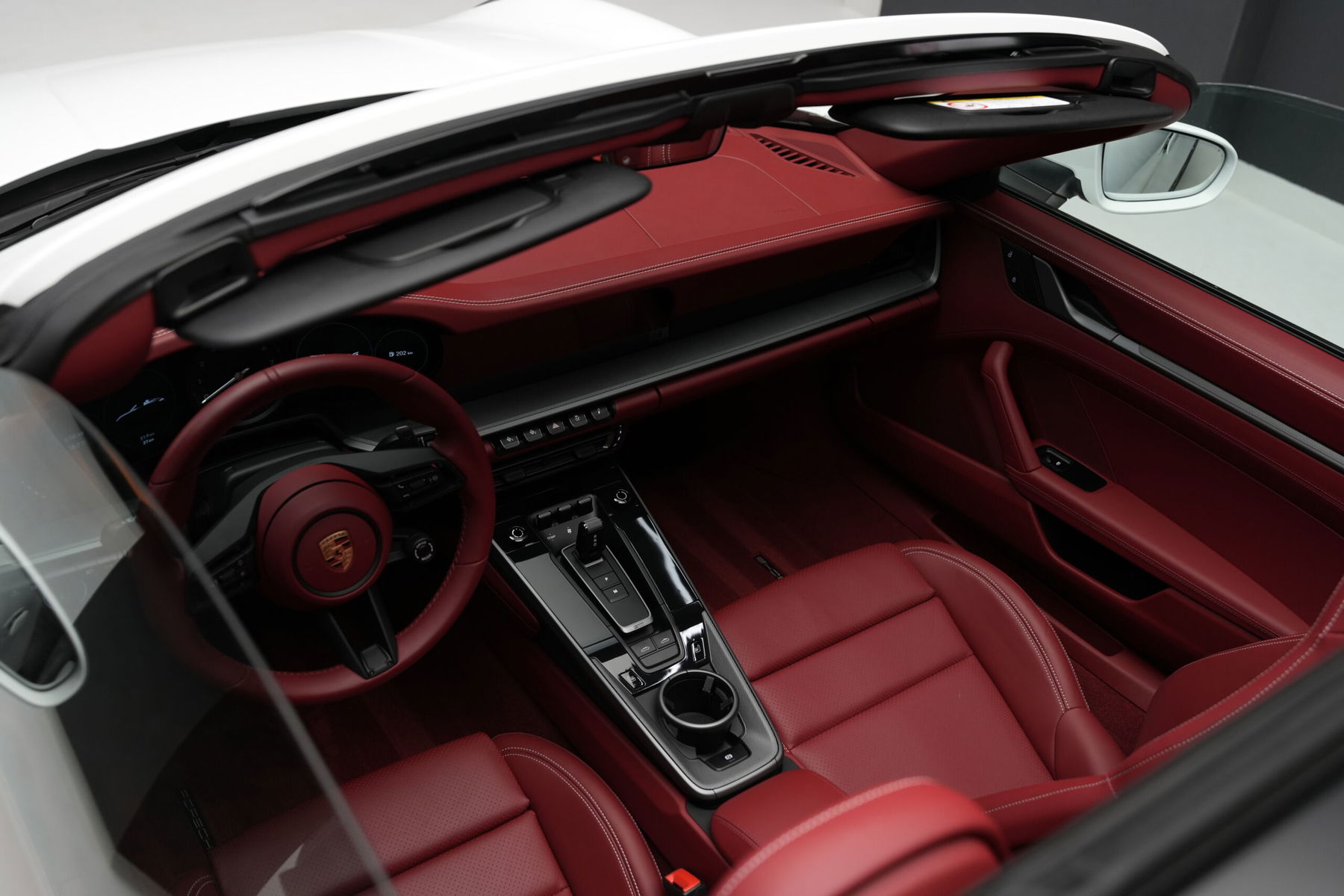 Porsche 911 Targa 4 (992) Baujahr 2022 mit nur 31 km. Gut gepflegt mit geringer Laufleistung, Innenausstattung in Bordeauxrot, Sport Chrono und rotem Verdeck!