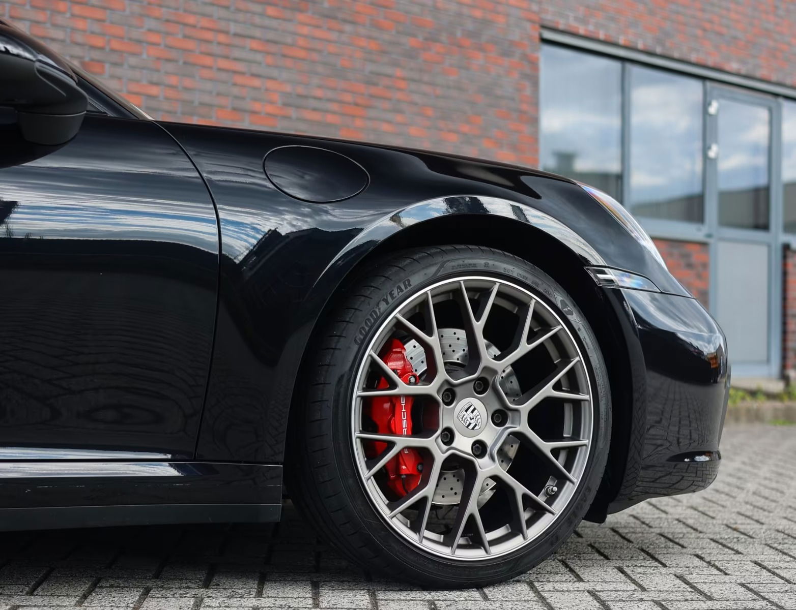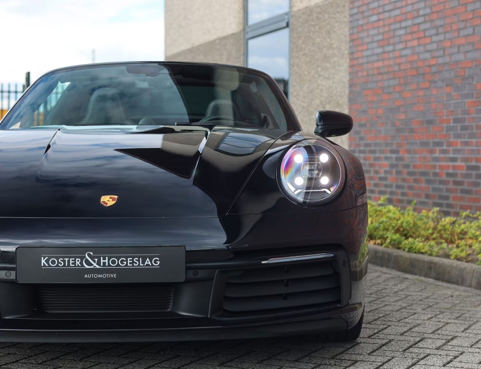 Dieser Targa 4S ist außerdem mit dem Sport Chrono Paket, roten Bremssätteln, einer Sportauspuffanlage mit schwarzen Endrohren und zahlreichen Fahrerassistenzsystemen wie Totwinkelassistent, Parkkameras und Kollisionswarnung mit Bremsintervention ausgestattet. Auch die Praktikabilität kommt nicht zu kurz, mit schlüssellosem Zugang, Berganfahrhilfe, beheizbarer Heckscheibe und getönten Scheiben. Insgesamt ist dieses Exemplar eines der komplettesten und stilvollsten Modelle der 992-Generation. Ein fahrerorientiertes Auto, das nicht nur durch seine Leistung, sondern auch durch seine seltene und elegante Präsenz beeindruckt.