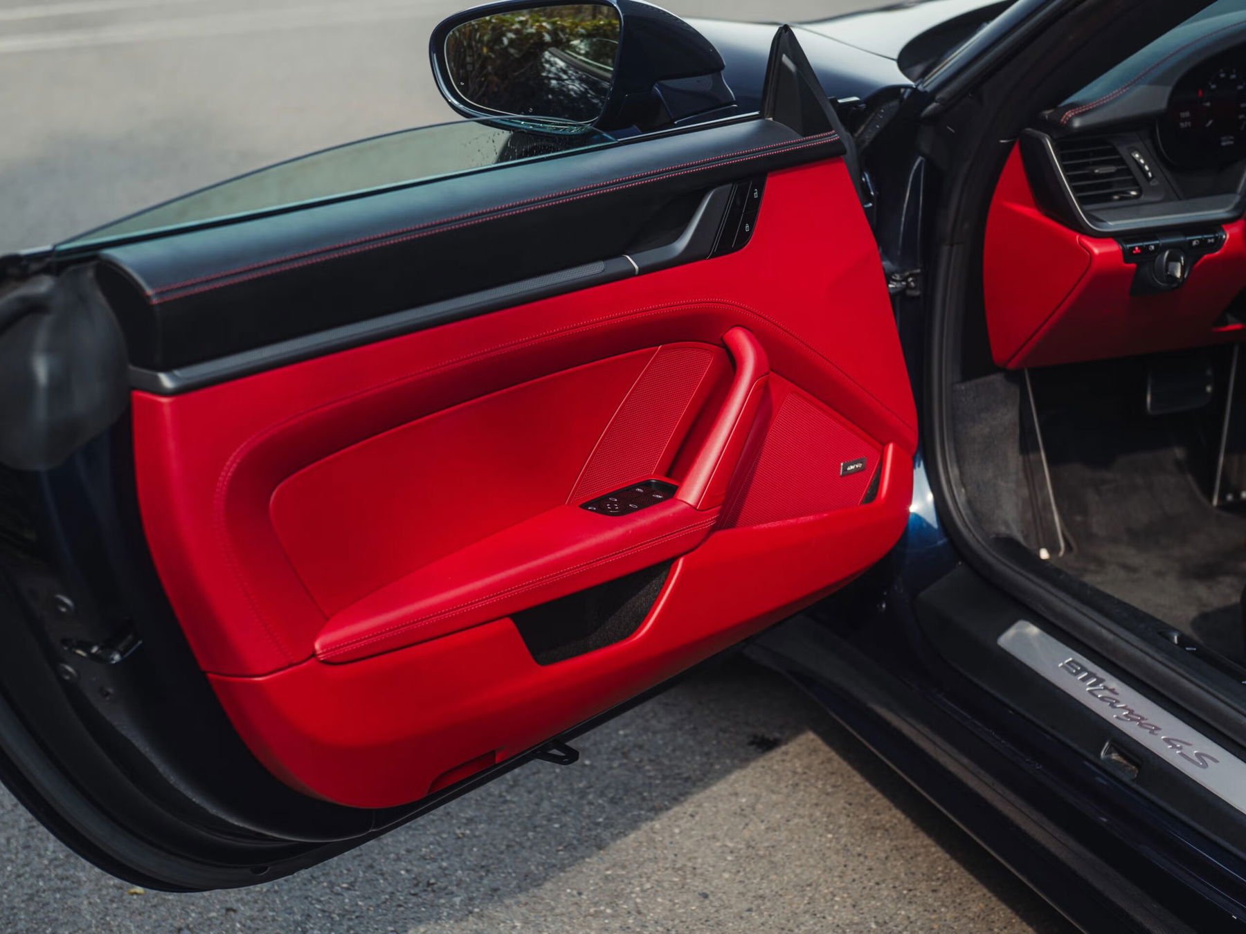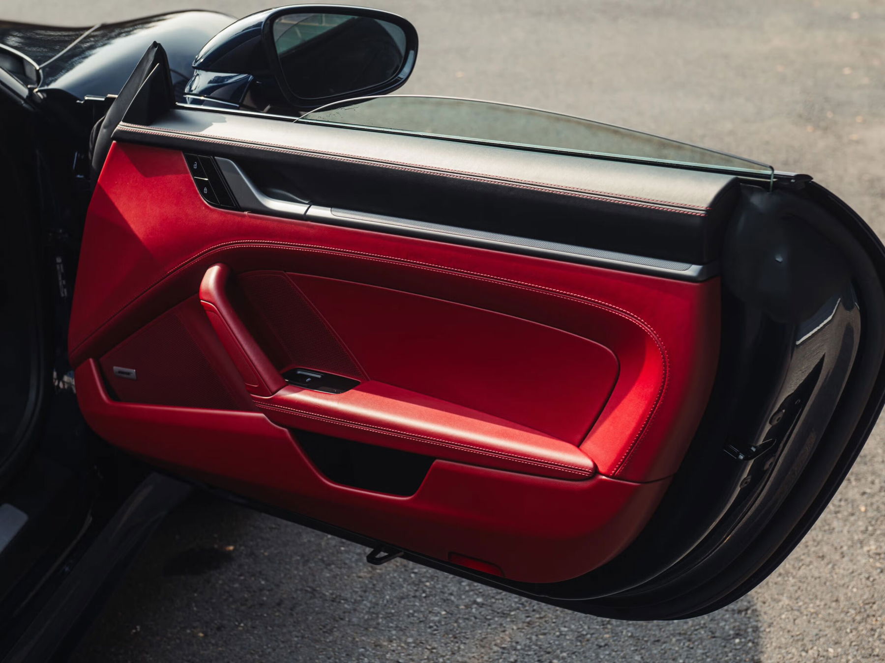 Außenfarbe: Midnight Blue Metallic – Innenfarbe: Volllederausstattung, zweifarbig Schwarz/Bordeauxrot – Farbe der Motorhaube: Rote Motorhaube – Kilometerstand: 18.900 km – Erstzulassung: 02/2021 – Vorbesitzer: 1 Vorbesitzer