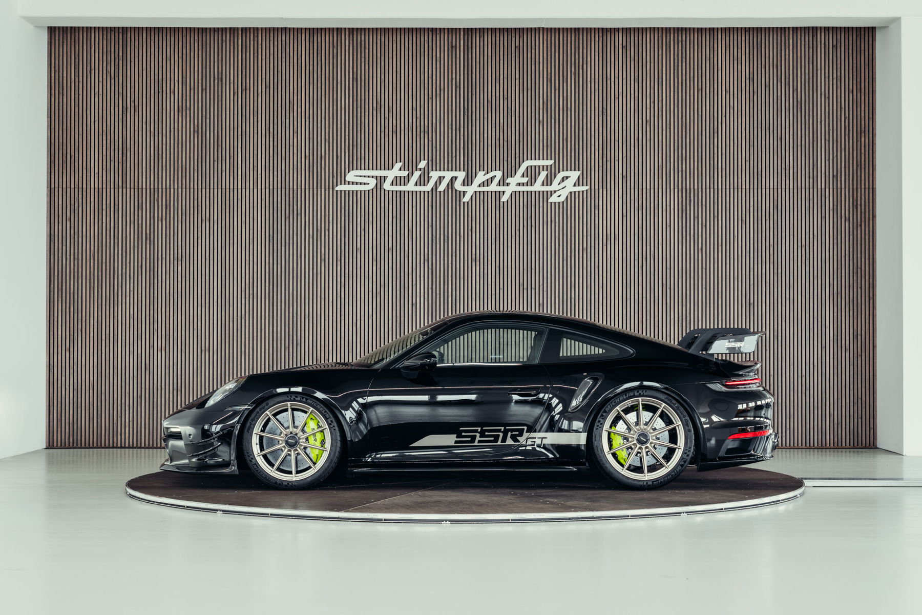 Das Fahrzeug wurde hochwertig auf SSR-Spezifikation (Sport Street Racing) umgebaut. Der Umbau folgt der Philosophie des SSR GT, der die Perfektion des Porsche 911 in sich vereint. Auf Basis des 992 Turbo entstand so ein Fahrzeug, das in puncto Performance, Fahrdynamik und Individualisierung neue Maßstäbe setzt. Der Fokus liegt auf einer präzise abgestimmten Fahrbarkeit – sowohl auf der Straße als auch auf der Rennstrecke – unterstützt durch optimierte Aerodynamik, gesteigerte Motorleistung und ein verfeinertes Fahrwerk. Durch gezielte technische Modifikationen, wie überarbeitete Turbolader, verbesserte Ansaugung und Ladeluftkühlung, eine leistungsorientierte Abgasanlage, sowie angepasste Motor- und Getriebesoftware, erreicht der SSR GT beeindruckende 860 PS und 950 Nm Drehmoment.