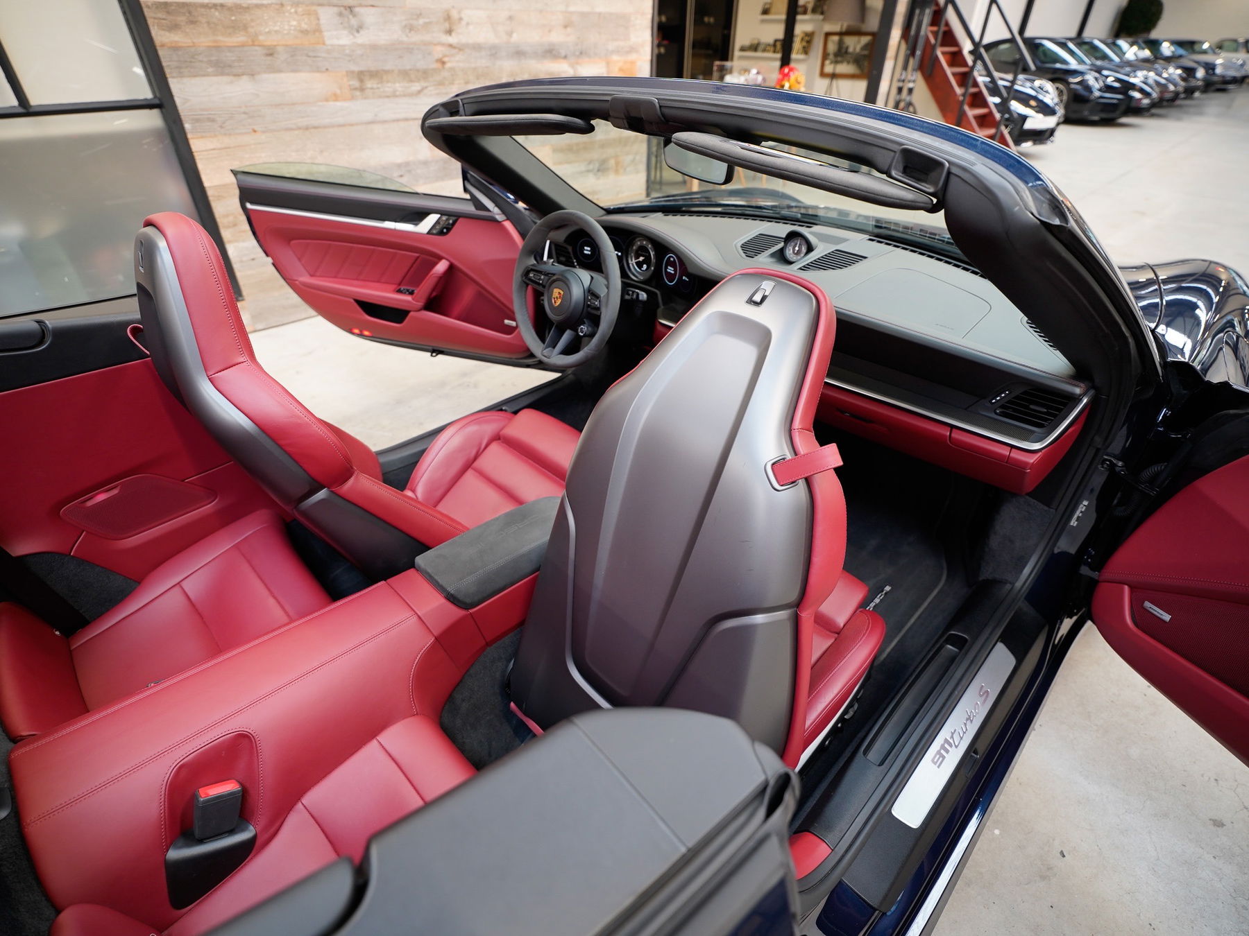 Carrera Sport Classics präsentiert stolz dieses atemberaubende Porsche 911 Turbo S Cabriolet (992), ein in Belgien ausgeliefertes Fahrzeug aus Erstbesitz, lackiert in Nachtblau Metallic mit einer zweifarbigen Innenausstattung aus Leder in Bordeauxrot und Schwarz.