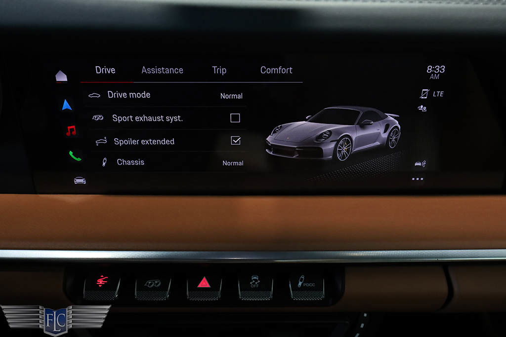 Unter der Motorhaube wird der Turbo S von einem 3,8-Liter-Sechszylinder-Motor mit Doppelturboaufladung angetrieben, der beeindruckende 640 PS und ein Drehmoment von 590 lb-ft erzeugt. Dieser Motor ist mit einem Achtgang-Doppelkupplungsgetriebe gekoppelt, das sanfte und präzise Gangwechsel ermöglicht. Das Auto beschleunigt in nur 2,7 Sekunden von 0 auf 60 und erreicht eine Höchstgeschwindigkeit von 205 mph.