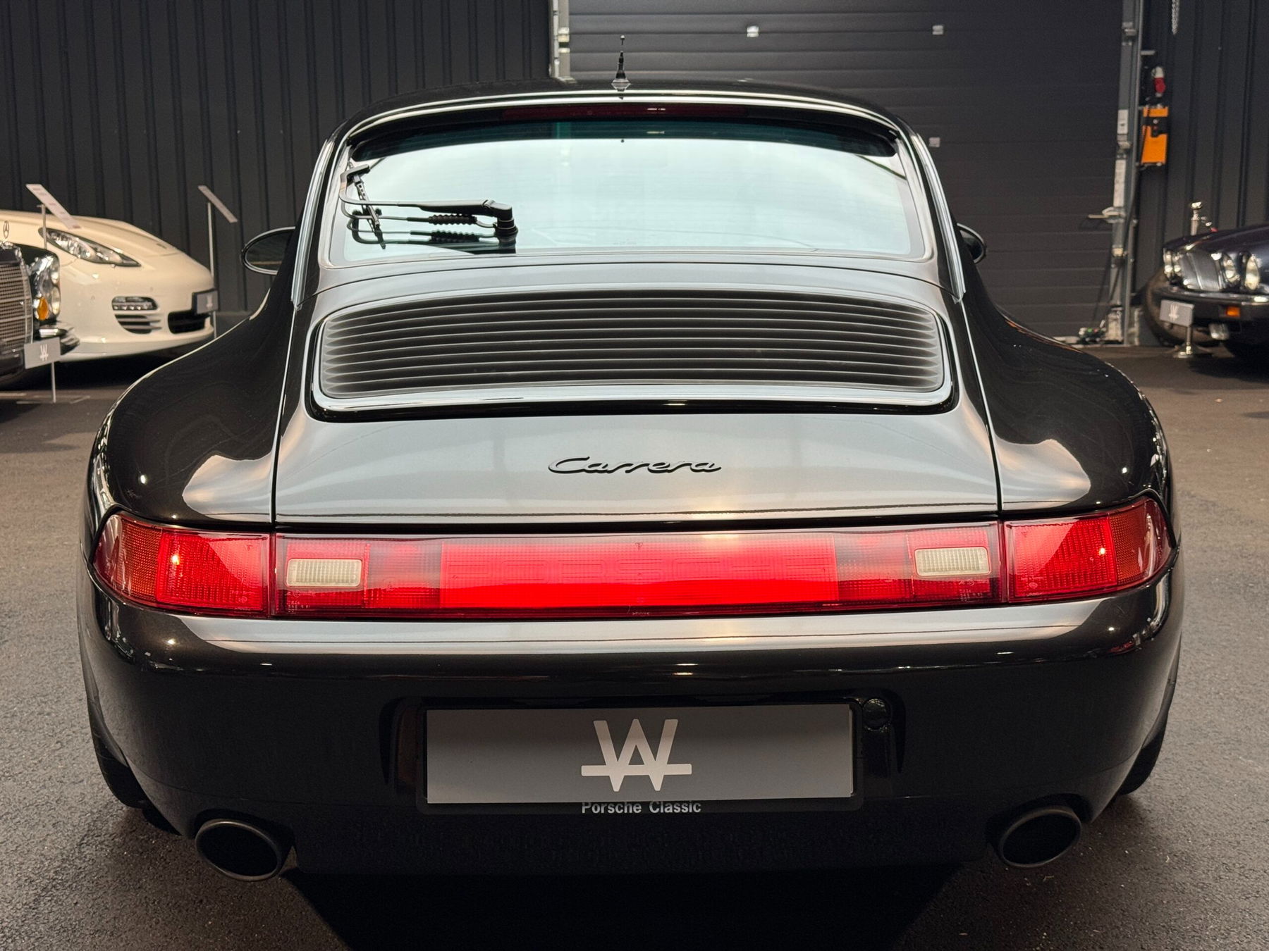 Ich biete Ihnen hier einen top gepflegten PORSCHE 993 CARRERA als Schiebedach-Coupé mit Tiptronic in einem rundherum guten Zustand. Das Scheckheft ist nahtlos gepflegt, alles ist auf Stand. Dieses bildschöne Coupé in gesuchter Farbkombination schwarz/schwarz wurde in Deutschland ausgeliefert. Einige Jahre verbrachte er auch in England. Das originale Scheckheft ist gepflegt und es existiert auch eine Rechnungshistorie über 15t€ des letzten Eigentümers. Beispielsweise wurde der Motor gereinigt und die Kettenkästen überholt. Die Frontscheibe wurde getauscht. Die Spurverbreiterung ist selbstverständlich eingetragen. Stylish dazu: die schwarzen Endrohre. Alles an dem Wagen funktioniert einwandfrei. Innen wie außen ist alles tiptop. Der Wagen fährt einwandfrei und das Getriebe schaltet stimmig. Hier kann sich jemand einen richtig schönen und guten 993 schnappen. Wenn Sie auf der Suche nach einem Porsche 993 sind, schauen Sie sich dieses tolle Coupé gern einmal an. Es steht in Hamburg in meiner Halle zur Besichtigung und bei schönem Wetter zur Probefahrt nach Terminvereinbarung zur Verfügung.