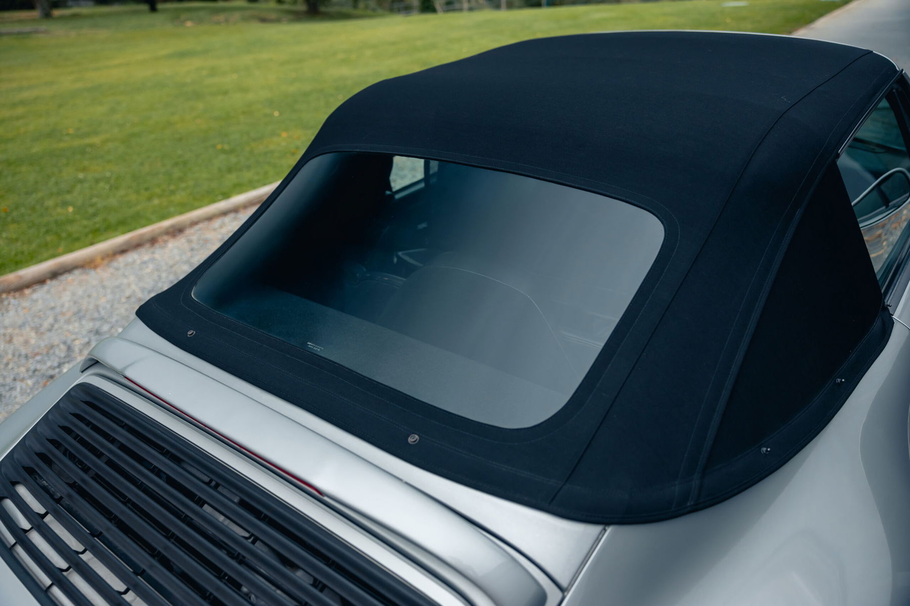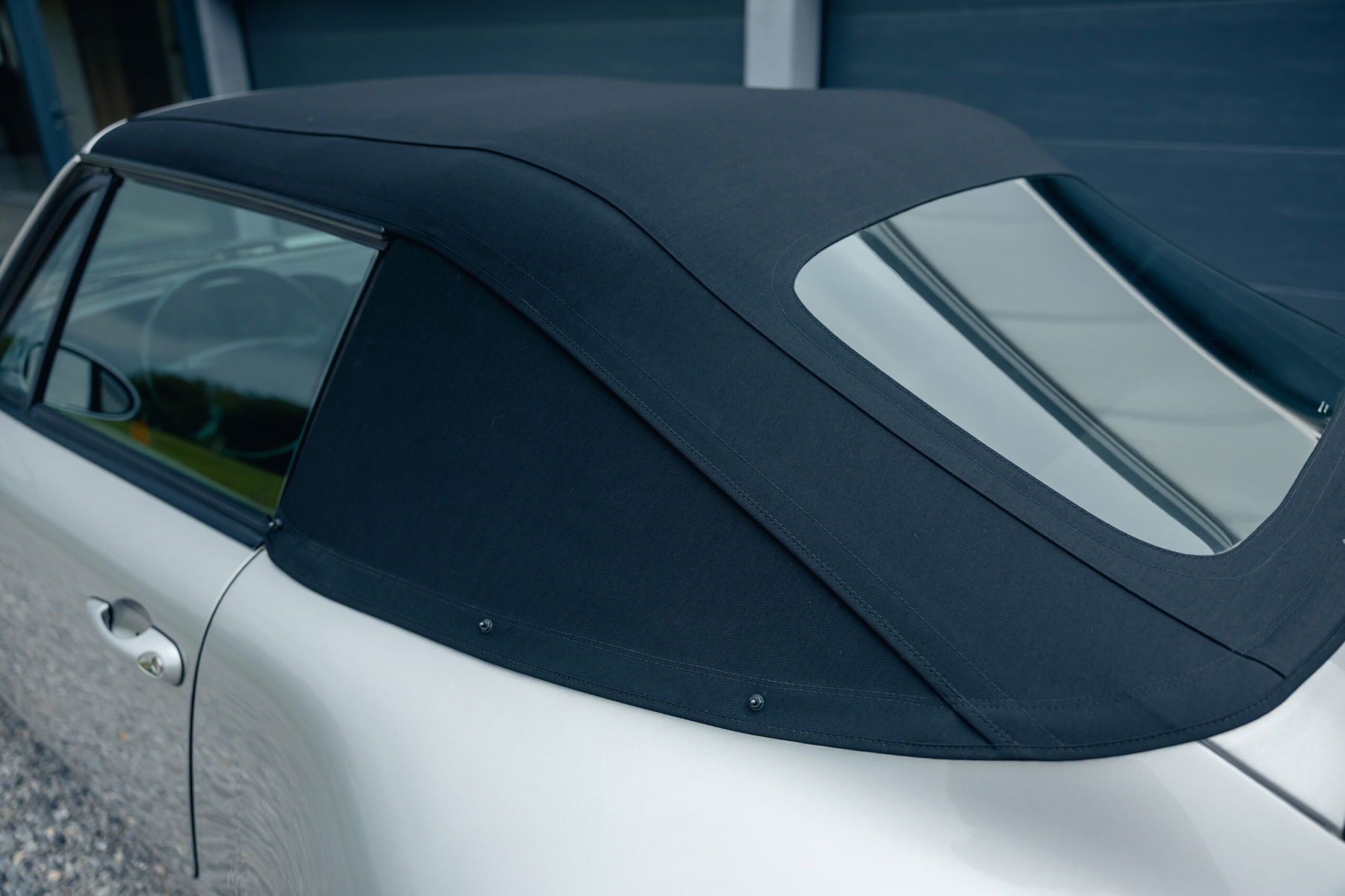 Der Innenraum ist in sehr gutem Zustand. Dieses Modell ist mit einer Verdeckabdeckung, einem Anti-Turbulenz-Netz, einem originalen Becker-Autoradio und einer Bluetooth-Box ausgestattet. Der Meilenzähler wurde 2024 durch einen Kilometerzähler ersetzt. Diese Umrüstung ist durch eine Rechnung dokumentiert. Die Armaturen sind funktionsfähig.