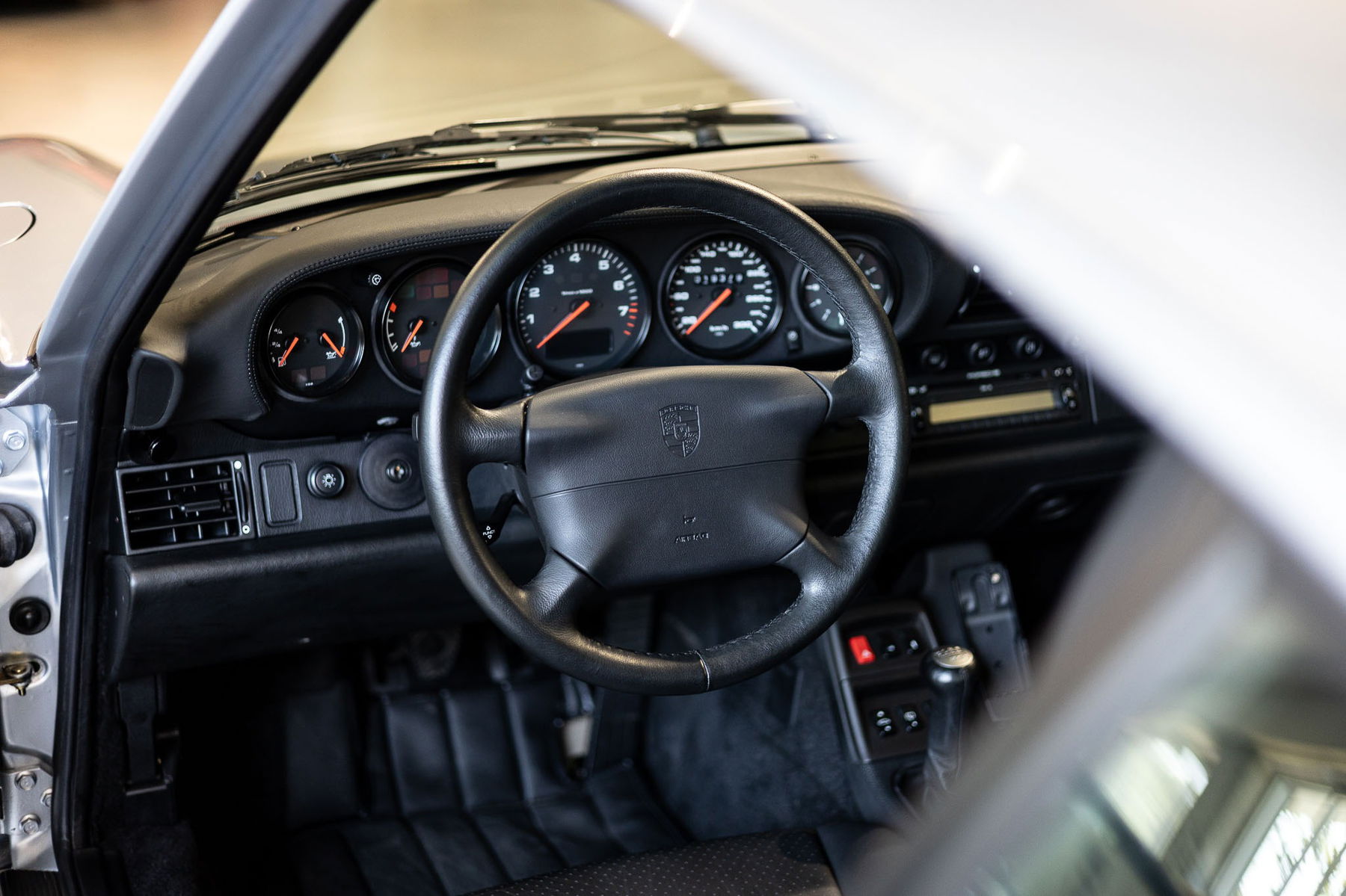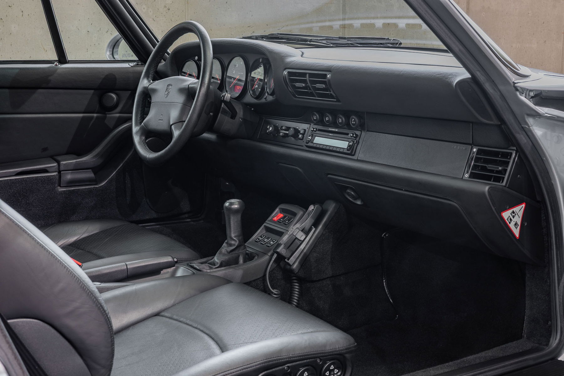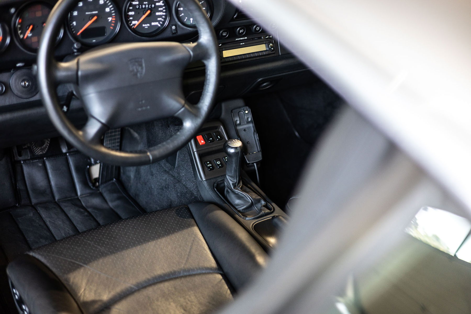 Der Porsche 993 Carrera 4S war das damalige Topmodell der Baureihe und wurde bereits mit einer umfangreichen Serienausstattung bestückt, zu der u.a. eine Klimaanlage, ein Bordcomputer, sowie die vollelektrische Sitzverstellung gehört. Darüberhinaus sorgte bei diesem Exemplar eine weitere Liste an Sonderausstattungen und X-Optionen für Aufwertung: Die damals neu entwickelten Litronic Scheinwerfer erhöhen die Sichtbarkeit bei Dunkelheit signifikant und die dritte Bremsleuchte ist nicht nur sicherheitsrelevant, sondern unterstreicht auch die Silhouette. Die Sitzheizung der Sitze für Fahrer- und Beifahrer in Raffleder ist ein komfortables Extra und wem der Sound aus dem Heck nicht ausreicht für den sorgt das noch original verbaute Radio CDR 21 zusammen mit dem digitalen Soundpaket von Bose ab Werk für ein Höchstmaß an Musikgenuss der damaligen Zeit. Das elektrische Schiebedach lässt die Sonne in den Innenraum und Licht steigert bekanntlich die Glückshormonproduktion. Wobei für letzteres bereits durch die Beschleunigungswerte und der wohl besten Straßenlage eines luftgekühlten Porsche 911 bereits ausreichend gesorgt ist.