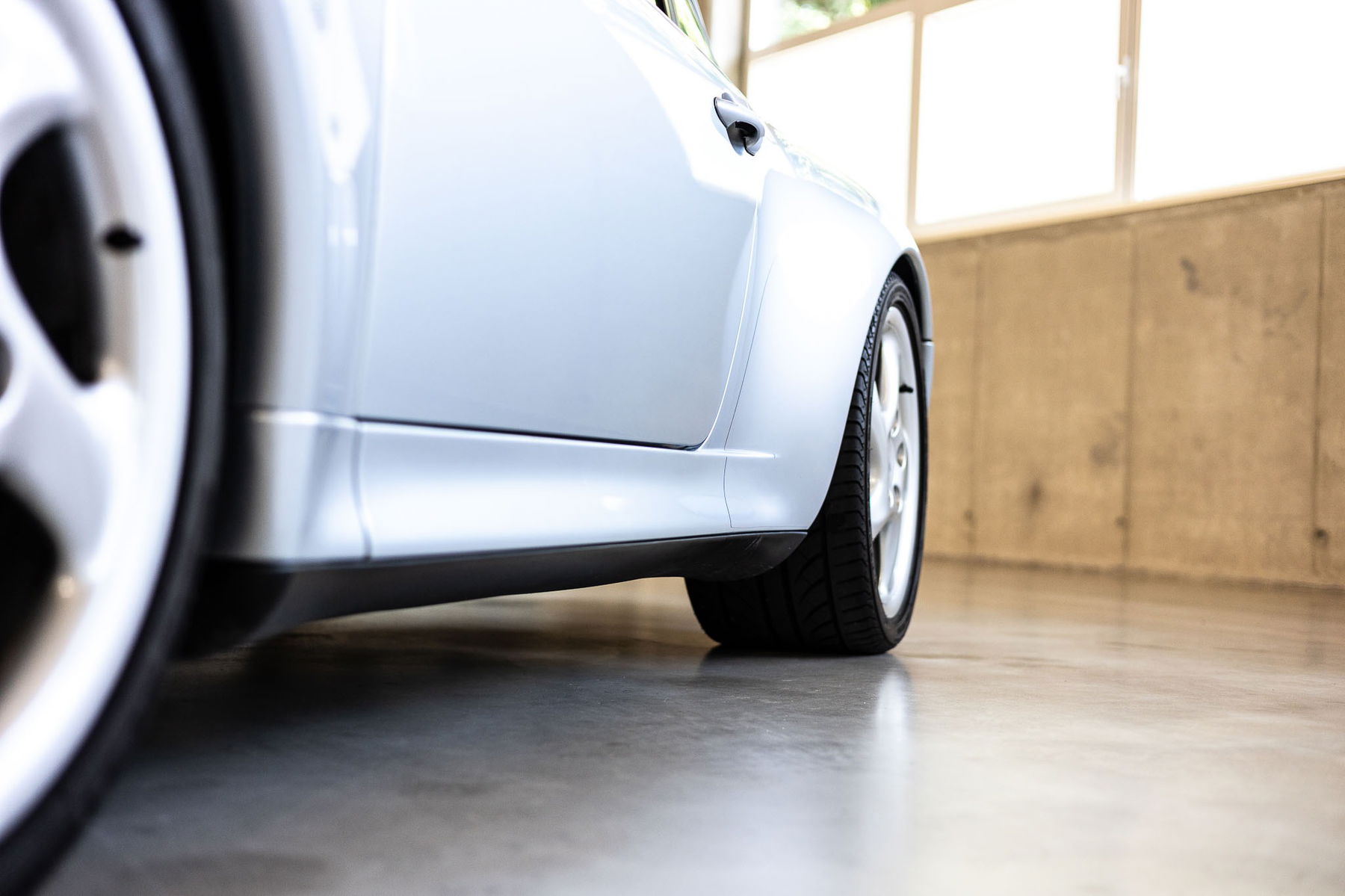 Beschädigungen oder Folgen von Regen oder gar Schnee und Salz sind nicht vorhanden. Der Unterboden weist noch den originalen Unterbodenschutz auf. Neben der Karosserie sind die Anbauteile wie Scheinwerfergläser, Gummis und Fensterrahmen ebenfalls neuwertigen Erhaltungsgrad. Kaum zu glauben, dass es sich um ein 27 Jahre altes Fahrzeug handelt, da die Haptik und Struktur der Oberflächen den Eindruck eines Neuwagens im Jahr 1997 vermitteln. Unsere Testfahrt begeisterte, da diese einen seltenen Zeitsprung ermöglicht ein Fahrzeug zu erleben, das sich wie ein Neuwagen fährt. Und sogar noch riecht wie einer.