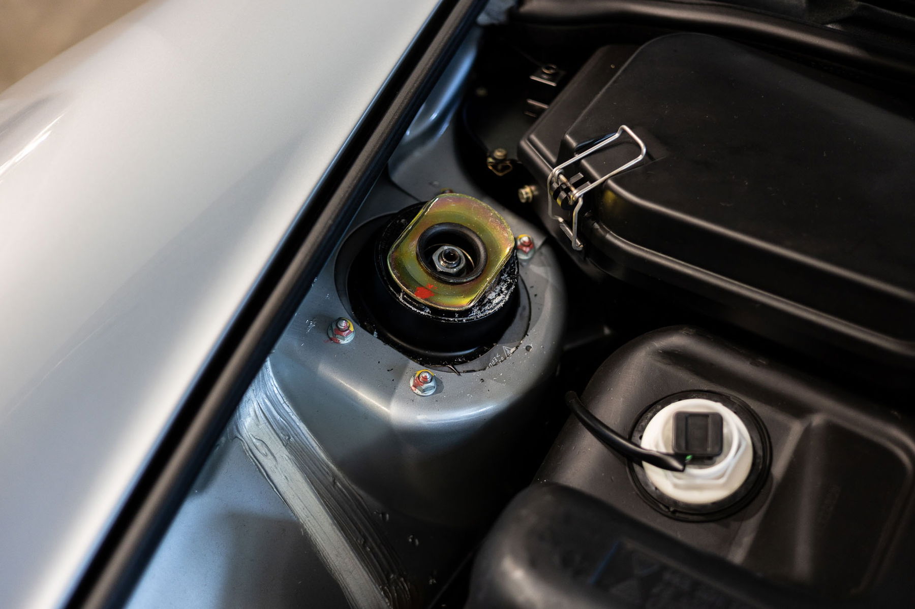 Darüberhinaus liegen die von uns gemessenen Lackwerte der Karosserie noch vollständig auf dem Niveau der Originallackierung. Wir gehen davon aus, dass der Wagen keinerlei Nachlackierungen erhalten hat und daher kann unserer Einschätzung nach von rundum von Erstlack ausgegangen werden.