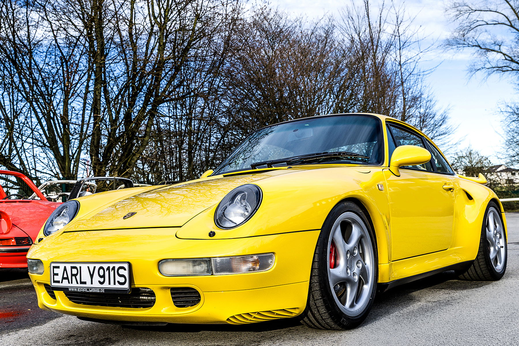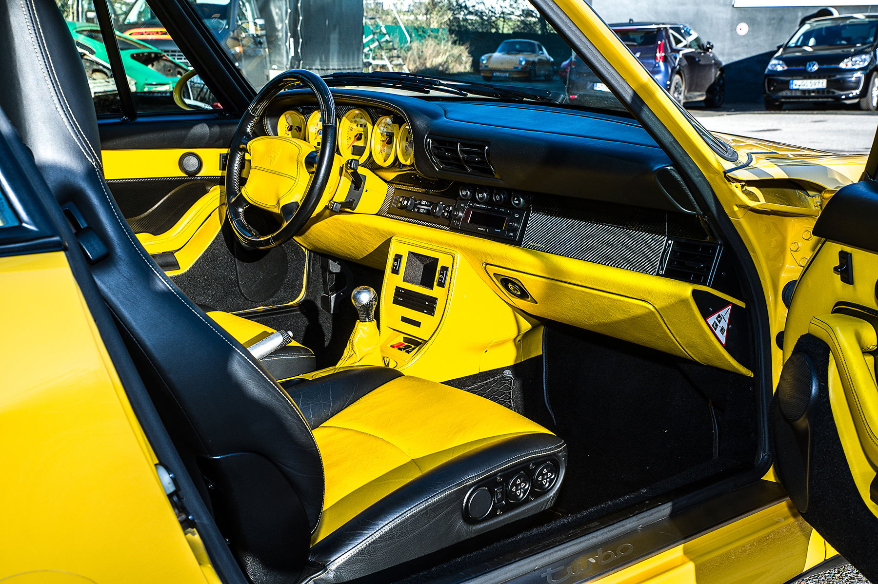 Ferrarigelbe Schriftzüge Turbo auf Notsitzen