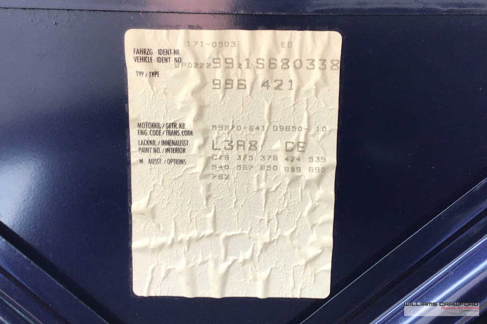 First supplied by AFN Limited, OPC in Guildford, it was an Official Porsche ‚Launch Car‘ for the 2001 model. Delivered and registered in June 2000, prior to the usual September date, it has a ‚Z1S‘ chassis number denoting the 2001 model year.