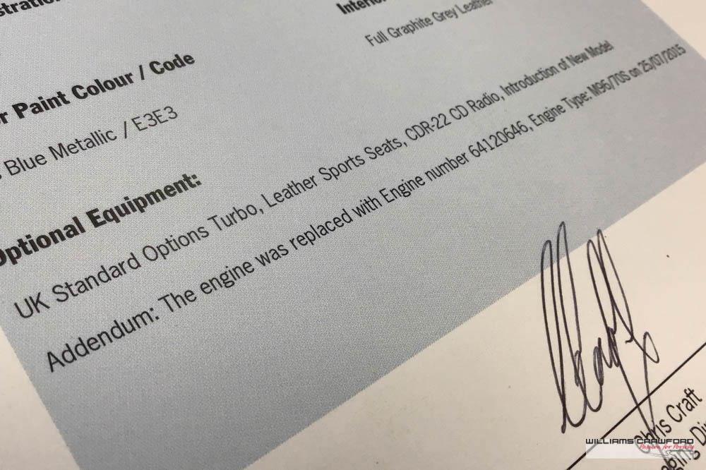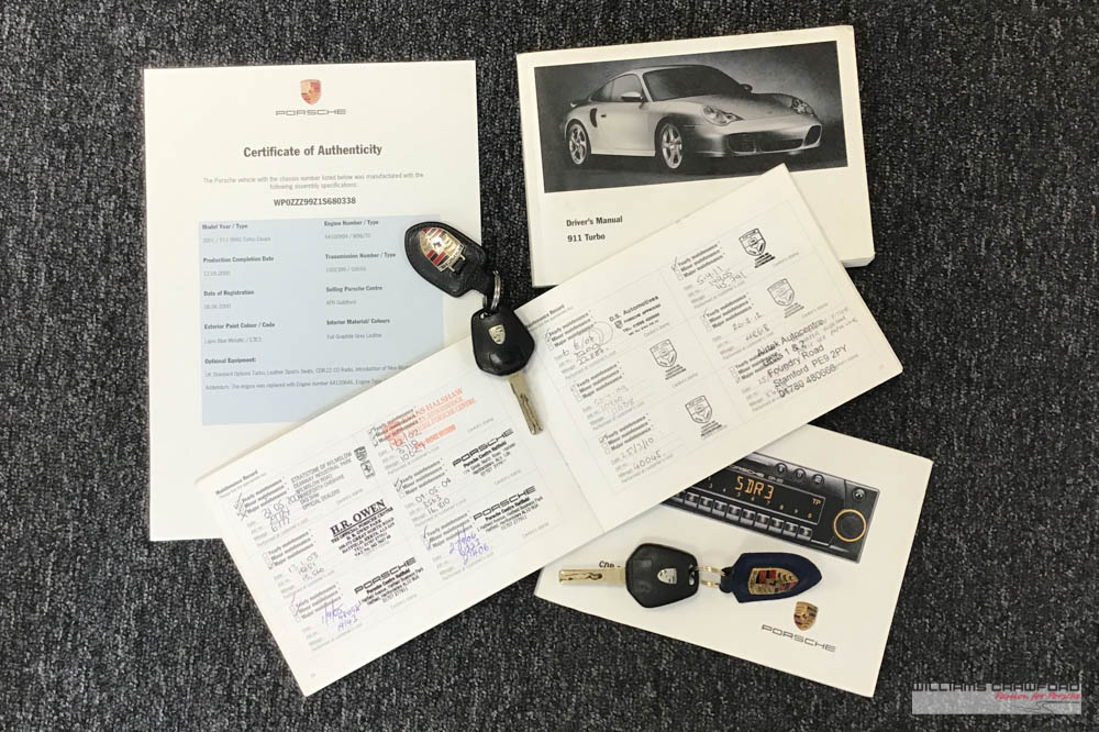 Five years ago this 996 received a replacement engine, all documented and pictured and the Certificate of Authenticity suitably amended by Porsche. At same time both K16 turbo’s were reconditioned. (Totally over £7,000)