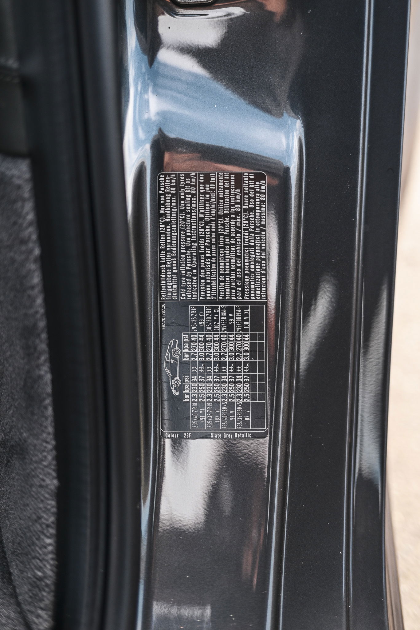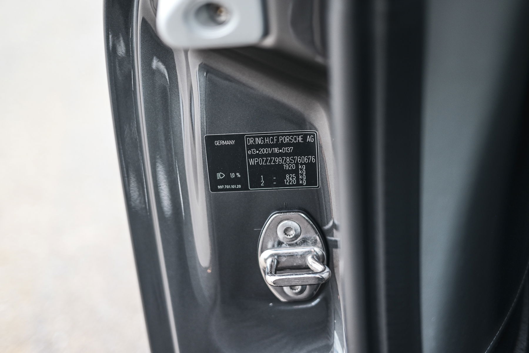 Außen-/Innenspiegel mit Abblendautomatik und Regensensor, Bi-Xenon-Scheinwerfer, Einstiegsblenden (Edelstahl), Fahrassistenz-System: Park-Assistent, Felgensterne lackiert, Frontscheibe mit Bandfilter oben, Fußmatten, LM-Felgen vorn/hinten: 8,5×19 / 11,5×19 (Carrera Sport Rad), Metallic-Lackierung, Porsche Active Suspension Management (PASM), Porsche Communications Management (PCM) inkl. DVD – Navigationsmodul (erweitert), Sitze, vollelektrisch, Sitzheizung vorn, Sound-System BOSE, Sport-Chrono-Paket Plus, Telefonmodul für Porsche Communications Management (PCM), Vorrüstung Vehicle-Tracking-System