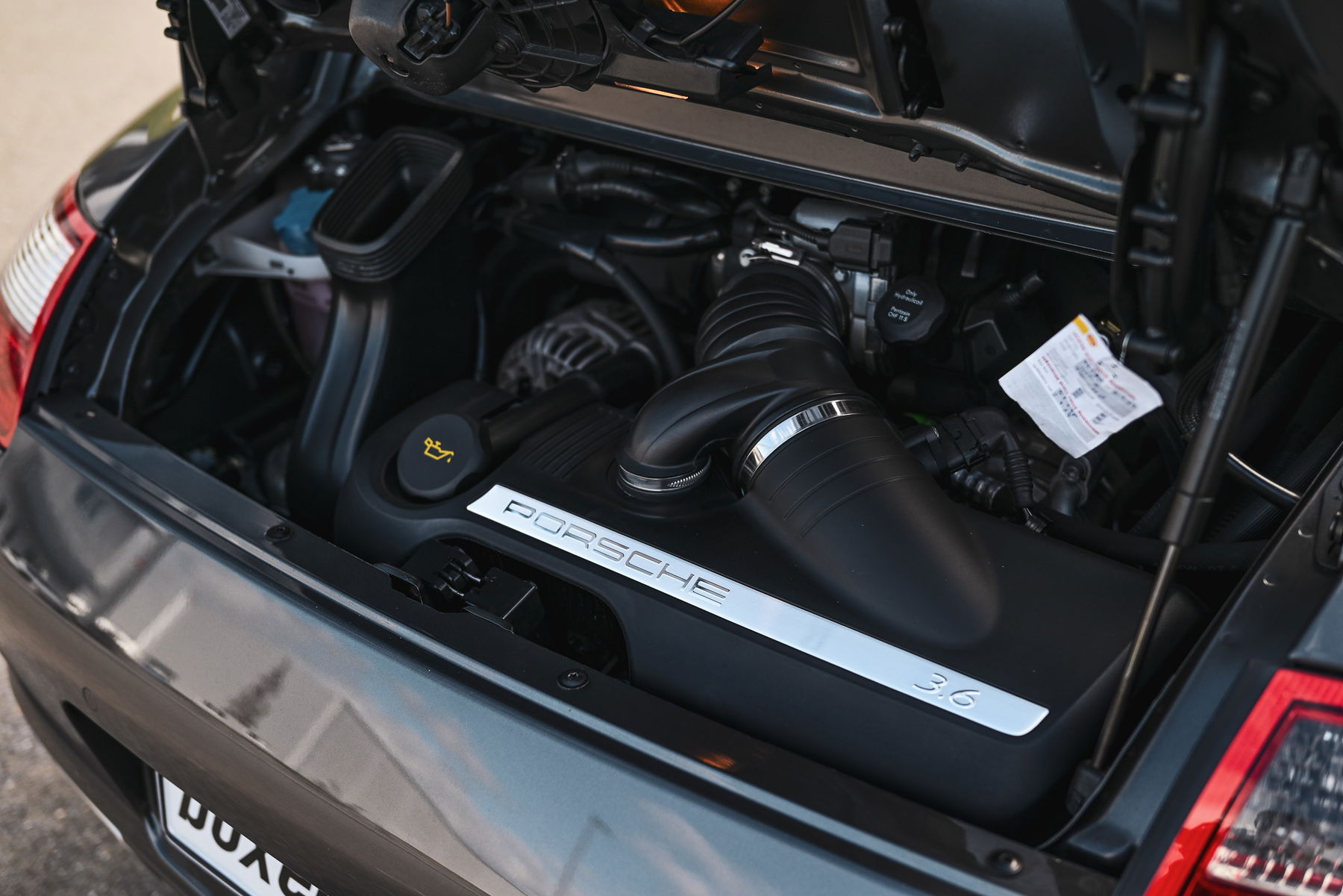 3. Bremsleuchte, Airbag Fahrer-/Beifahrerseite, Anzeigeinstrumente mit Hintergrund schwarz, Bordcomputer, Cabrio, Heckscheibe heizbar, Innenraumfilter: Aktivkohlefilter (Geruchsfilter), Isofix-Aufnahmen für Kindersitz an Beifahrersitz, Karosserie: 2-türig, Klimaautomatik, Koffer- und Motordeckelentriegelung elektrisch, Kopf-Airbag-System Porsche Side Impact Protection System (POSIP), Lenksäule (Lenkrad) verstellbar, Motor 3,6 Ltr. – 239 kW KAT, Nebelschlussleuchte, Reifen-Reparaturkit, Schwellerabdeckung / -verkleidung, Seitenairbag vorn, Verdeckbetätigung elektrisch, Verglasung getönt, Windschott