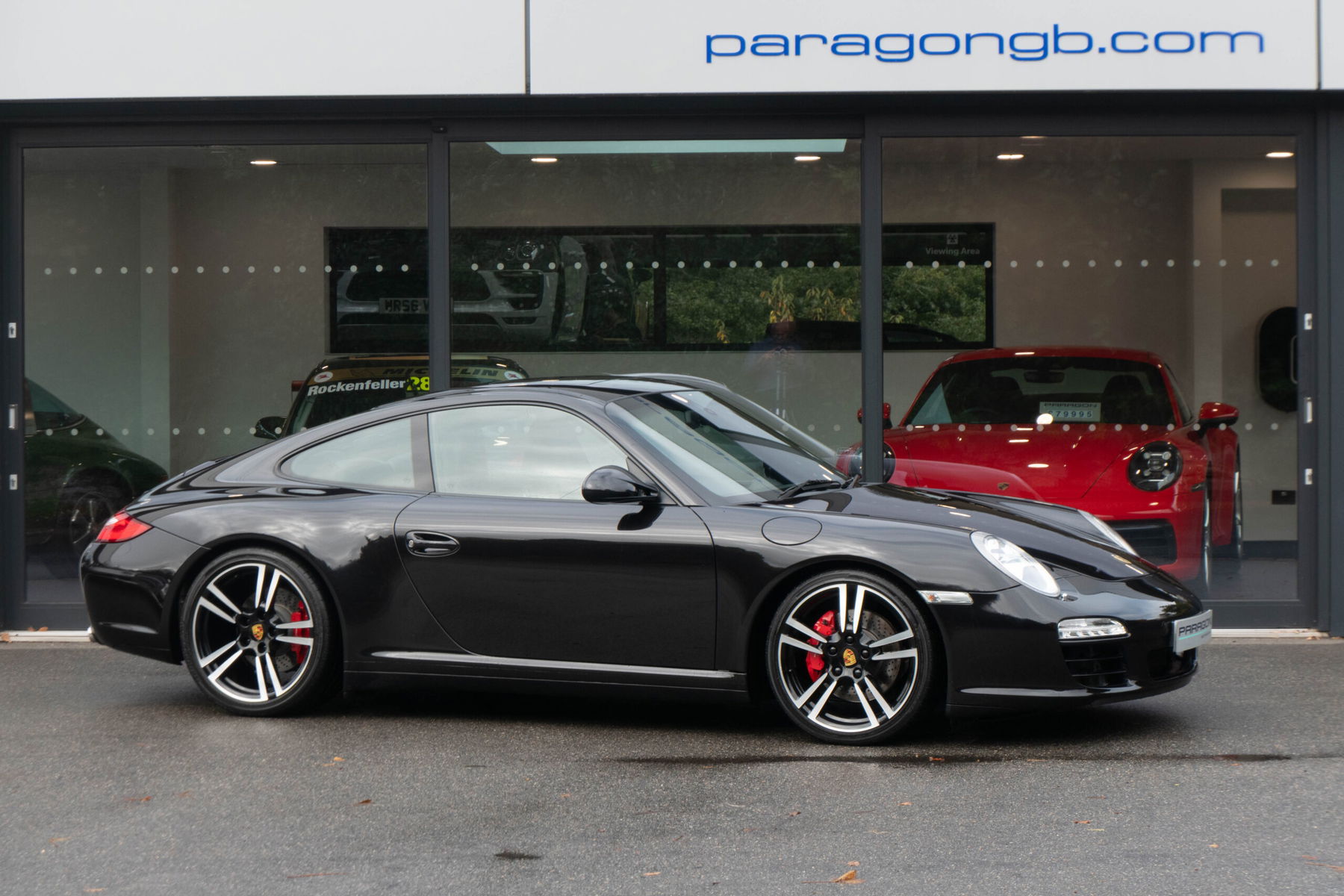 Porsche 911 Carrera 4 S Coupé (997.2), 7-Gang-PDK, Basalt Black, schwarze Ledersitze, Klimaanlage, Allradantrieb, Porsche Active Suspension Management & Porsche Stability Management, Touchscreen-Satellitennavigation, Bi-Xenon-Scheinwerfer, LED-Tagfahrlicht, elektrisches Schiebedach, silberne Zifferblätter.