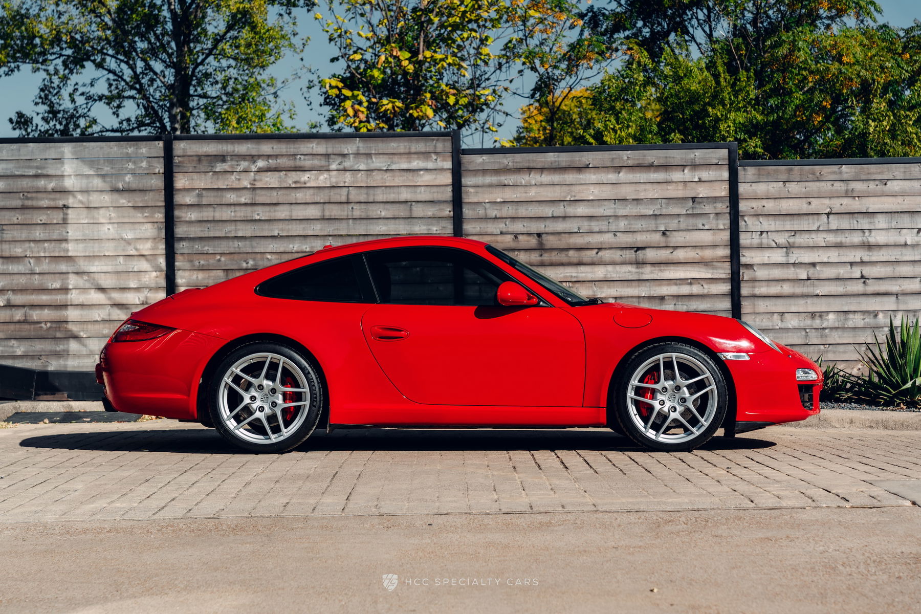 Ein 2010er 997.2 Carrera S in Indischrot mit schwarzer Lederausstattung und 6-Gang-Getriebe. Zur Werksausstattung gehören das Sport Chrono Paket Plus, das Bose High-End-Soundpaket, PCM-Navigation, beheizbare Power-Komfortsitze mit Fahrerspeicher und dynamische Kurvenlichter. Zu den zusätzlichen Optionen gehören selbsttönende Spiegel, Bluetooth-Telefonschnittstelle, XM-Radio und Schalthebelverkleidung in Wagenfarbe. Angeboten mit einem sauberen CARFAX und einem sauberen Texas-Titel.