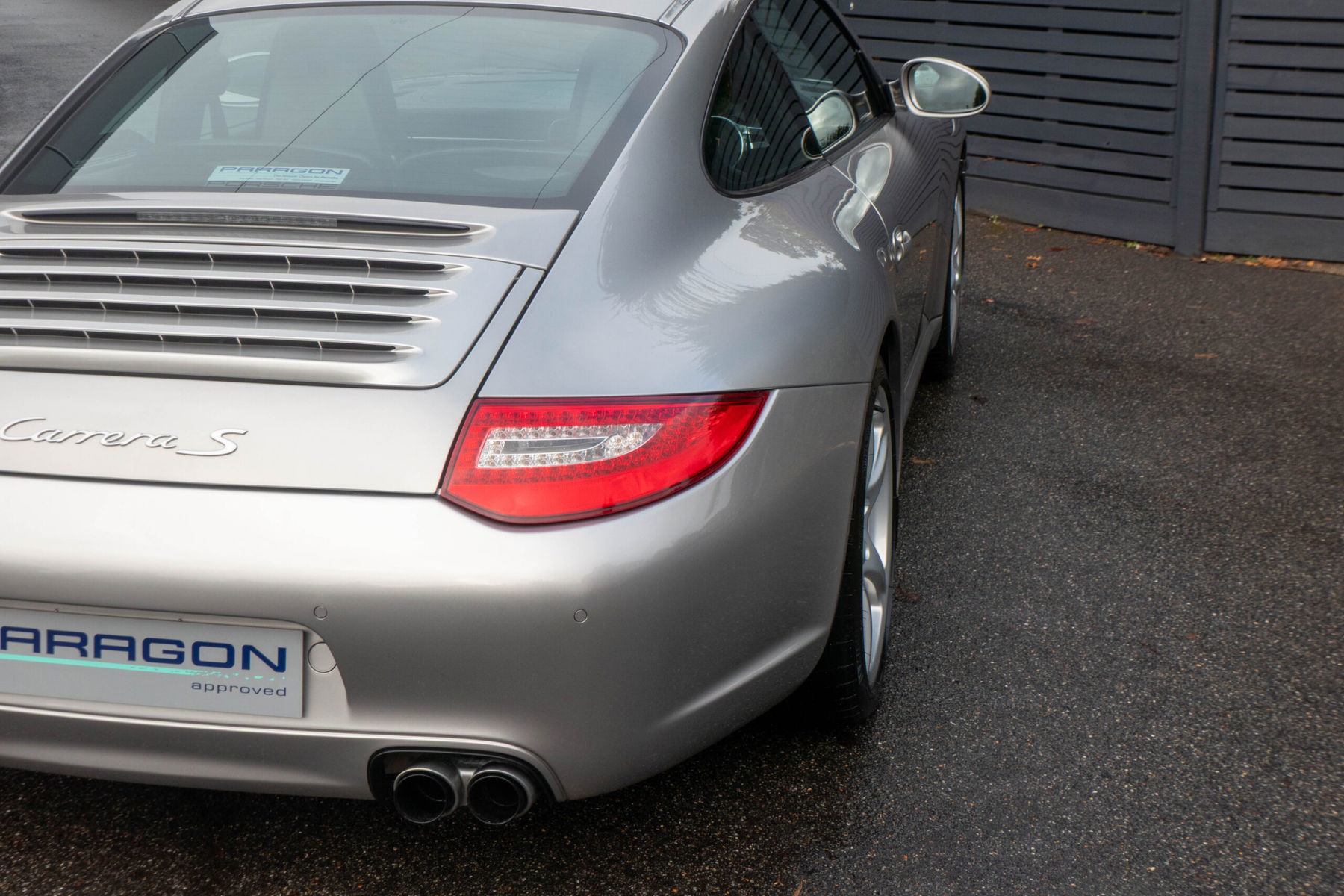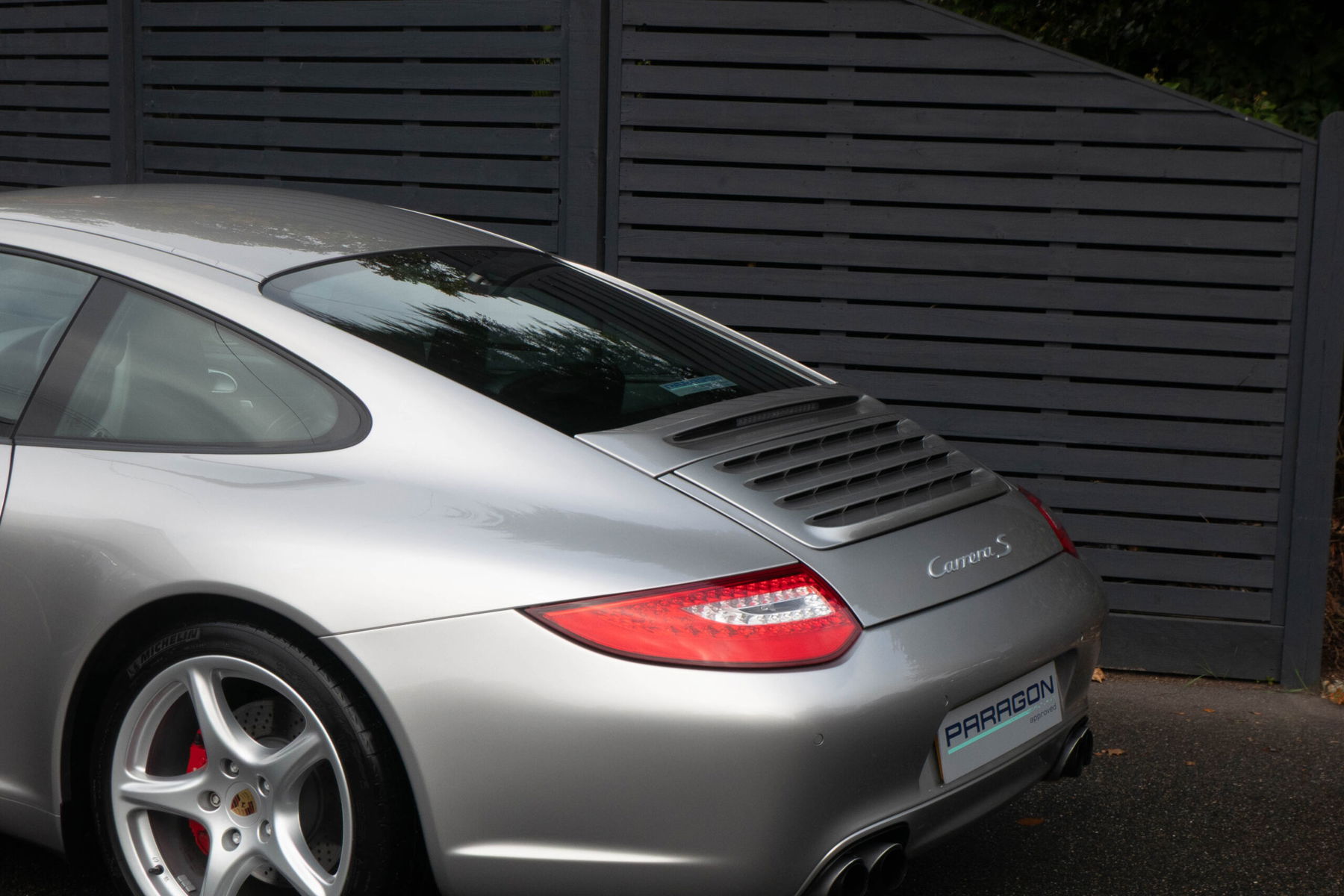 Porsche 911 Carrera 2 S Coupé (997.2) 7-Gang-PDK, Platin-Silber, schwarze Ledersportsitze, Klimaanlage, Porsche Active Suspension Management & Porsche Stability Management, Touchscreen-Satellitennavigation, Bi-Xenon-Scheinwerfer, LED-Tagfahrlicht, Porsche Sound Pack, silberne Zifferblätter. Zur Sonderausstattung gehören: 7-Gang-PDK-Getriebe mit Sportdesign-Lenkrad, 19-Zoll-Carrera-Classic-Räder, Tempomat, schaltbare Sportabgasanlage, Sport Chrono mit Sport Plus, Sitzheizung, Kopfstützen mit Porsche-Prägung, Sportsitze, Einstiegsleisten aus Edelstahl, Bluetooth-Telefon, Parksensoren hinten, iPod-/USB-Schnittstelle.