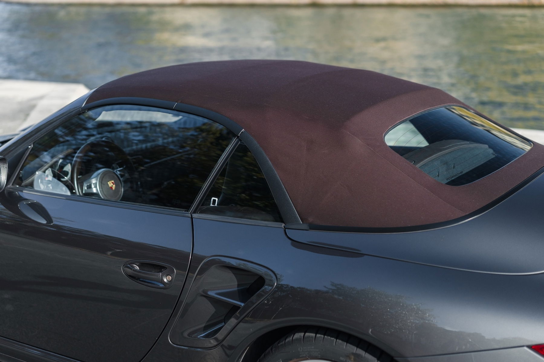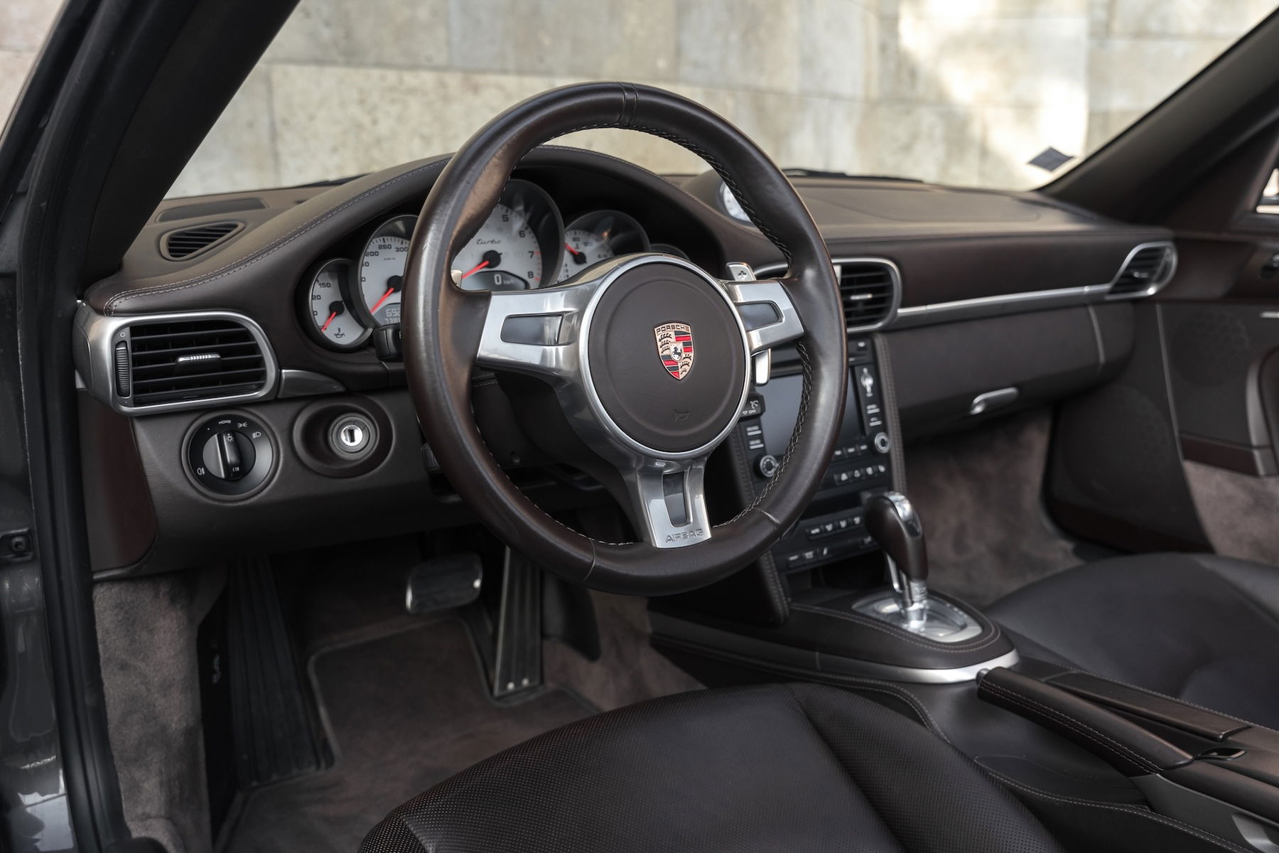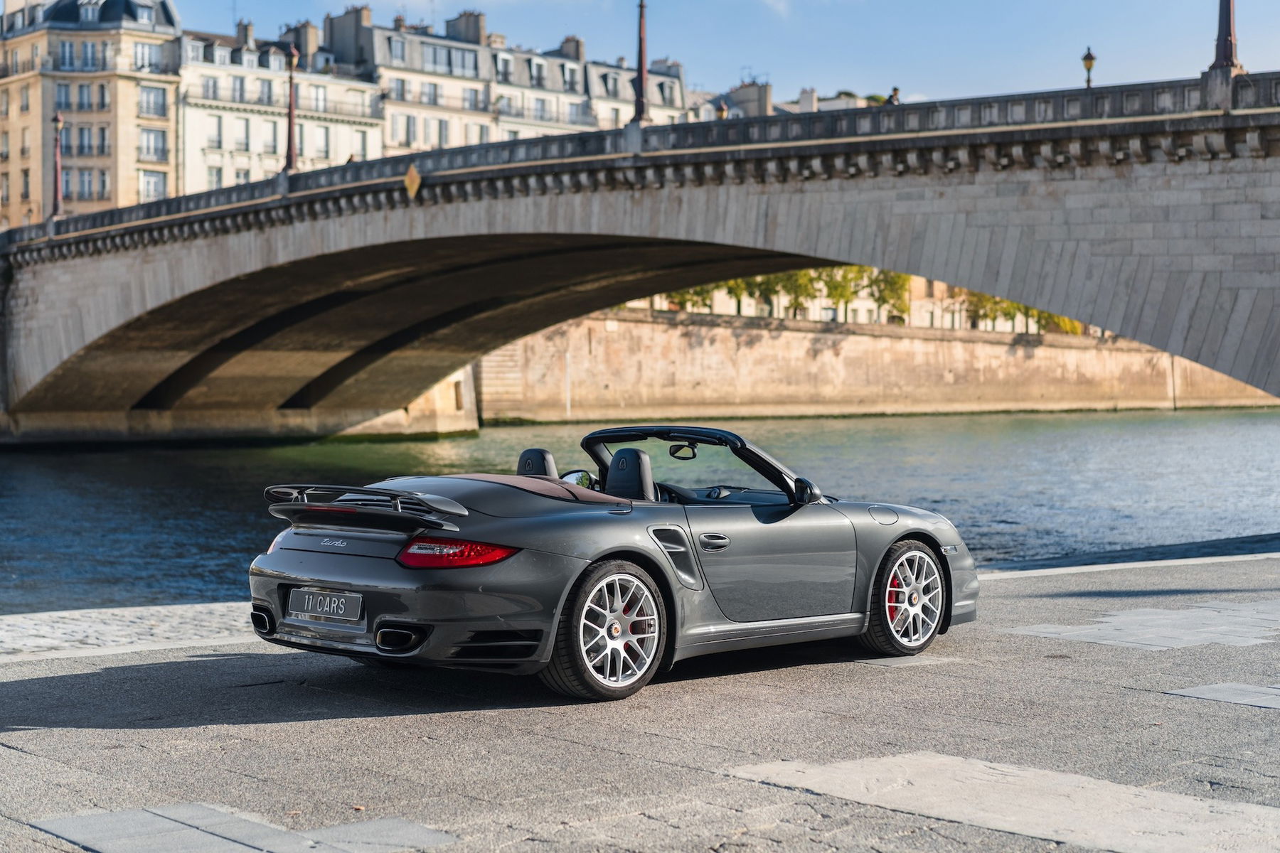 Der neue Porsche 911 Turbo Typ 997 Phase 2 wurde am 17. September 2009 auf der Frankfurter Automobilausstellung erstmals der Öffentlichkeit vorgestellt und ist das neueste Modell einer langen Reihe, die 1974 begann. Mit dem mittlerweile legendären Typ 930 Turbo präsentierte Porsche auf dem Pariser Autosalon den ersten 911 Turbo. Fünfunddreißig Jahre später stellte Porsche das neue Flaggschiff seiner mittlerweile umfangreichen Modellpalette vor. Alle Eigenschaften des 997 Turbo wurden weiter verbessert: ein brandneuer 3,81-Liter-Motor, 20 PS mehr Leistung und eine Höchstgeschwindigkeit von 312 km/h bei geringerem Kraftstoffverbrauch und Gewicht. Er soll zwar nicht das sportlichste Mitglied der 911-Familie sein – dafür gibt es den GT3 und den GT2 –, aber der Turbo spielt gekonnt die Rolle eines „Schweizer Taschenmessers“, mit dem man die Kinder zur Schule bringen oder auf die Rennstrecke fahren kann. Der 997 Turbo Mk2 bietet nun optional das neue 7-Gang-PDK-Doppelkupplungsgetriebe an. Die Leistung des Fahrzeugs ist mit 0-100 km/h in 3,4 Sekunden und 0-200 km/h in 11,3 Sekunden nach wie vor erstklassig. Das angebotene Fahrzeug wurde neu in Deutschland ausgeliefert und ist nun in Frankreich zugelassen. Es handelt sich um einen Gebrauchtwagen mit 69.300 km auf dem Tacho. Das Fahrzeug befindet sich in einwandfreiem Zustand. Es hat eine wunderschöne schiefergraue (PTS) Außenlackierung und eine komplette Innenausstattung aus Kakaoleder.