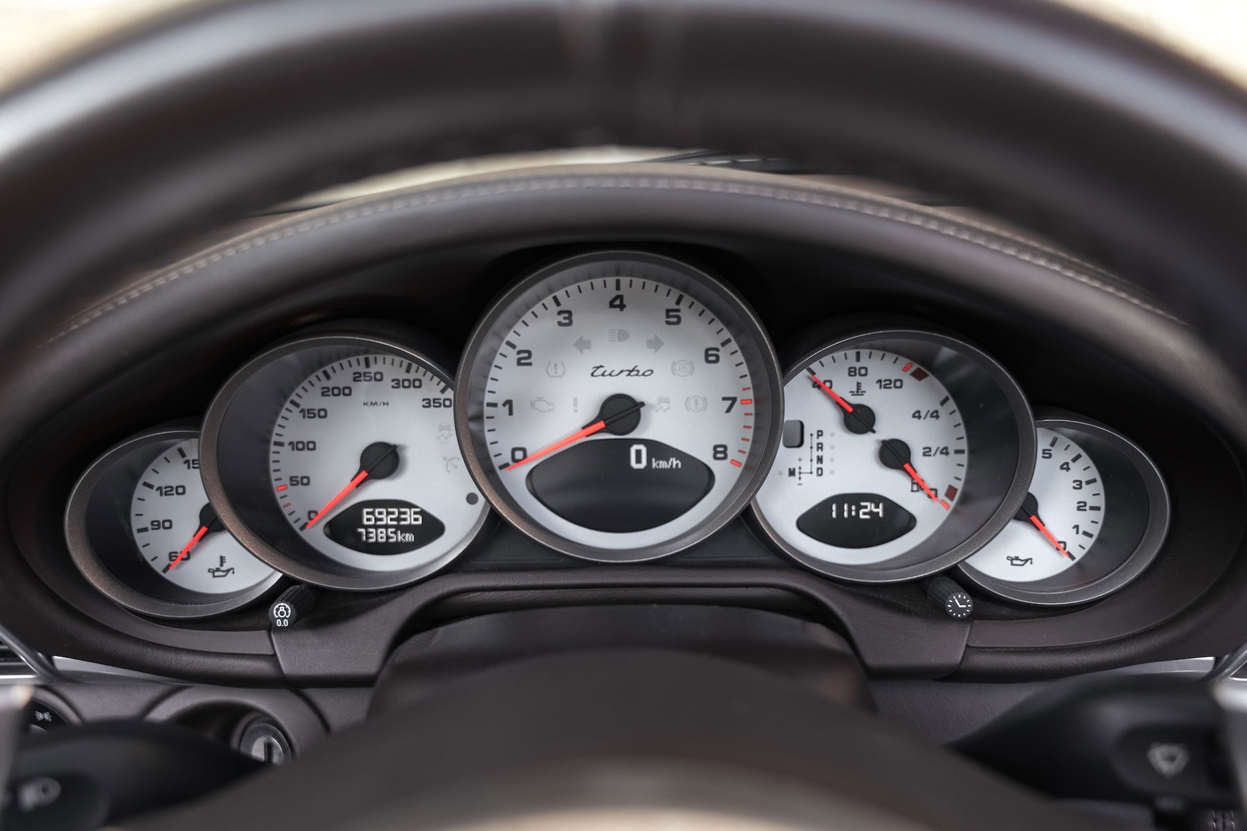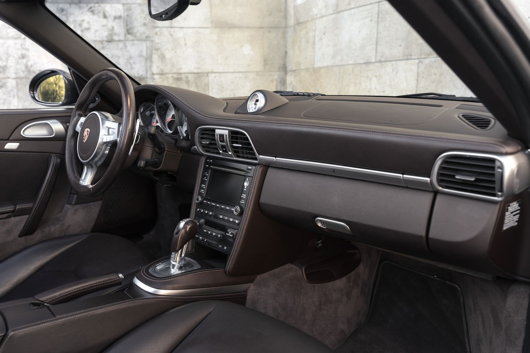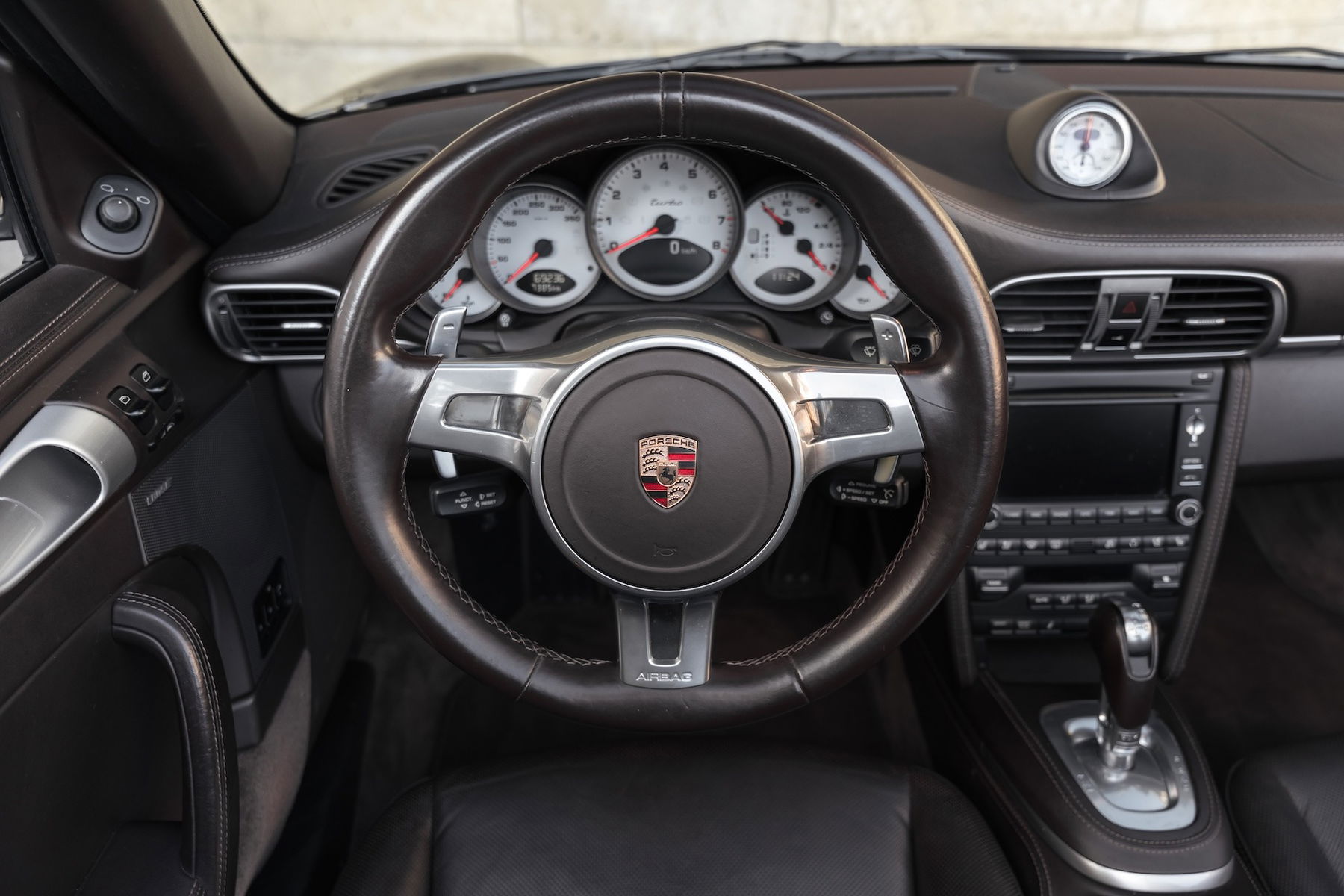 Der neue Porsche 911 Turbo Typ 997 Phase 2 wurde am 17. September 2009 auf der Frankfurter Automobilausstellung erstmals der Öffentlichkeit vorgestellt und ist das neueste Modell einer langen Reihe, die 1974 begann. Mit dem mittlerweile legendären Typ 930 Turbo präsentierte Porsche auf dem Pariser Autosalon den ersten 911 Turbo. Fünfunddreißig Jahre später stellte Porsche das neue Flaggschiff seiner mittlerweile umfangreichen Modellpalette vor. Alle Eigenschaften des 997 Turbo wurden weiter verbessert: ein brandneuer 3,81-Liter-Motor, 20 PS mehr Leistung und eine Höchstgeschwindigkeit von 312 km/h bei geringerem Kraftstoffverbrauch und Gewicht. Er soll zwar nicht das sportlichste Mitglied der 911-Familie sein – dafür gibt es den GT3 und den GT2 –, aber der Turbo spielt gekonnt die Rolle eines „Schweizer Taschenmessers“, mit dem man die Kinder zur Schule bringen oder auf die Rennstrecke fahren kann. Der 997 Turbo Mk2 bietet nun optional das neue 7-Gang-PDK-Doppelkupplungsgetriebe an. Die Leistung des Fahrzeugs ist mit 0-100 km/h in 3,4 Sekunden und 0-200 km/h in 11,3 Sekunden nach wie vor erstklassig. Das angebotene Fahrzeug wurde neu in Deutschland ausgeliefert und ist nun in Frankreich zugelassen. Es handelt sich um einen Gebrauchtwagen mit 69.300 km auf dem Tacho. Das Fahrzeug befindet sich in einwandfreiem Zustand. Es hat eine wunderschöne schiefergraue (PTS) Außenlackierung und eine komplette Innenausstattung aus Kakaoleder.