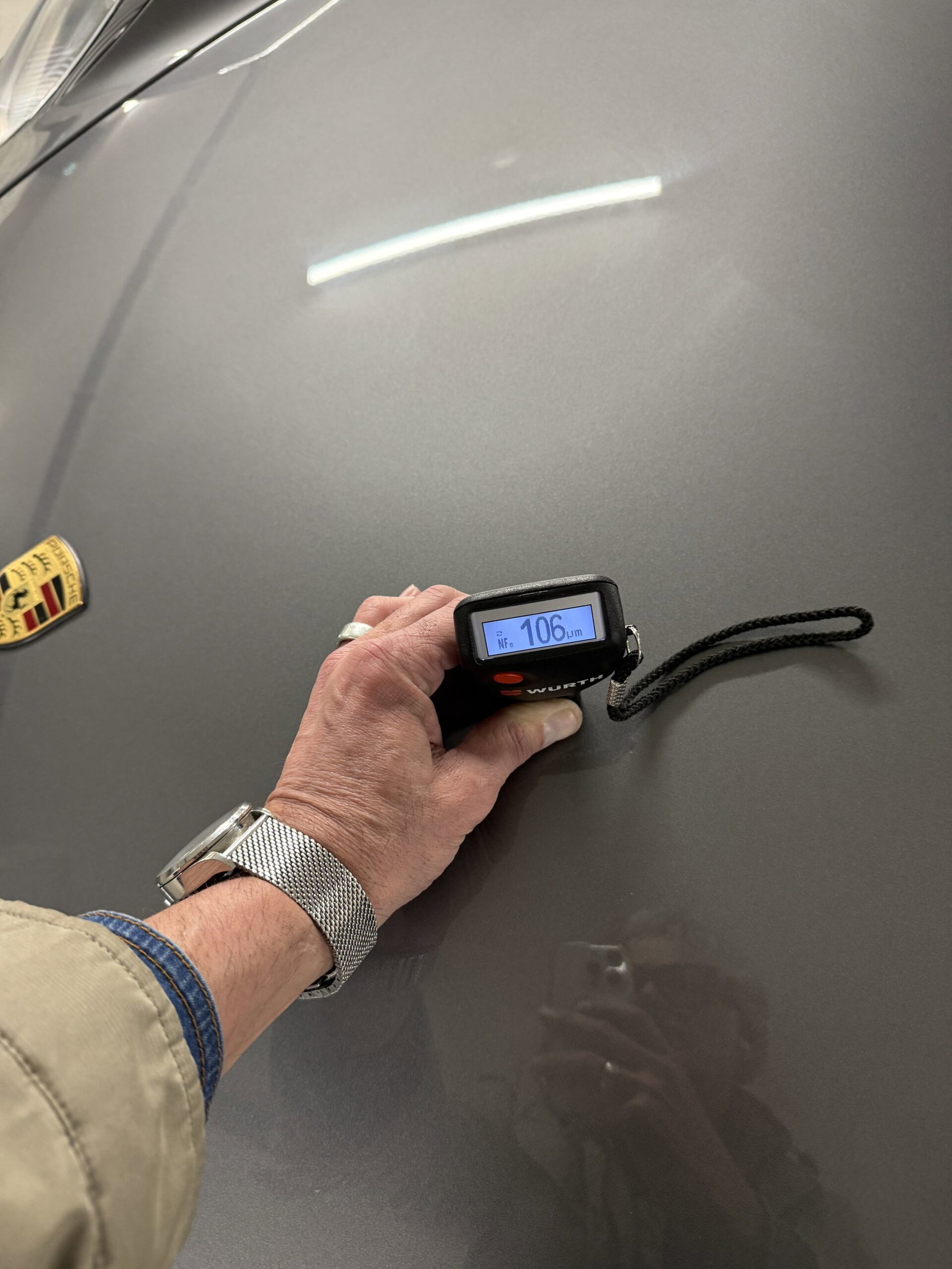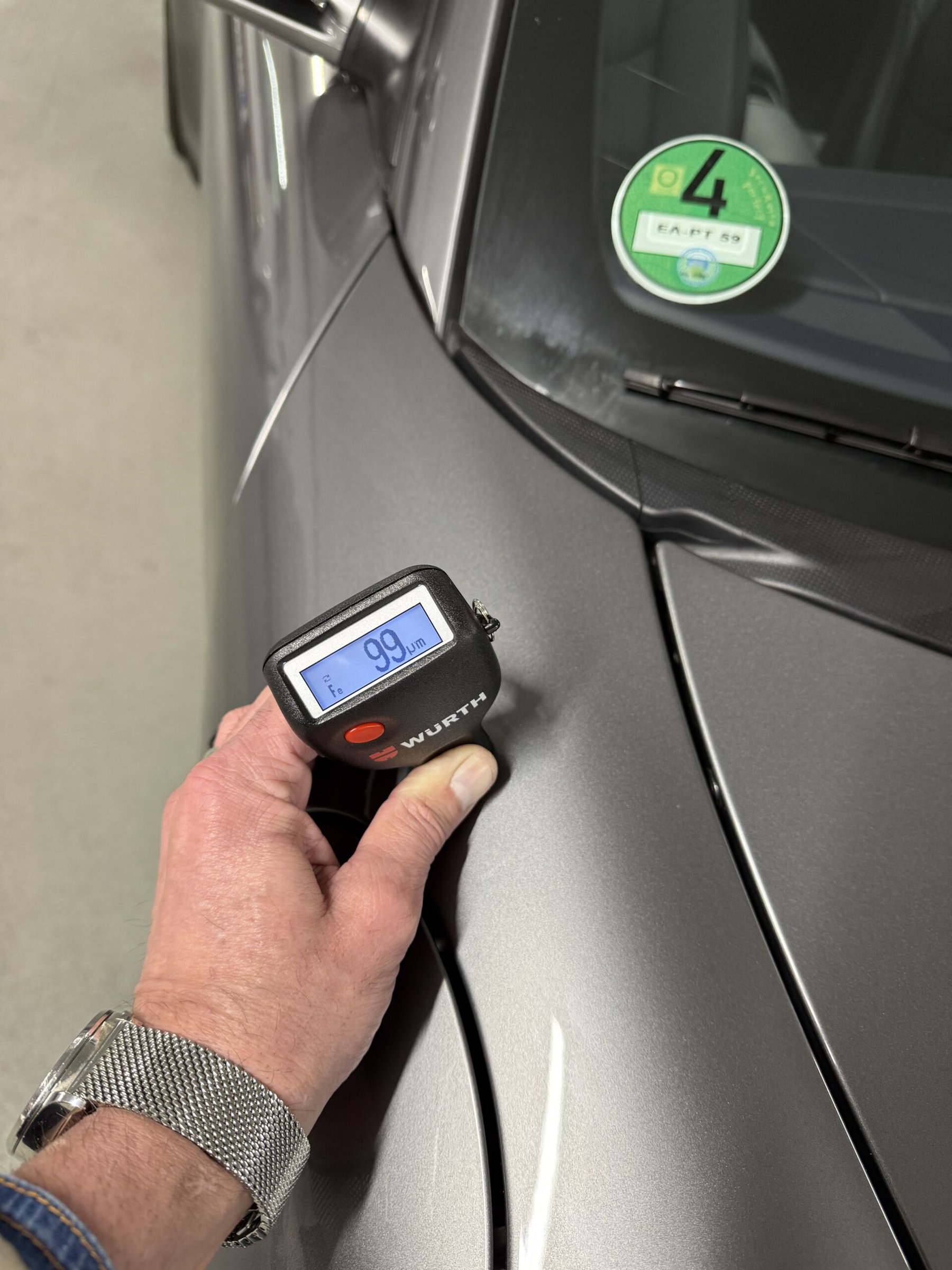 Eine Lackschicht Messung hat ergeben, dass das Fahrzeug keinerlei Nachlackierungen an der Karosserie hat.