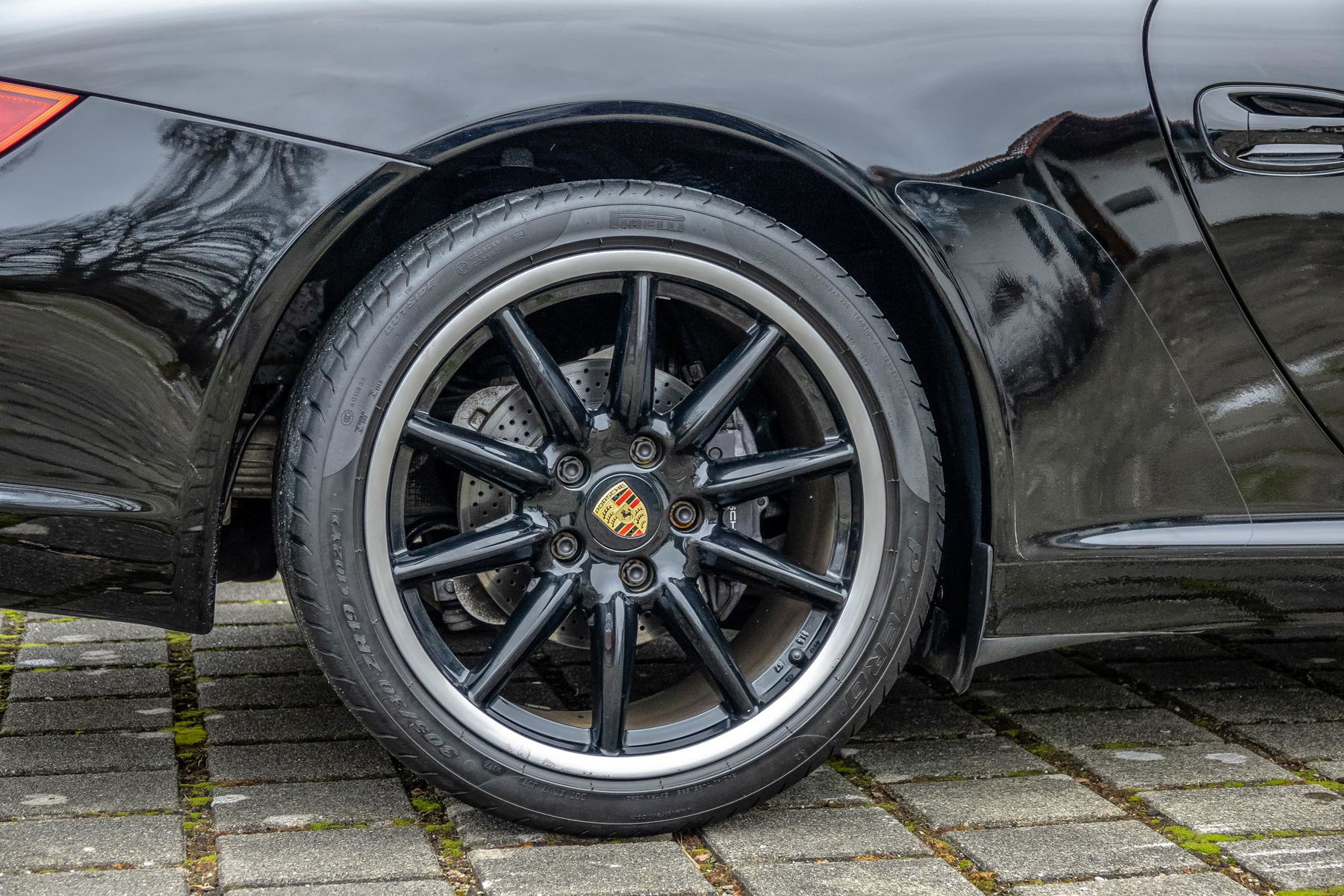 Zum Verkauf steht ein Porsche 997 Carrera Cabriolet aus dem Jahr 2007 in der Farbe Schwarz und mit einer Innenausstattung aus schwarzem Leder.