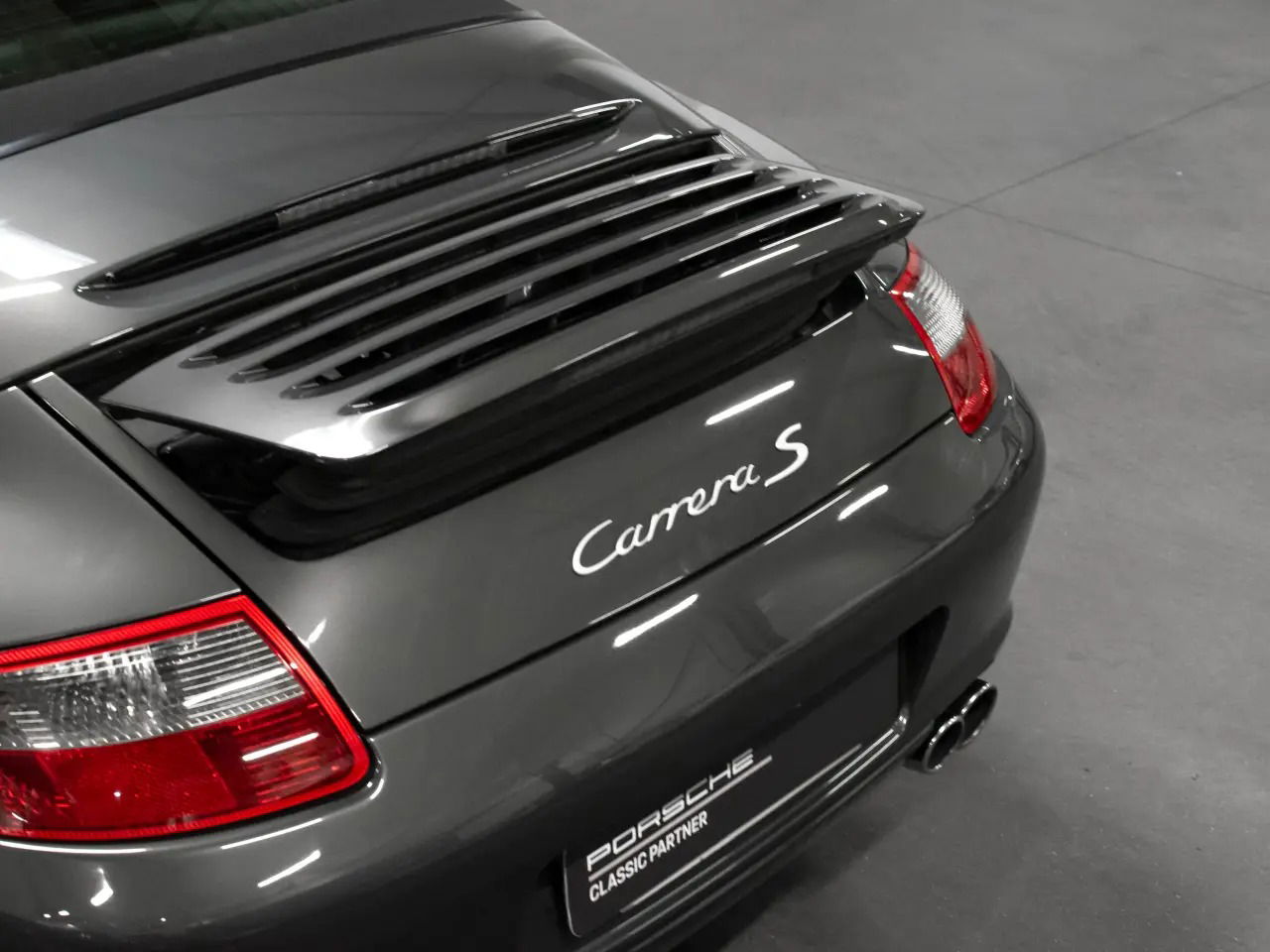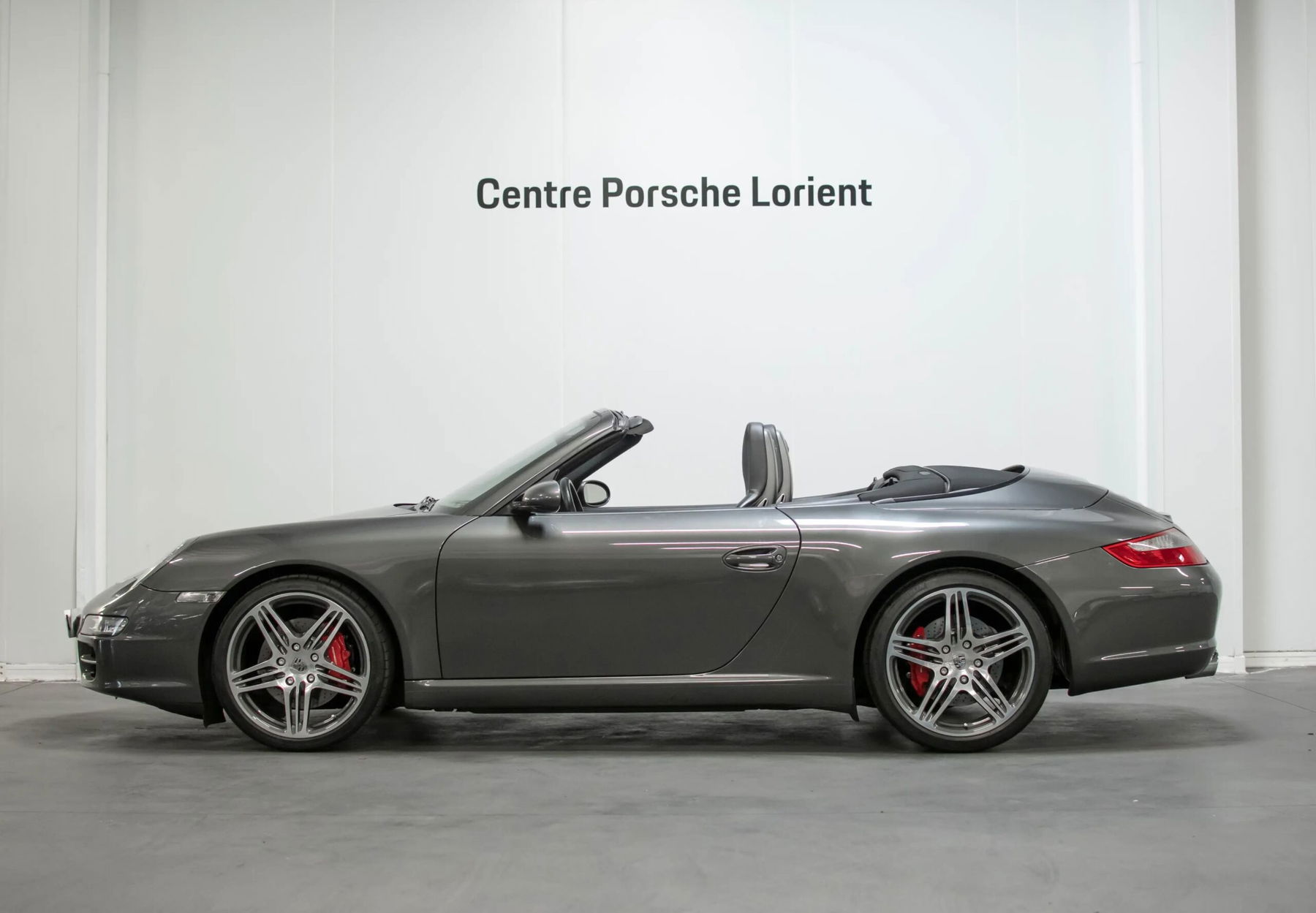 Dieses Porsche 911 Carrera S Cabriolet (997.1) ist in Schiefergrau Metallic lackiert und verfügt über eine komplett schwarze Lederausstattung, die ihm einen zeitlosen und eleganten Look verleiht. Das Verdeck ist ebenfalls in Schwarz gehalten und passt somit perfekt zur Außenfarbe.