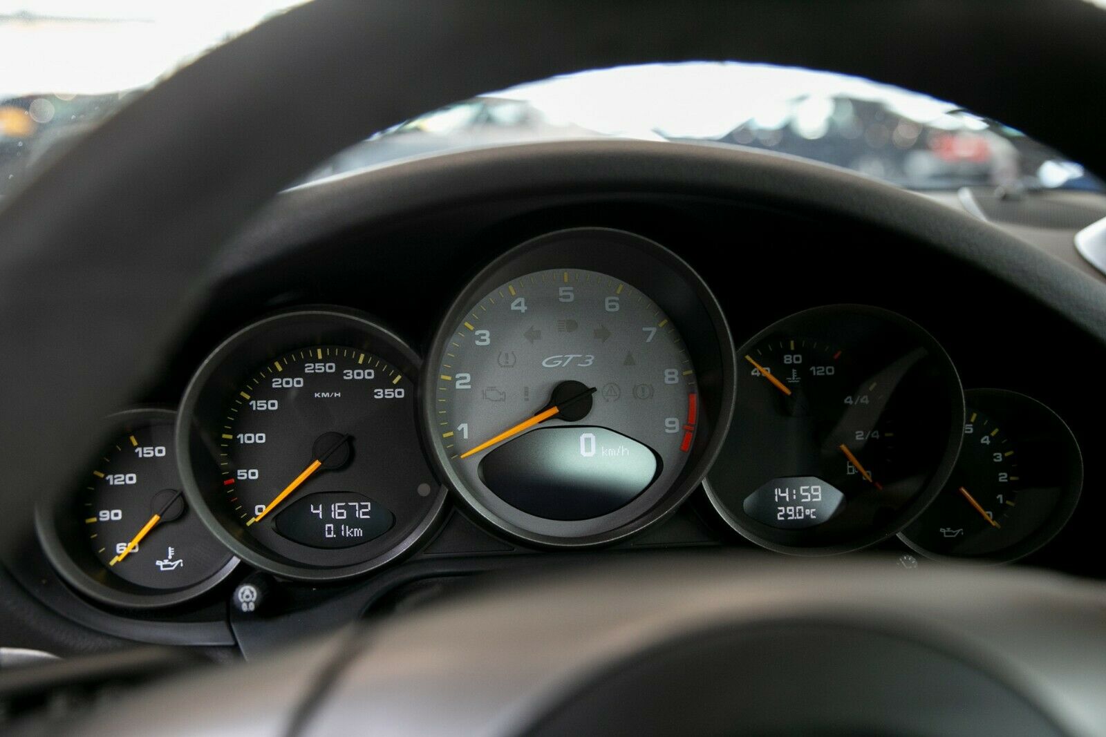 3. Bremsleuchte, Airbag Fahrer-/Beifahrerseite, Aktivkohlefilter (Geruchsfilter), Antriebsart: Heckantrieb, Bordcomputer, Dachhimmel Alcantara, GT3, Heckscheibe heizbar, Isofix-Aufnahmen für Kindersitz an Beifahrersitz, Karosserie: 2-türig, Klimaautomatik, Koffer – und Motordeckel – Entriegelung elektrisch, Kopf-Airbag-System Porsche Side Impact Protection System (POSIP), Kopf-Schulter-Airbag vorn (Thoraxbag), Lenkrad (Sport/Leder, 3-Speichen), Lenksäule (Lenkrad) verstellbar, LM-Felgen, Motor 3,6 Ltr. – 305 kW KAT, Nebelschlussleuchte, Porsche Active Suspension Management (PASM), Reifen-Reparaturkit, Seitenairbag vorn, Sperrdifferential, Sportsitze vorn, Verglasung getönt