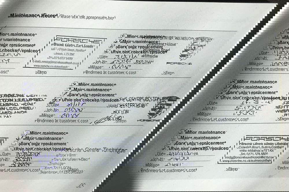 Exemplary maintenance history, all with Official Porsche Centres: