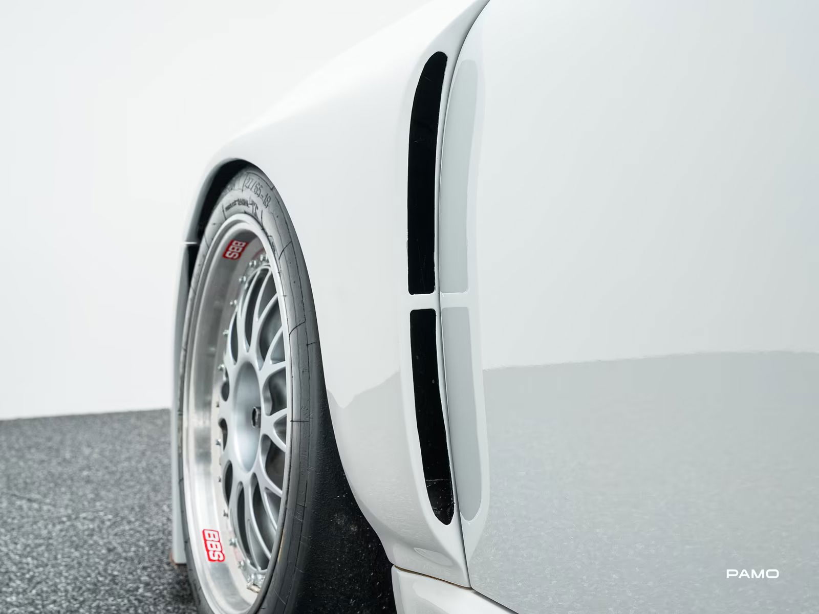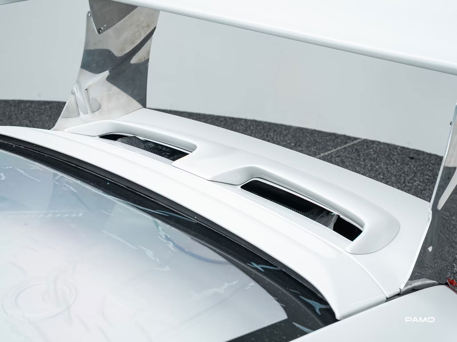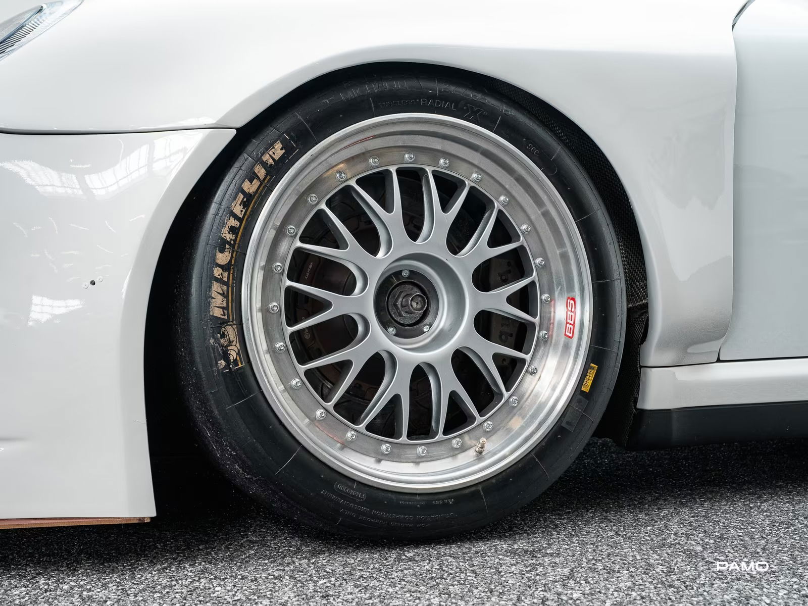 Im Gegensatz zum GT3 Cup basiert die Karosserie des Cup S nicht auf dem Straßenmodell GT3, sondern auf dem GT3 RS. Unter den breiteren Kotflügeln lassen sich so deutlich größere Räder unterbringen. Vorne kommen nun 10,5 Zoll breite Felgen zum Einsatz, die Hinterreifen sind gar auf 12 Zoll breite Felgen aufgezogen. Auch das Bugteil und die Kotflügel unterscheiden sich deutlich von den am GT3 Cup verbauten Komponenten. Ein einstellbarer Frontsplitter sorgt für mehr Abtrieb an der Vorderachse. Der Heckflügel ist breiter und höher positioniert als bei der Cup-Variante und sorgt somit auch an der Hinterachse für gesteigerten Anpressdruck.