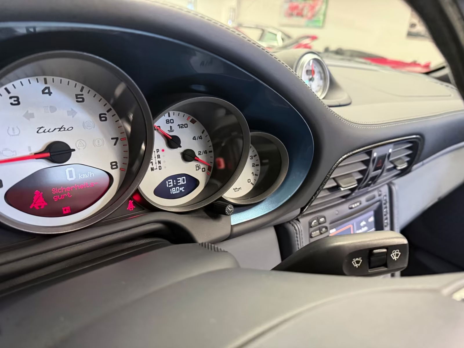 3. Bremsleuchte, Airbag Fahrer-/Beifahrerseite, Außen-/Innenspiegel mit Abblendautomatik und Regensensor, Bi-Xenon-Scheinwerfer, Bordcomputer, Cabrio, Frontscheibe mit Bandfilter oben, Heckscheibe heizbar, Innenausstattung: Leder, Serienlederfarbe, Innenraumfilter: Aktivkohlefilter (Geruchsfilter), Isofix-Aufnahmen für Kindersitz an Beifahrersitz, Karosserie: 2-türig, Klimaautomatik, Koffer- und Motordeckelentriegelung elektrisch, Kopf-Airbag-System Porsche Side Impact Protection System (POSIP), Lenksäule (Lenkrad) verstellbar, LM-Felgen, Metallic-Lackierung, Motor 3,6 Ltr. – 353 kW Turbo KAT, Nebelschlussleuchte, Porsche Active Suspension Management (PASM), Reifen-Reparaturkit, Reifendruck-Kontrollsystem, Seitenairbag vorn, Sound-System BOSE, Turbo, Verdeckbetätigung elektrisch, Verglasung getönt, Windschott
