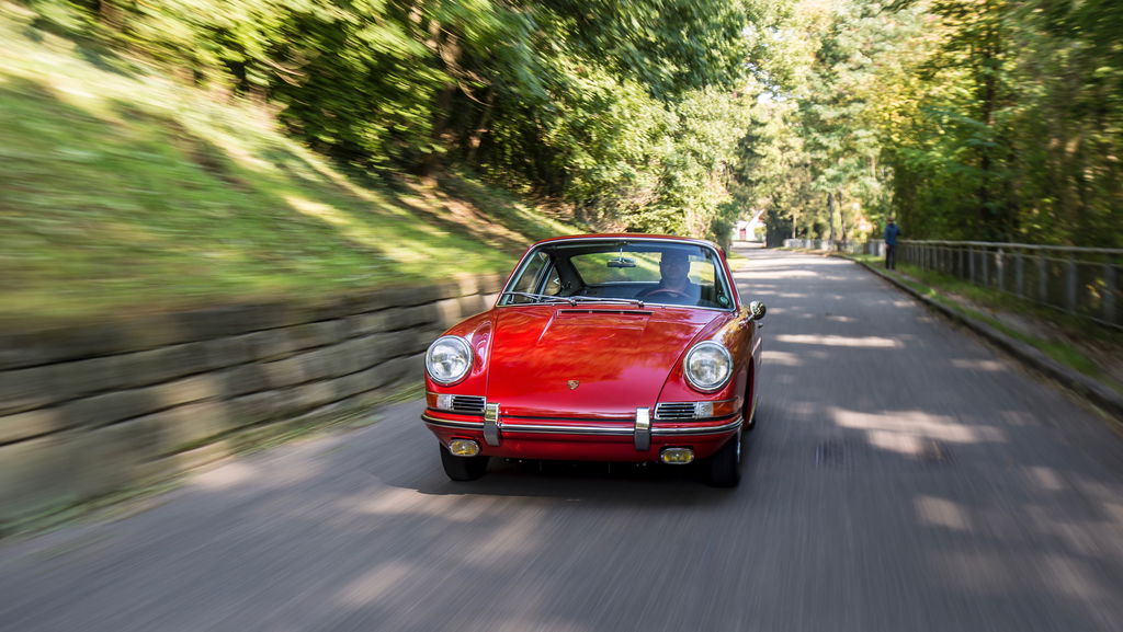 So feierte Porsche am 12. September auf der IAA die Weltpremiere des 901 mit einem Vorserienfahrzeug, dessen Stand noch längst nicht endgültig war. Erst im Mai 1964 war die Entwicklung soweit fortgeschritten, dass das neue Modell der Fachwelt vorgestellt werden konnte. Der Sechszylinder-Boxermotor mit acht Kurbelwellenlagern war komplett neu. Eine Trockensumpfschmierung sorgte für ausreichende Ölversorgung auch bei hoher Längs- und Querbeschleunigung. In den Zylinderköpfen rotierte jeweils eine Nockenwelle, angetrieben über Zwischenwellen und eine Kette. 9:1 verdichtet schöpfte das Triebwerk aus dem Hubvolumen von 1991 ccm eine Leistung von 130 PS bei 6.200 Umdrehungen pro Minute.