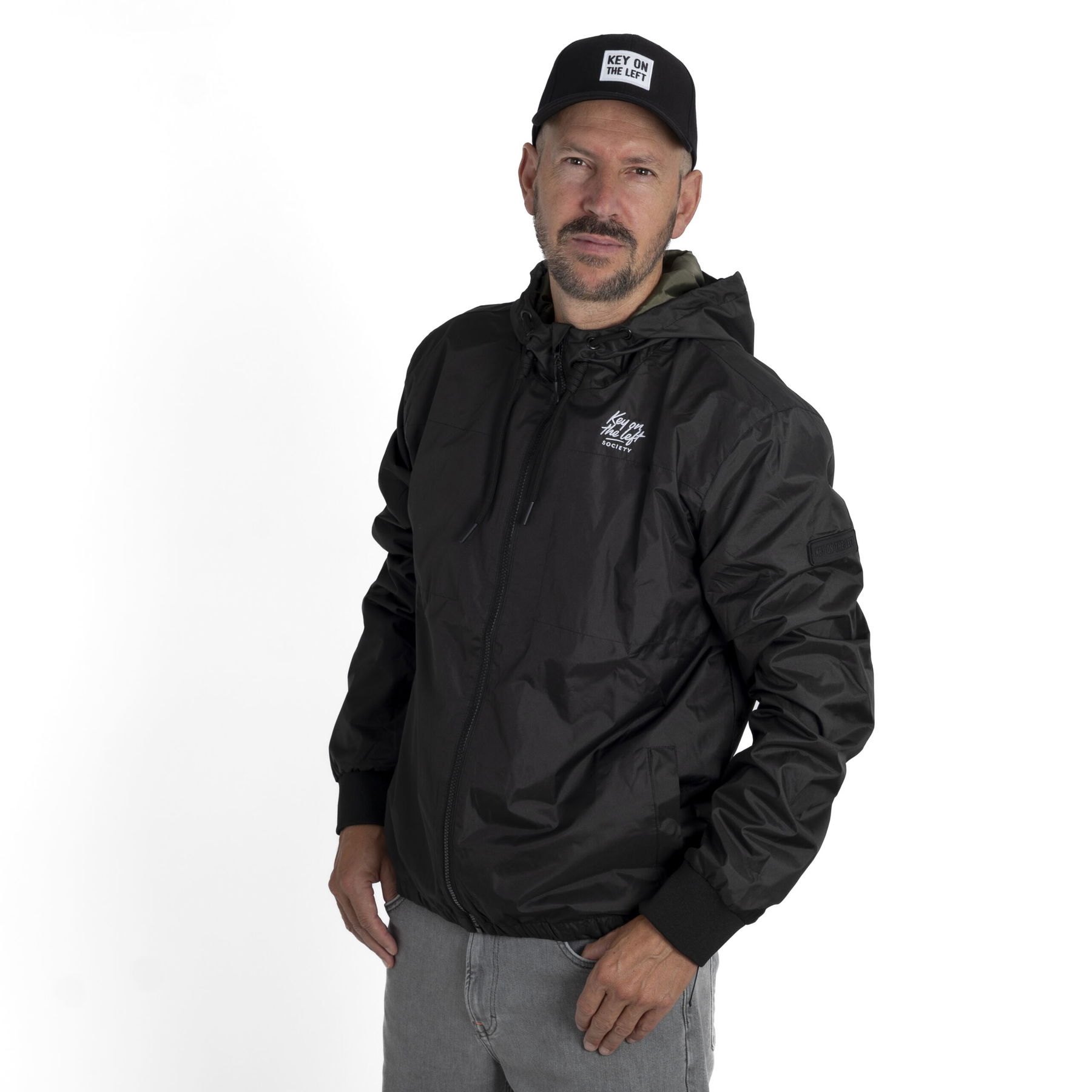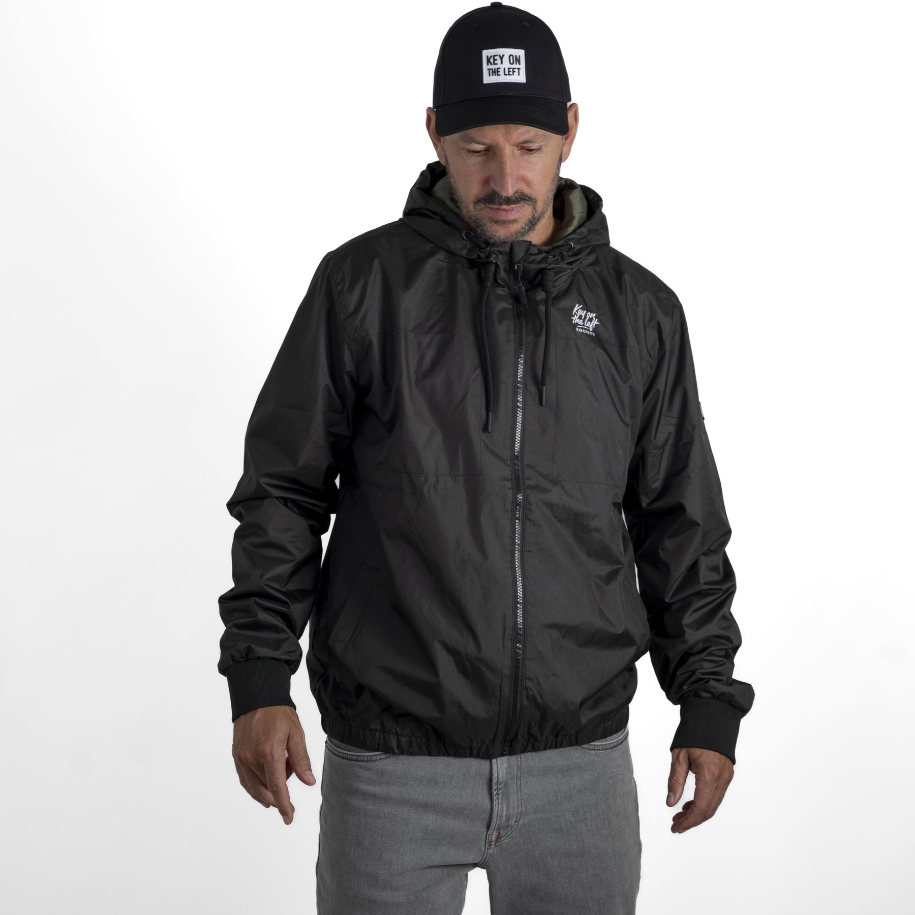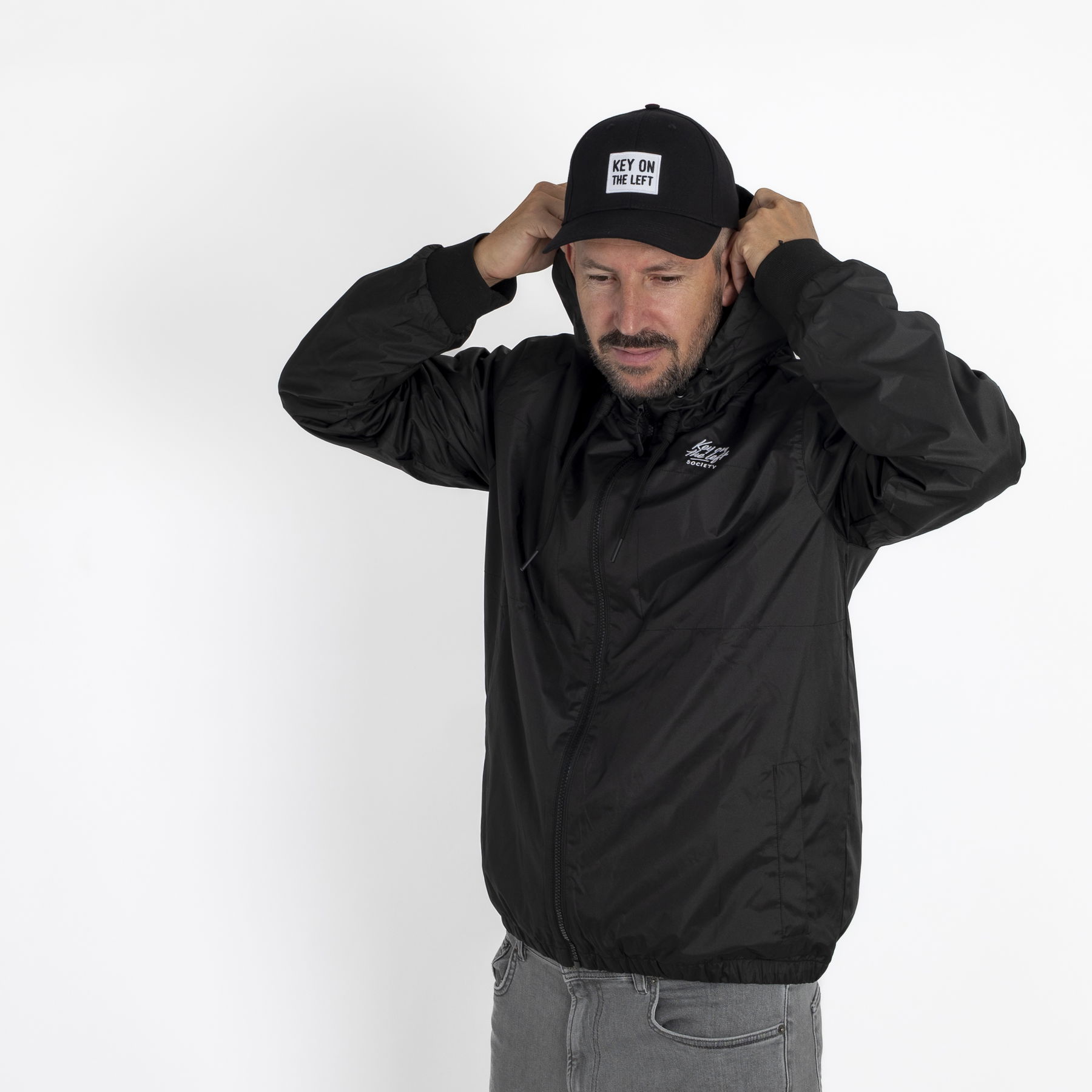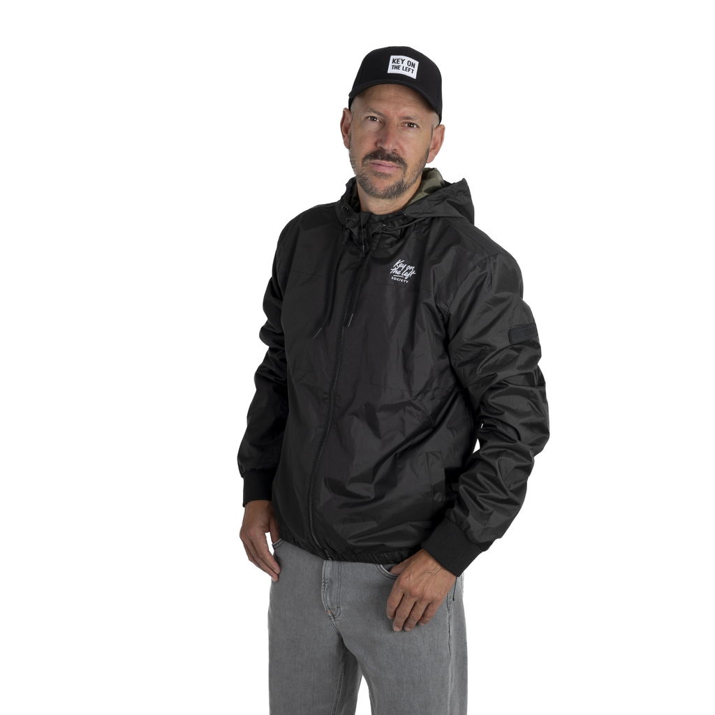 Leichte, wasserabweisende Windbreaker-Jacke mit Key on the Left Society Stick auf der Brust und Rubber Badge am linken Ärmel. Ideal für Ausfahrten bei wechselhaftem Wetter – passt in jedes Handschuhfach. Der reduzierte Look, die saubere Passform und die dezente Stickerei machen sie zum perfekten Begleiter im Auto und darüber hinaus.