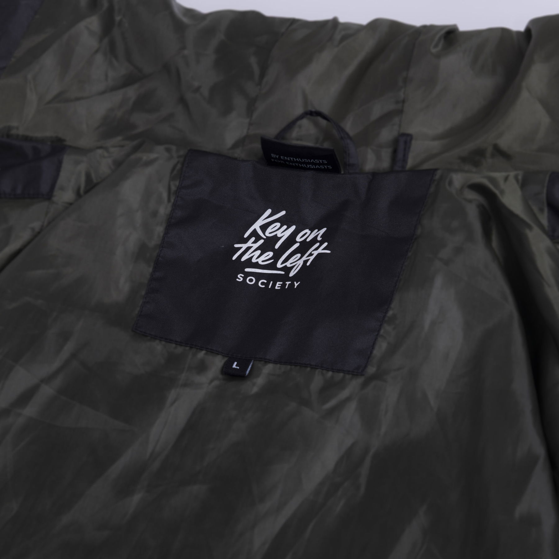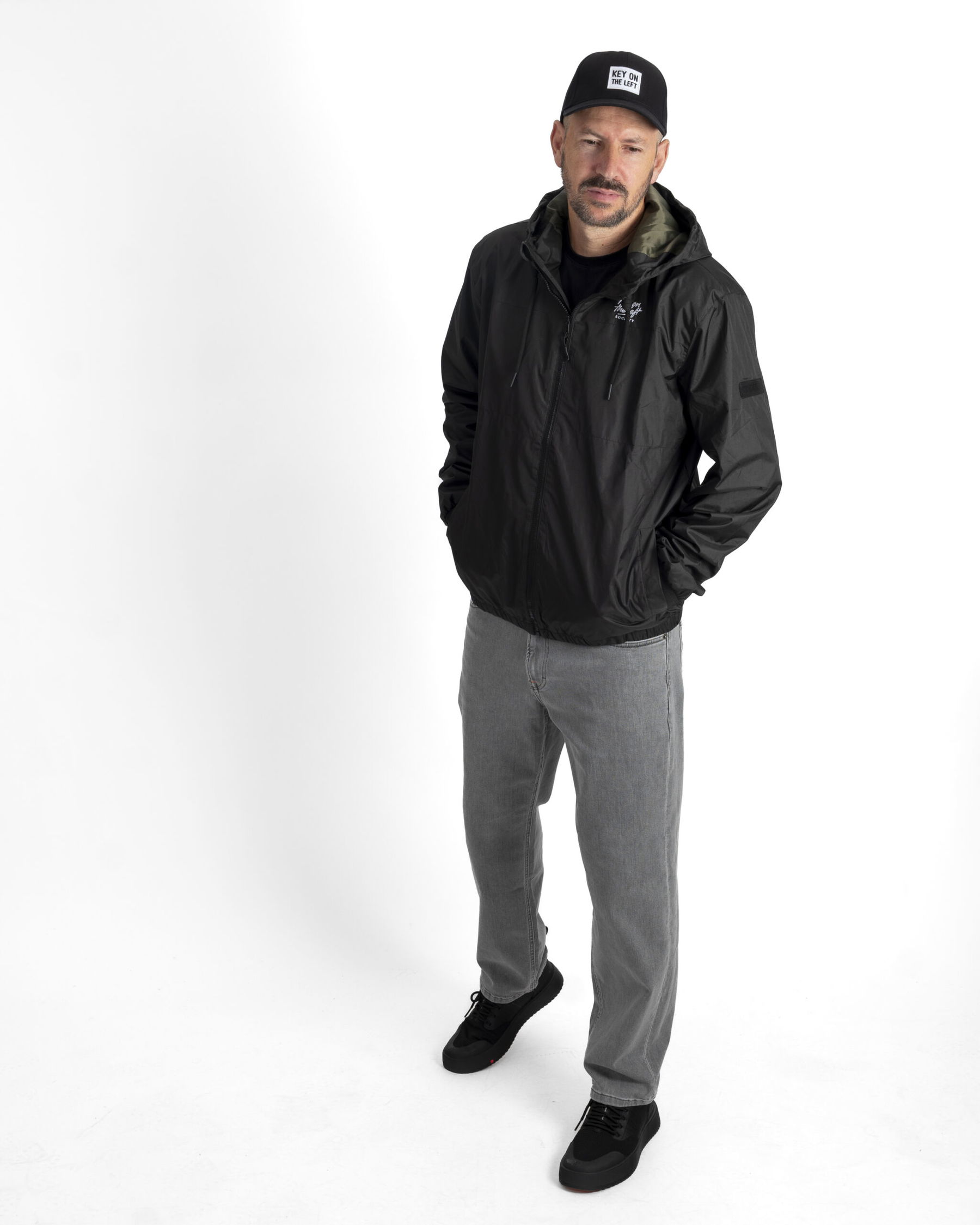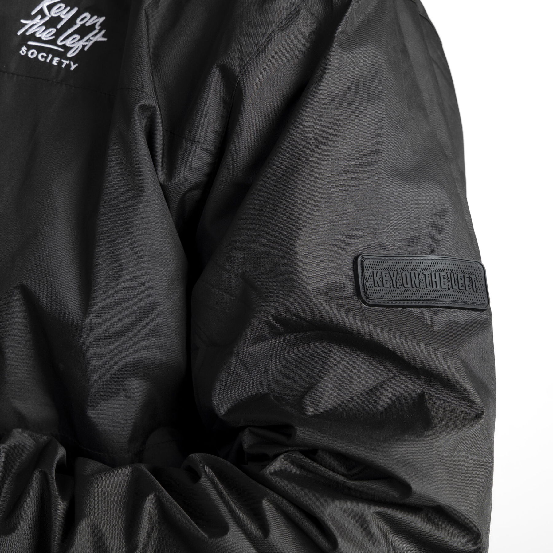 Leichte, wasserabweisende Windbreaker-Jacke mit Key on the Left Society Stick auf der Brust und Rubber Badge am linken Ärmel. Ideal für Ausfahrten bei wechselhaftem Wetter – passt in jedes Handschuhfach. Der reduzierte Look, die saubere Passform und die dezente Stickerei machen sie zum perfekten Begleiter im Auto und darüber hinaus.