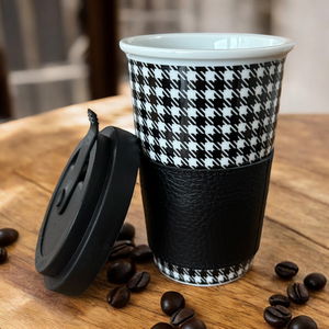 Dieser Coffee-to-go-Becher ist das Nonplusultra für alle, die Nachhaltigkeit und Stil lieben. Porzellan und Leder – eine Kombination, die jeden Coffee-to-go-Liebhaber und Enthusiasten begeistern wird. Und auch das Auge genießt: Das Pepita-Muster macht diesen Becher zu einem echten Hingucker. Aber nicht nur das: Er wurde auch klimaneutral produziert.