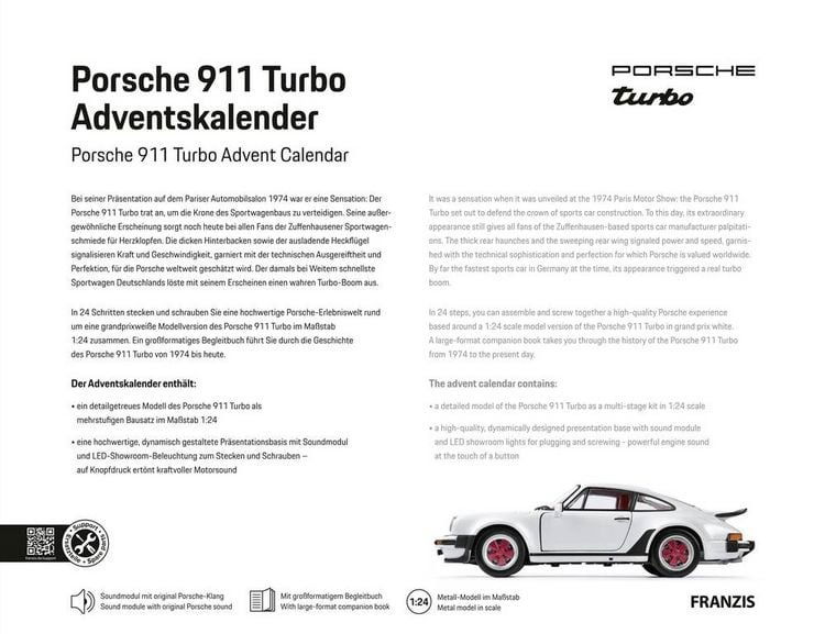 Porsche 911 Turbo Adventskalender – Grandprixweiß (1:24 Bausatz + Begleitbuch)