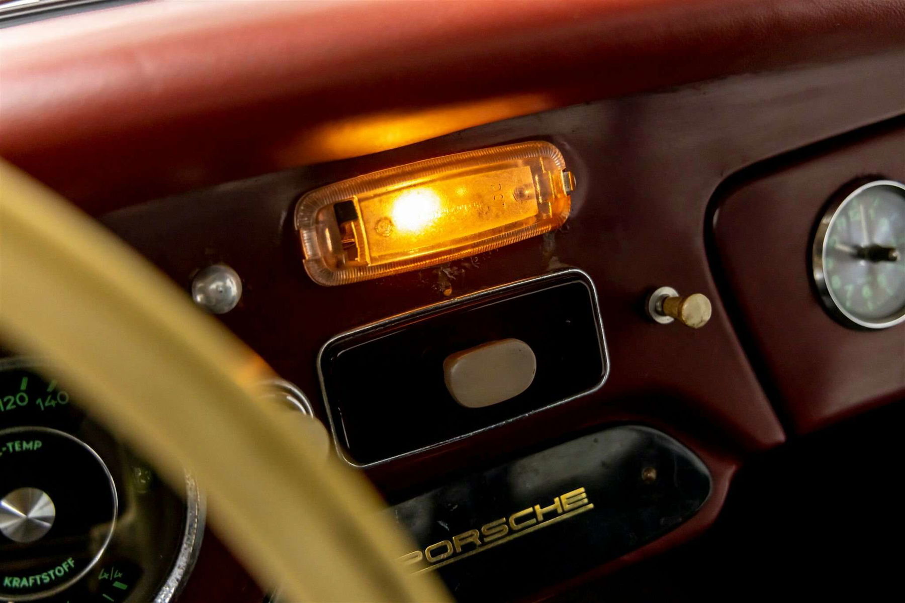 The exterior and undercarriage are protected in black sealer. Complete with all decks, doors, glass, bumpers, and exterior trim. The front hood is matching, and it is secured by GT-style leather straps. The original Polyantha Red paintwork is present on the perimeter of the doors and the dash. Interior equipment includes comfort seats, a VDM steering wheel, VDO instrumentation, a Porsche radio delete cover plate, and a VDO clock mounted on the glove box. The undercarriage is in excellent condition and the floor pans and battery box have been properly replaced. The 4.5” x 15” painted wheels have baby moon hubcaps and are fitted to Continental Contact 165 80 R15 tires.