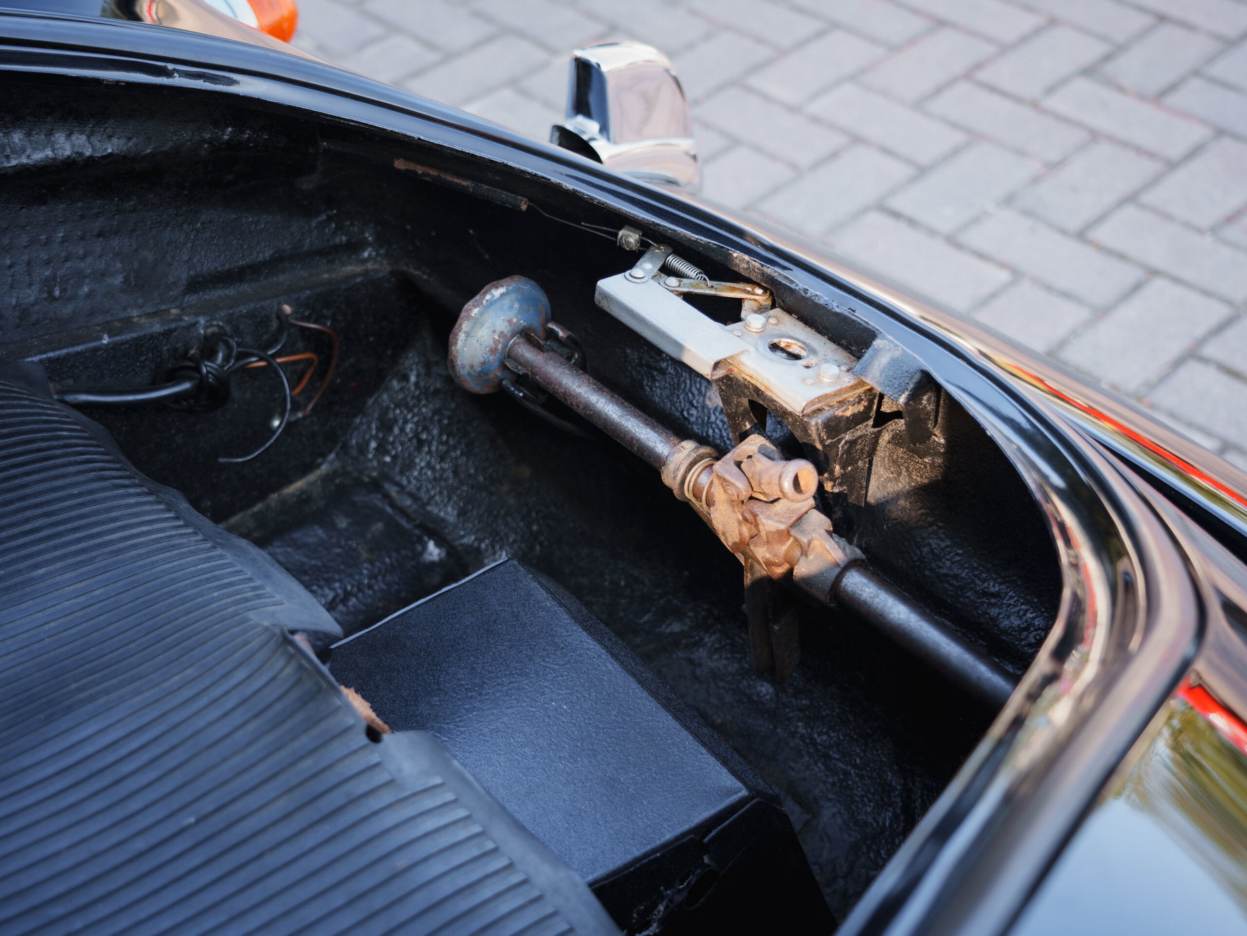 This example is finished in black with a black interior, a stylish and fitting combination. The paintwork and overall appearance of the car are neat, ensuring a well-maintained and representative look. The interior has an authentic character with the original gauges and the distinctive steering wheel.