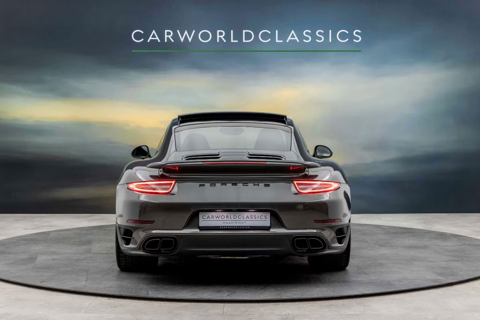 Very well-maintained Porsche 991 3.8 Turbo S Coupe PDK 560 hp in agate gray metallic with black full leather interior. Full service history.