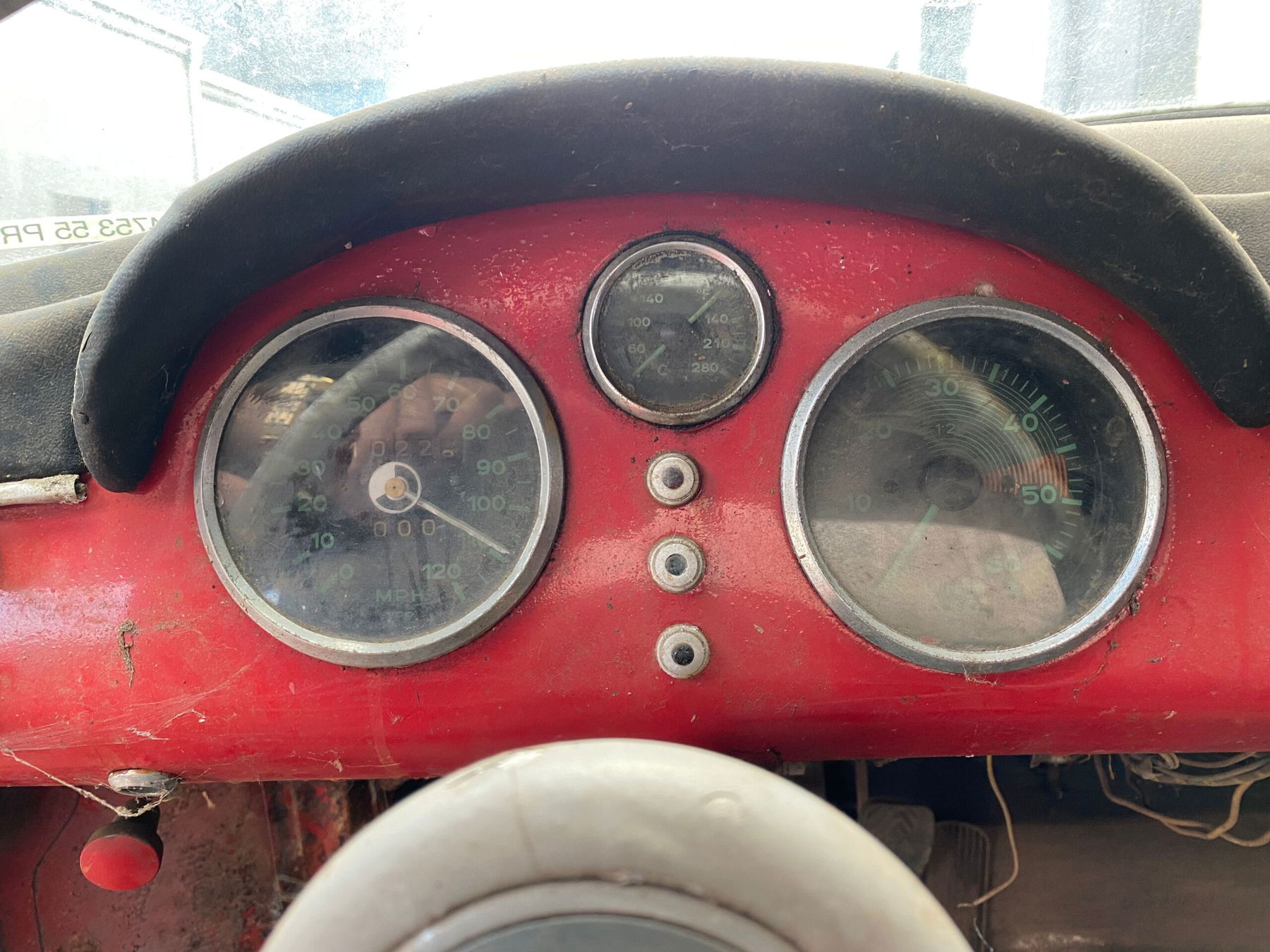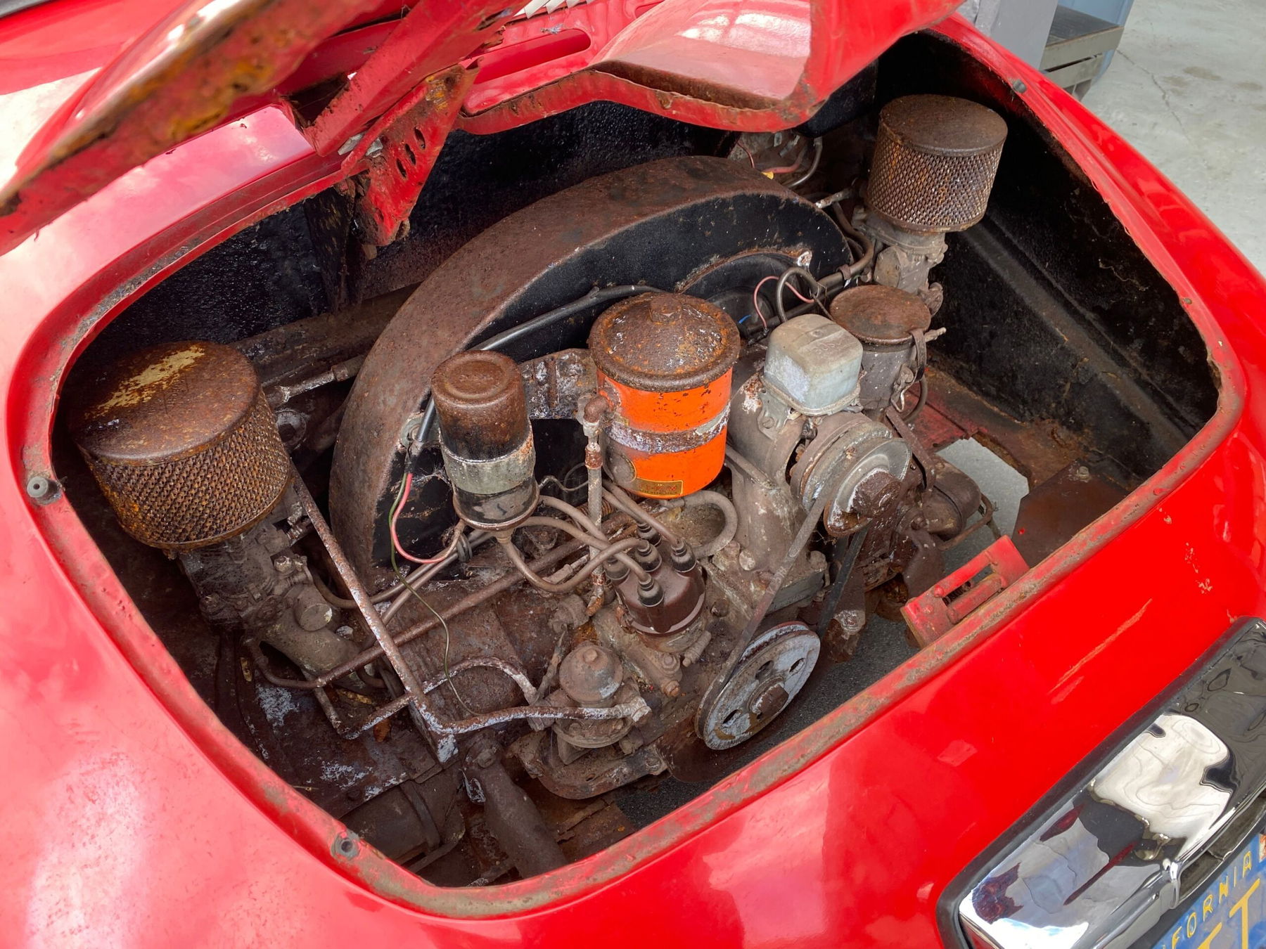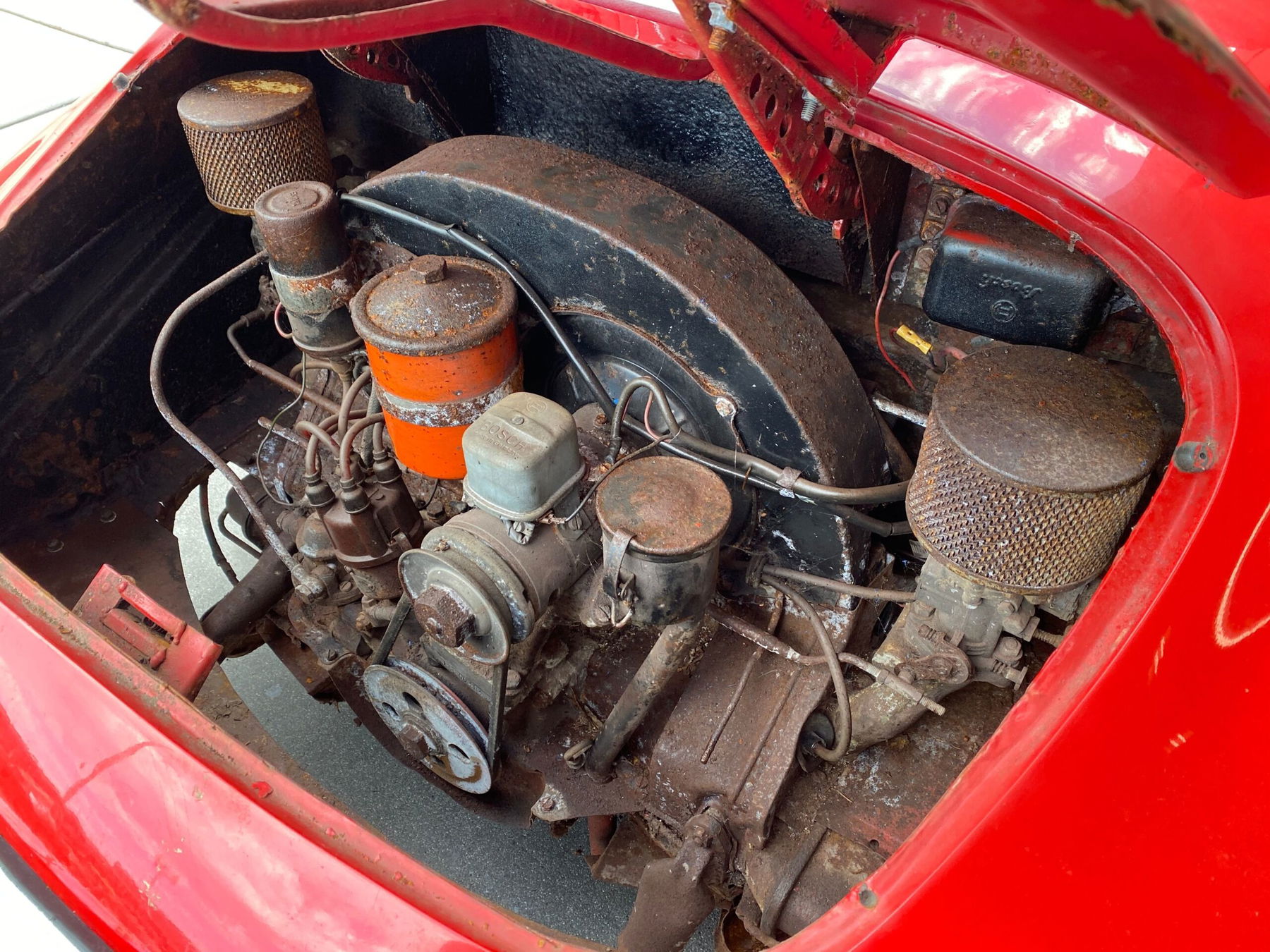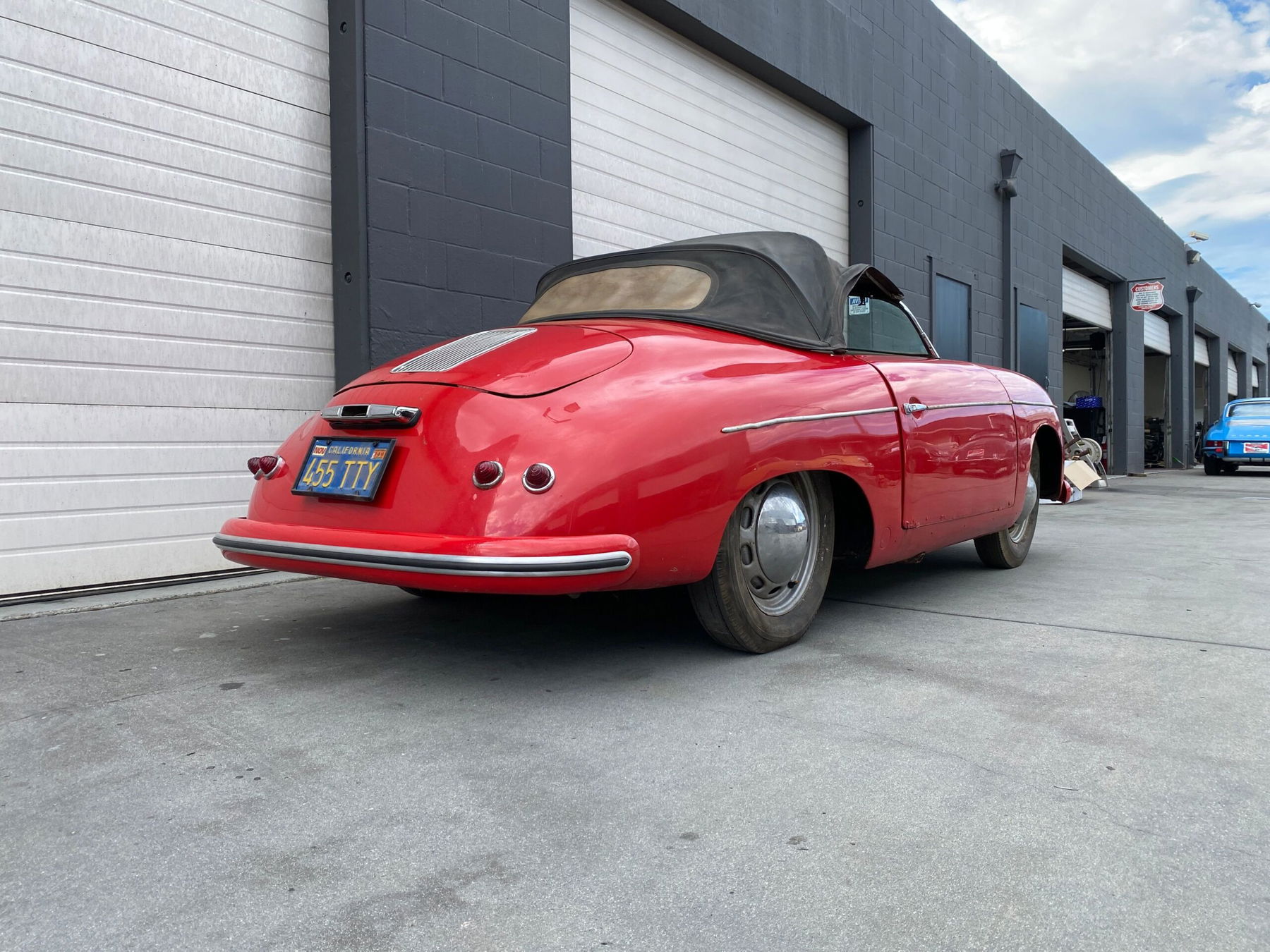 Long-term single-family ownership for the past 54 years. According to the Porsche Kardex, this Pre-A Speedster was delivered by Hoffman Motors in New York, New York, and finished in Signal Red (color code 601) with Black upholstery. Factory options include sealed beam headlights and a Speedometer in miles. According to the previous owner, this Speedster was last driven in the late 1970s before going into long-term storage for the next four decades. The interior features VDO instrumentation, Speedster seats, door panels, Speedster door caps, and a VDM steering wheel. The exterior is basically complete, including the chrome windshield frame, soft-top frame, bumpers, bumperettes, and 3.25” x 16” painted steel slotted wheels (dater coded 9/55). The undercarriage will need rust repair, including the battery box floor, floor pans, longitudinals, and closing panels. Mechanically, this Speedster is not running or driving. It does have the matching 1600cc engine (Type 616/1), a manual 4-speed transmission (Type 519), and four-wheel drum braking system. Complete with the Porsche Kardex and soft top. Speedster projects are getting harder and harder to find. This is an incredible opportunity to acquire a 356 Pre-A Speedster project needing restoration.