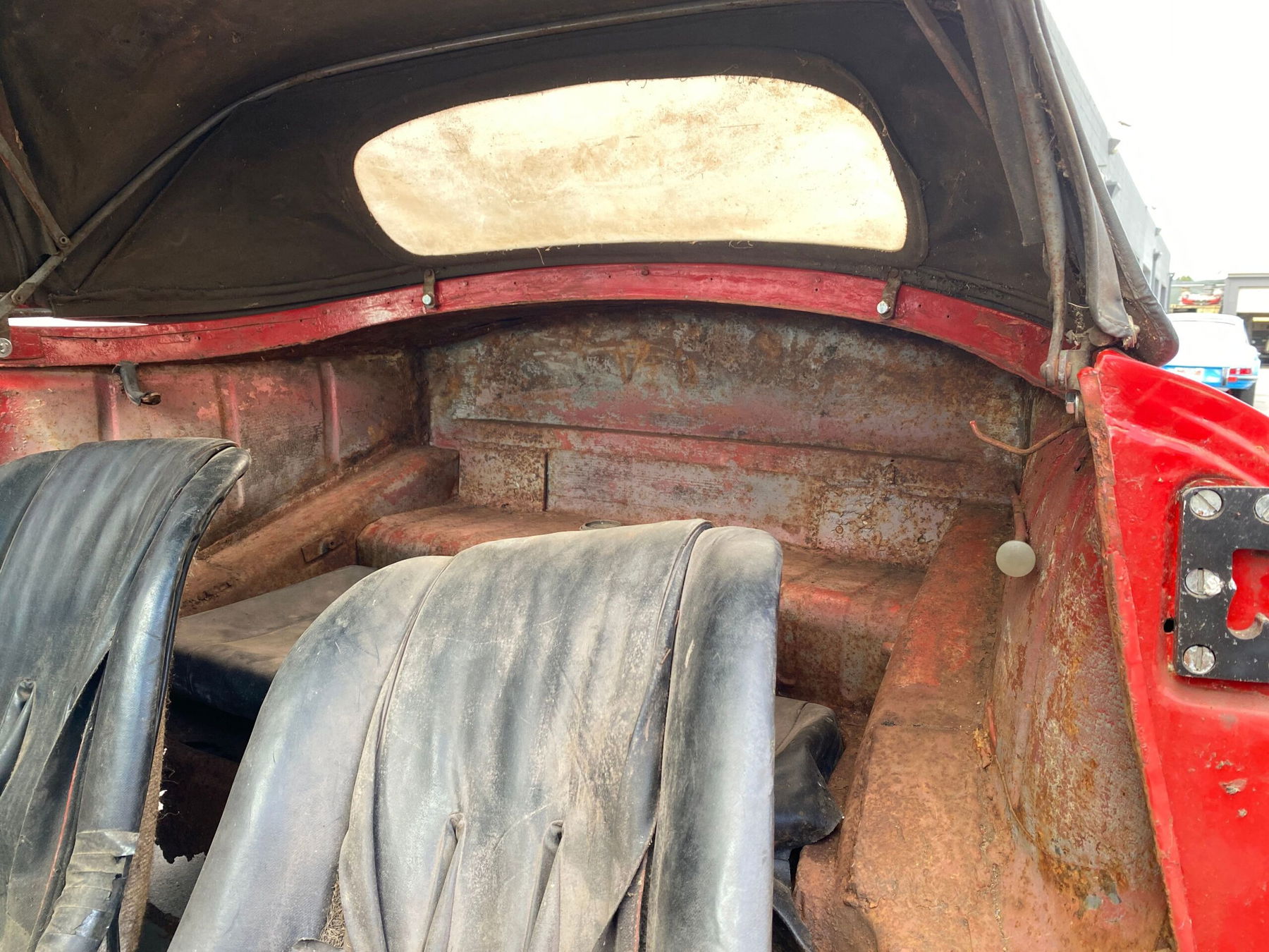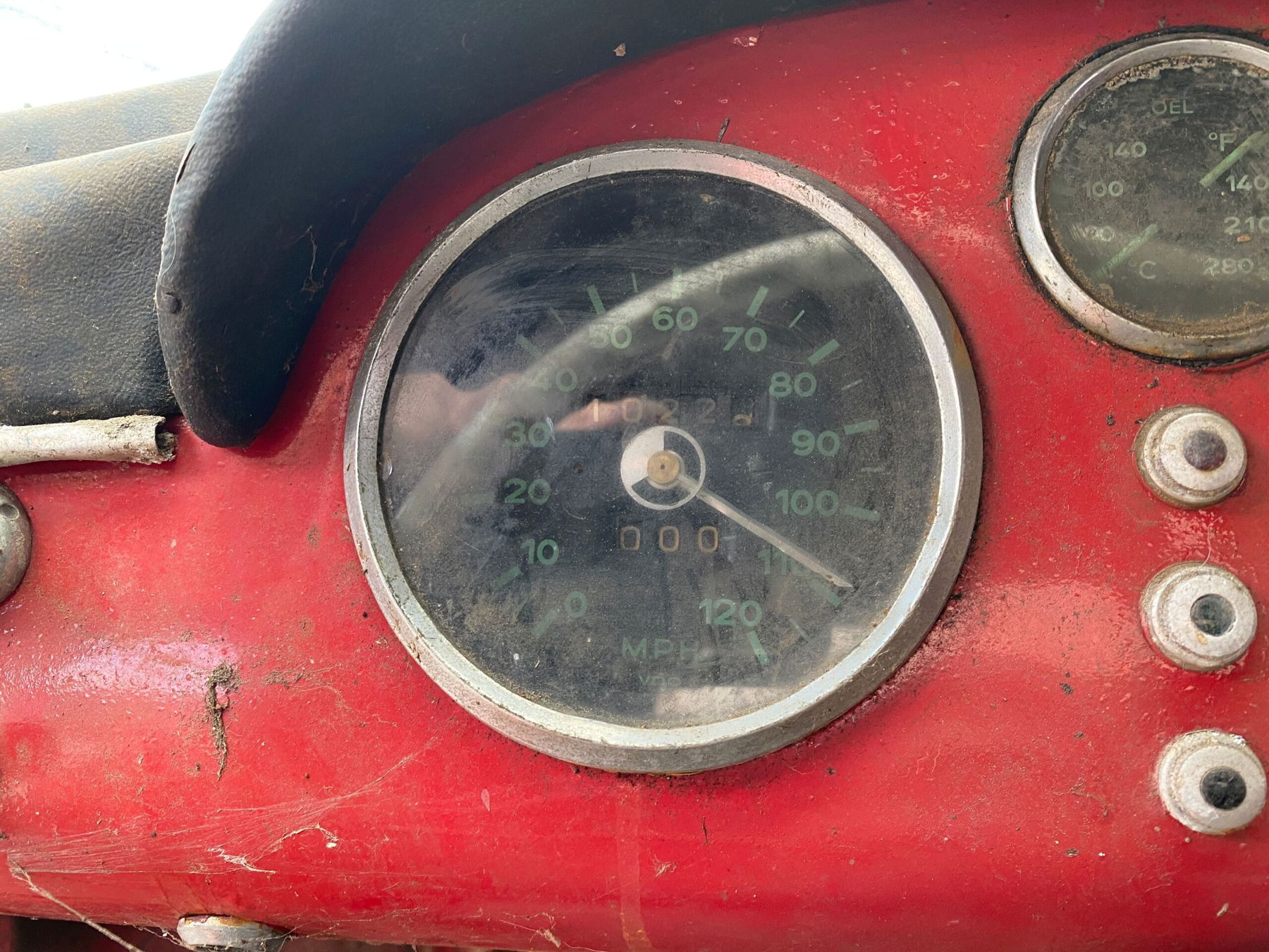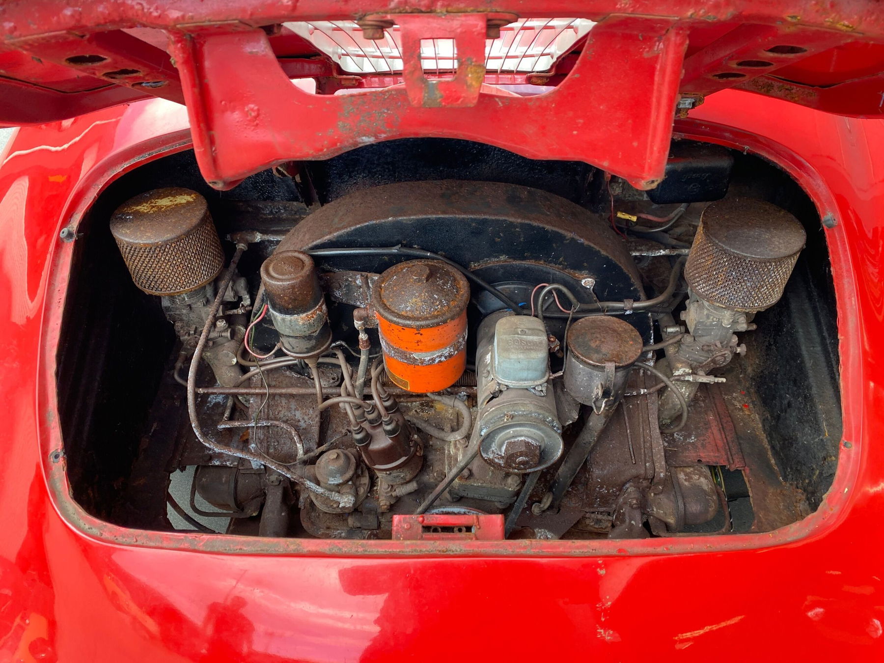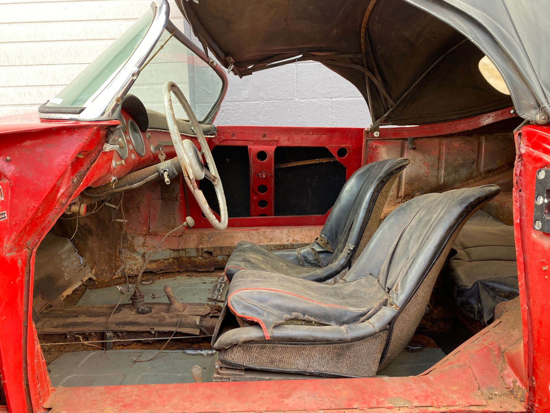 Long-term single-family ownership for the past 54 years. According to the Porsche Kardex, this Pre-A Speedster was delivered by Hoffman Motors in New York, New York, and finished in Signal Red (color code 601) with Black upholstery. Factory options include sealed beam headlights and a Speedometer in miles. According to the previous owner, this Speedster was last driven in the late 1970s before going into long-term storage for the next four decades. The interior features VDO instrumentation, Speedster seats, door panels, Speedster door caps, and a VDM steering wheel. The exterior is basically complete, including the chrome windshield frame, soft-top frame, bumpers, bumperettes, and 3.25” x 16” painted steel slotted wheels (dater coded 9/55). The undercarriage will need rust repair, including the battery box floor, floor pans, longitudinals, and closing panels. Mechanically, this Speedster is not running or driving. It does have the matching 1600cc engine (Type 616/1), a manual 4-speed transmission (Type 519), and four-wheel drum braking system. Complete with the Porsche Kardex and soft top. Speedster projects are getting harder and harder to find. This is an incredible opportunity to acquire a 356 Pre-A Speedster project needing restoration.