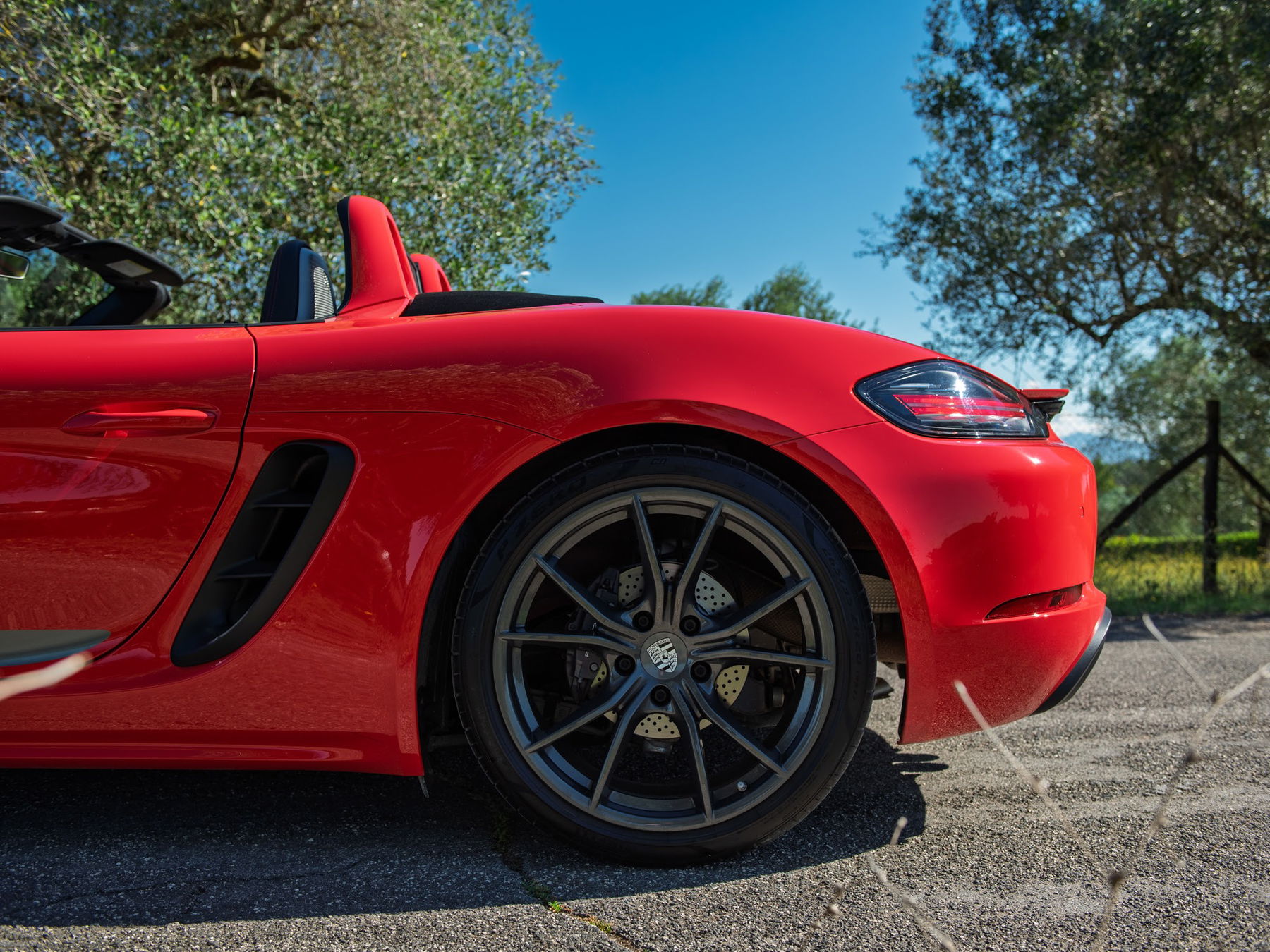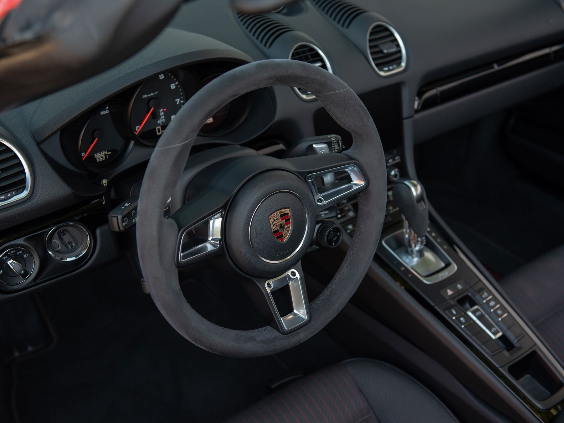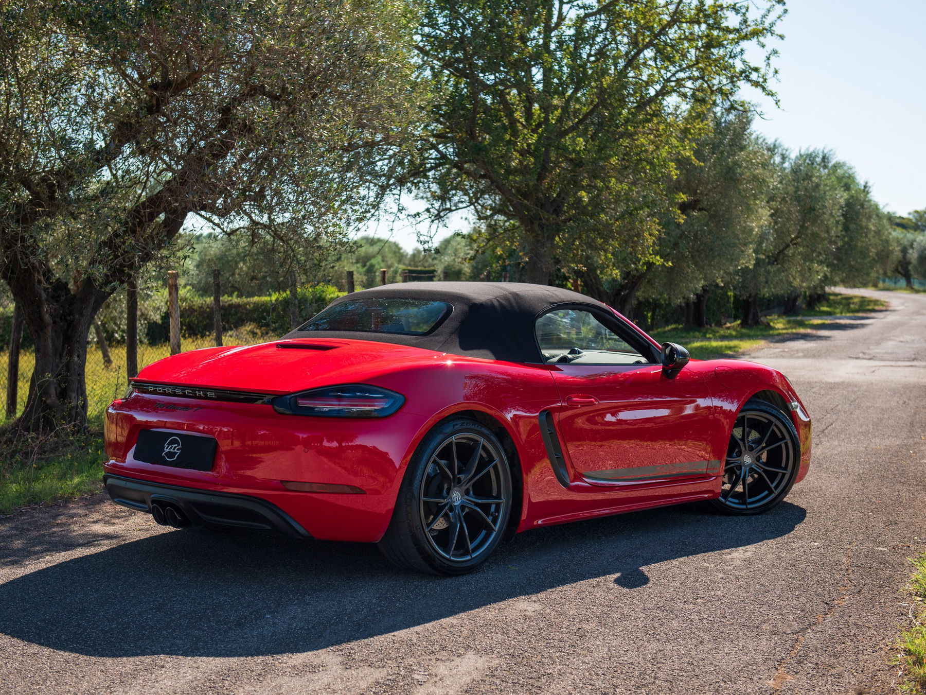 For those looking for a practically new car, YTC offers a Porsche 718 Boxster in T trim, which includes 20-inch alloy wheels, a PASM sports chassis lowered by 20 millimeters, and the Sport Chrono package. These features are exclusively combined with the base engine of the 718 T. Porsche also offers the Porsche Torque Vectoring (PTV) system with variable torque distribution, including a mechanical rear limited-slip differential. The car is like new and has already had two services at Porsche.