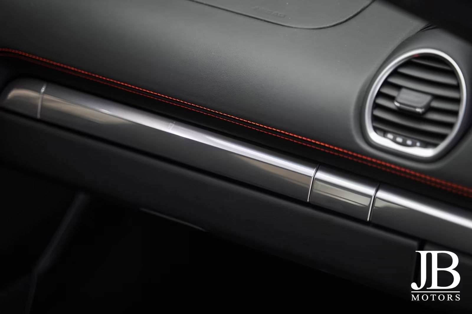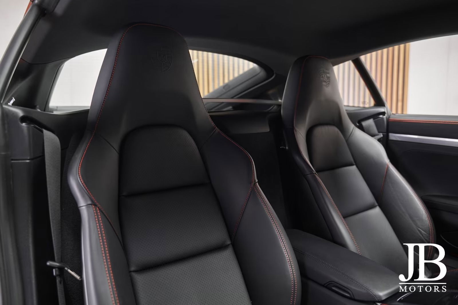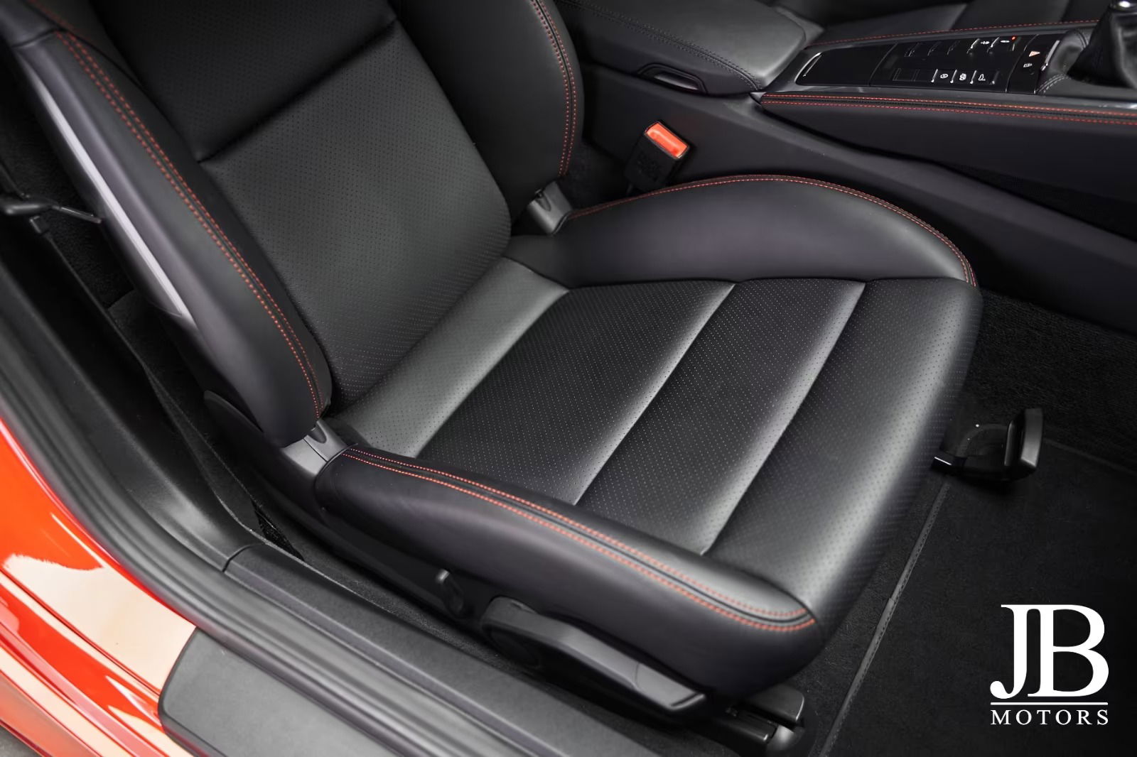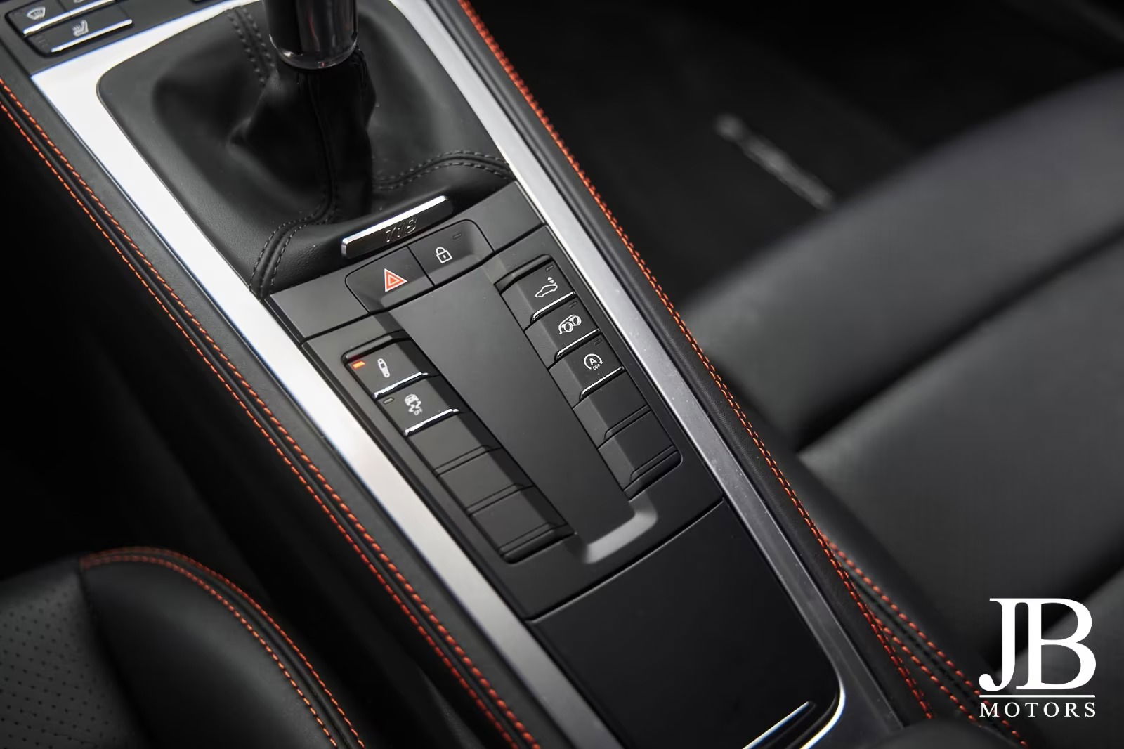 Special features: Apple CarPlay incl. voice control – exterior/interior mirrors with automatic dimming and rain sensor – electrically folding exterior mirrors – anti-theft alarm system with interior monitoring – Driver assistance system: Front and rear parking assist – Driver assistance system: Lane change assist – Driver assistance system: Traffic sign recognition – Black window trim (high-gloss) – Windshield with band filter at the top – Floor mats – Interior: leather – Interior package with contrasting decorative stitching – Dual-zone automatic climate control – Front headrests with Porsche crest – Fuel tank: 64 liters – Heated steering wheel with multifunction (additional AV to steering wheel)